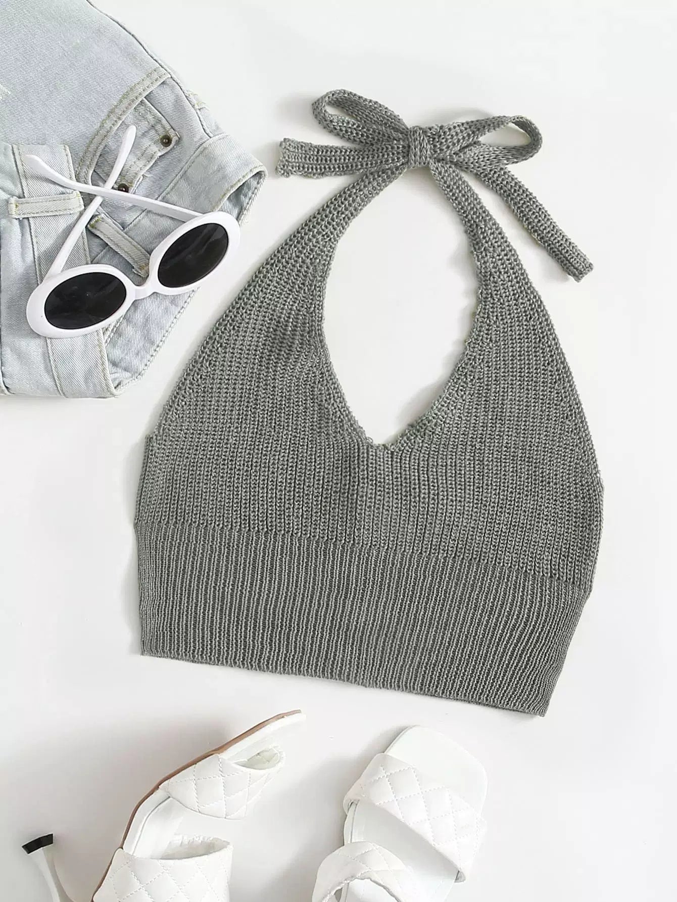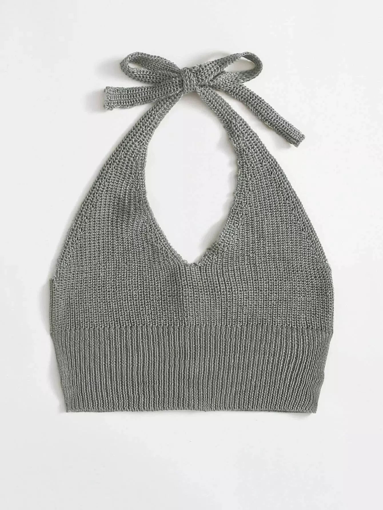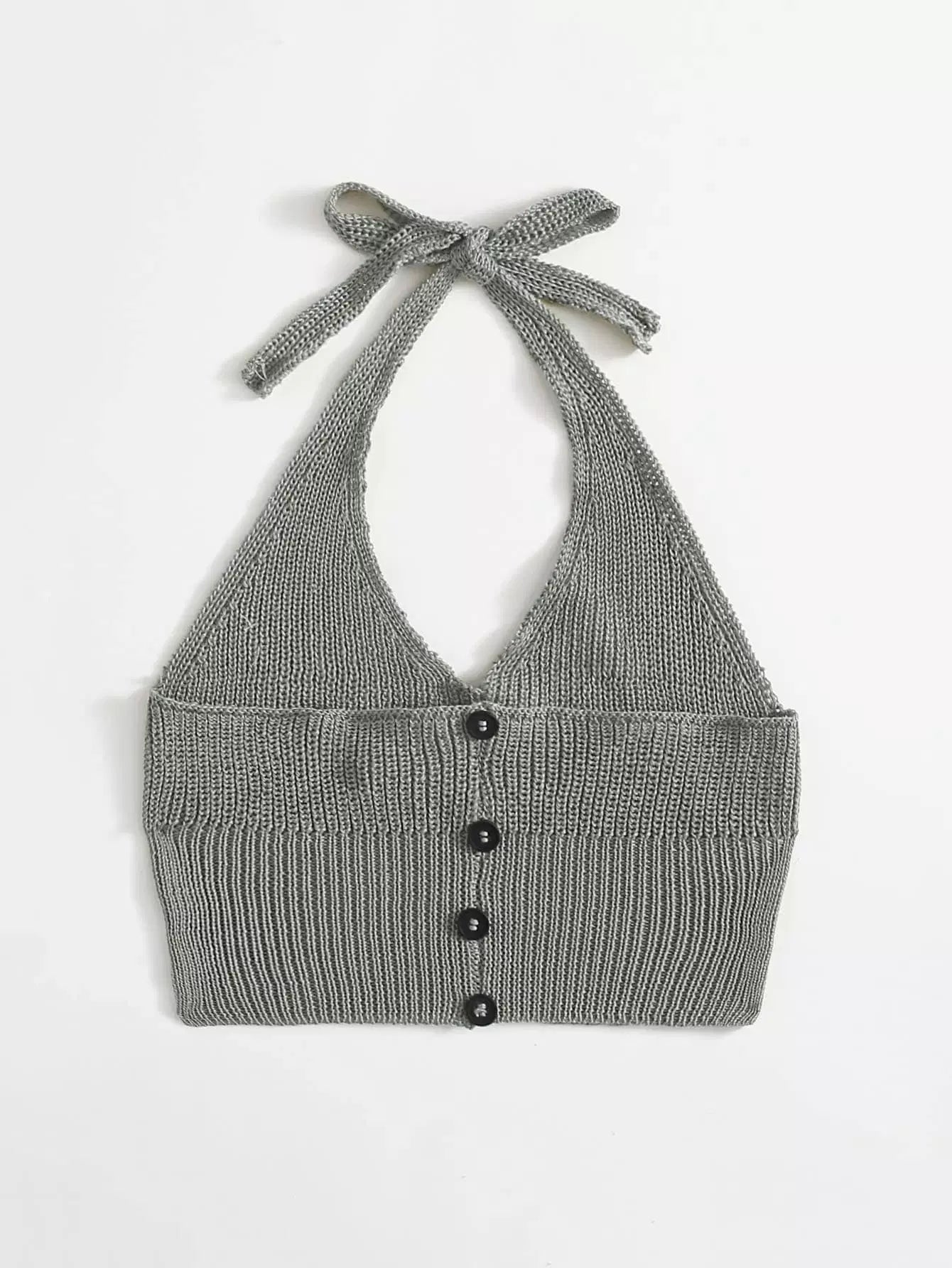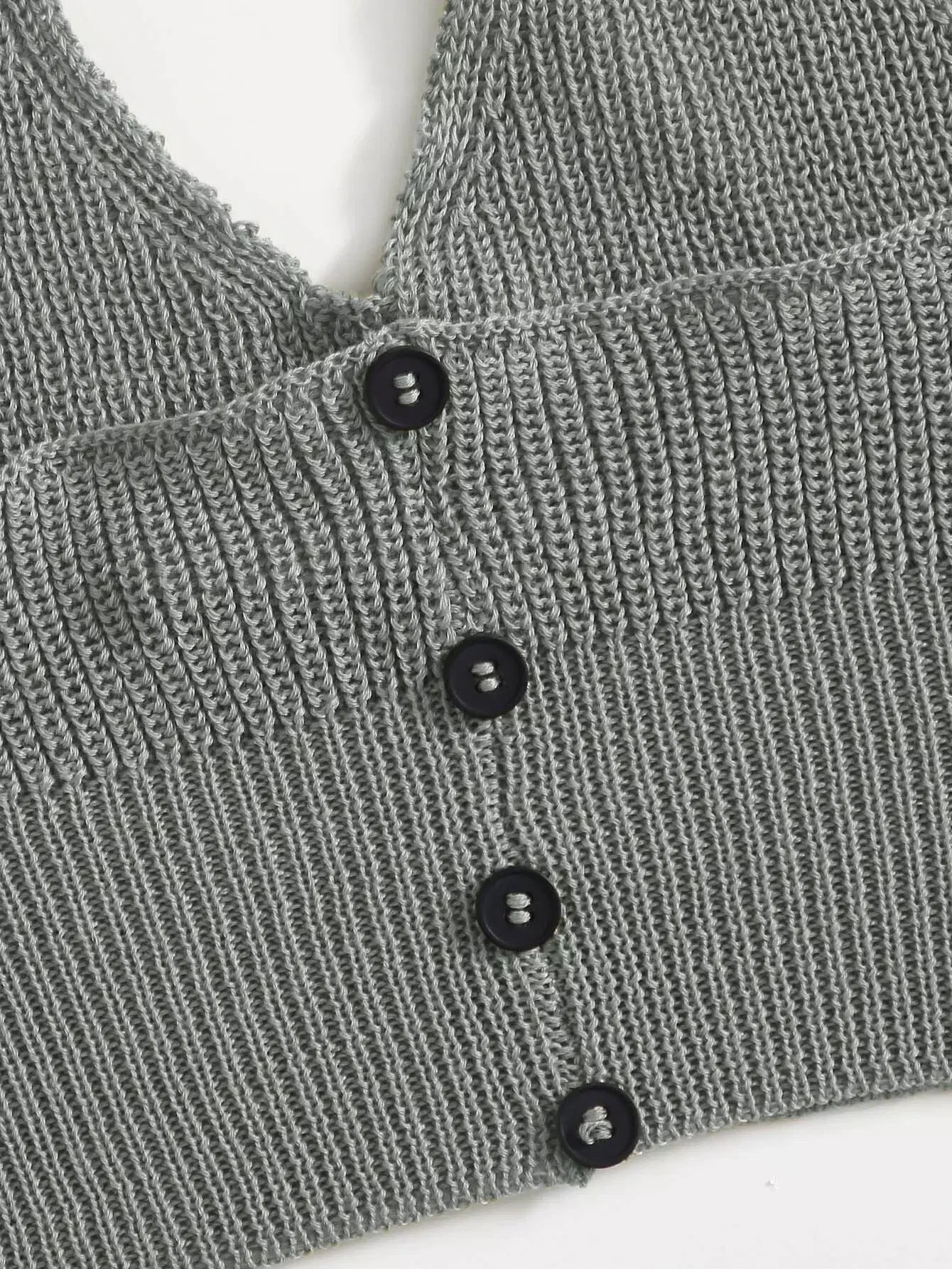 بلوزة محبوكة بياقة برقبة رقبة رسن بأزرار
