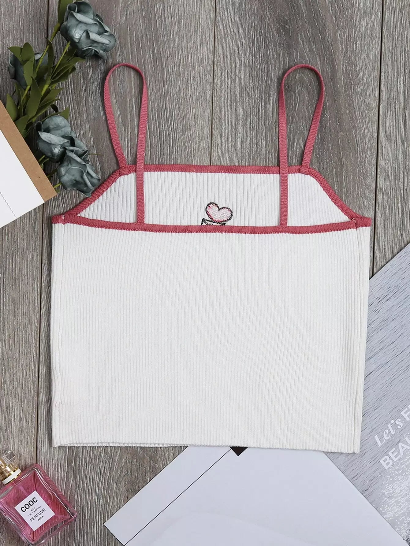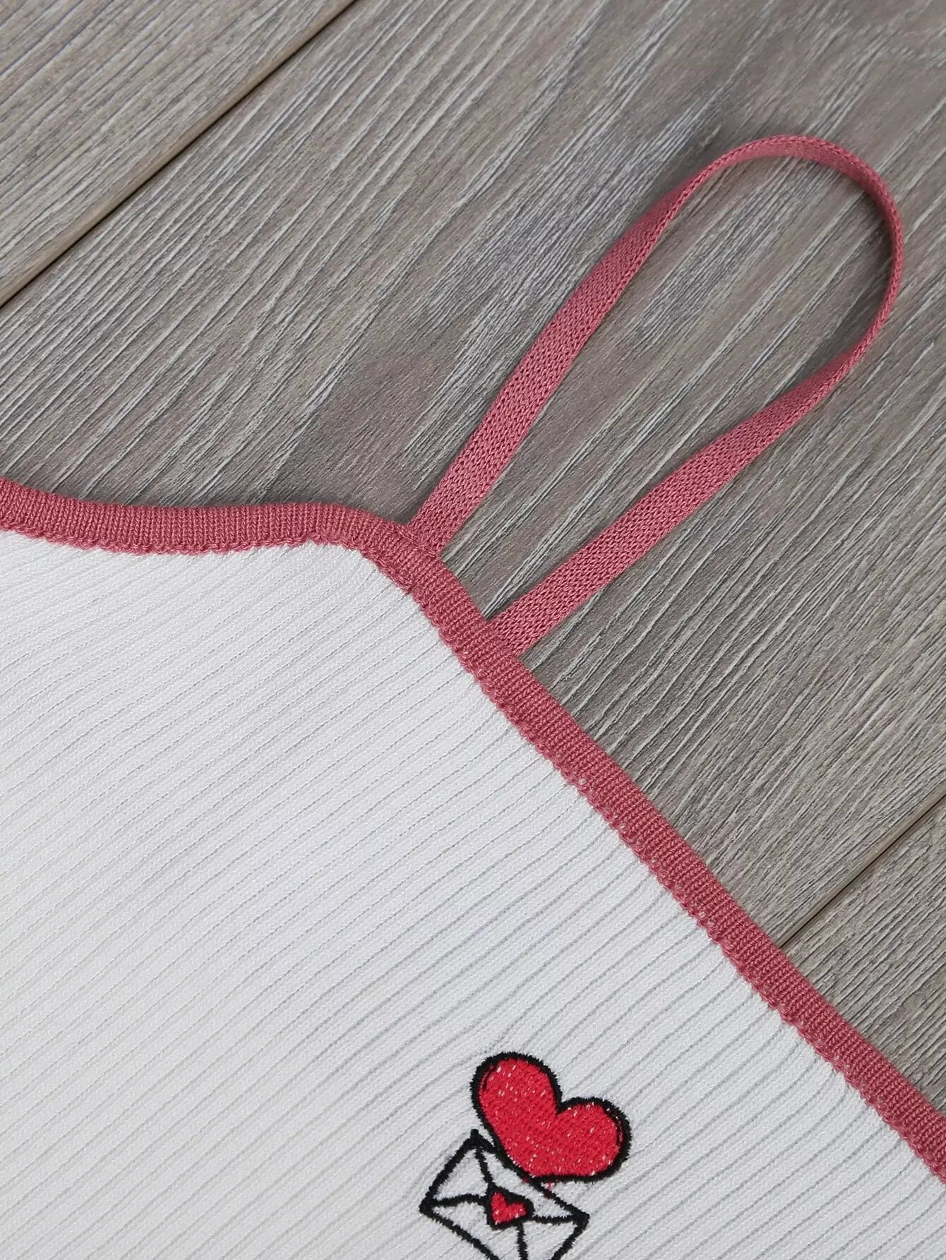 بلوزة محبوكة بتطريز على شكل قلب بتطريز على شكل ضلع متباين