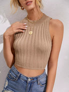 بلوزة محبوكة بعقدة من الخلف على شكل ضلع محبوك