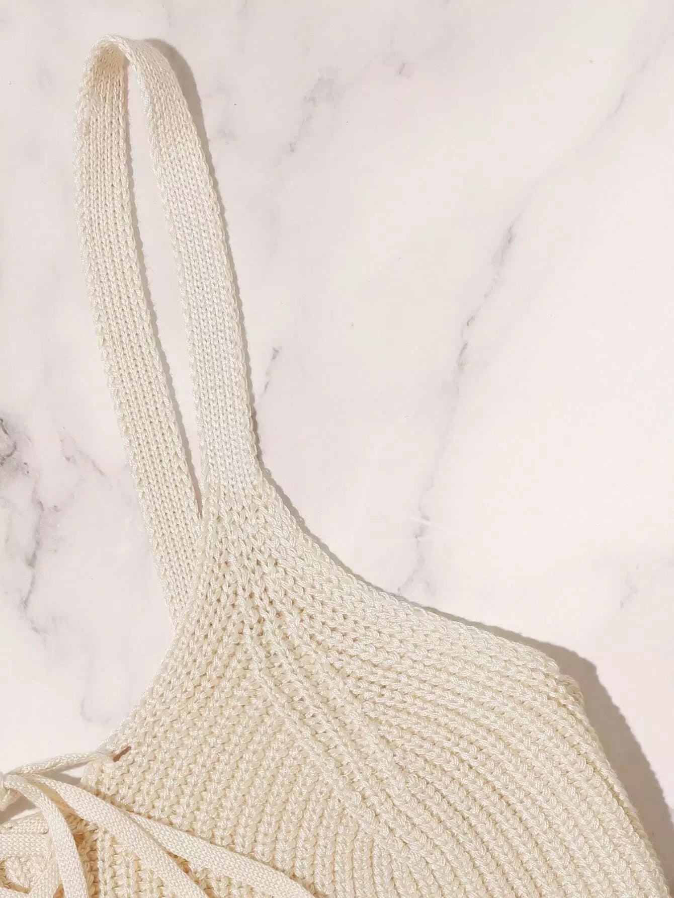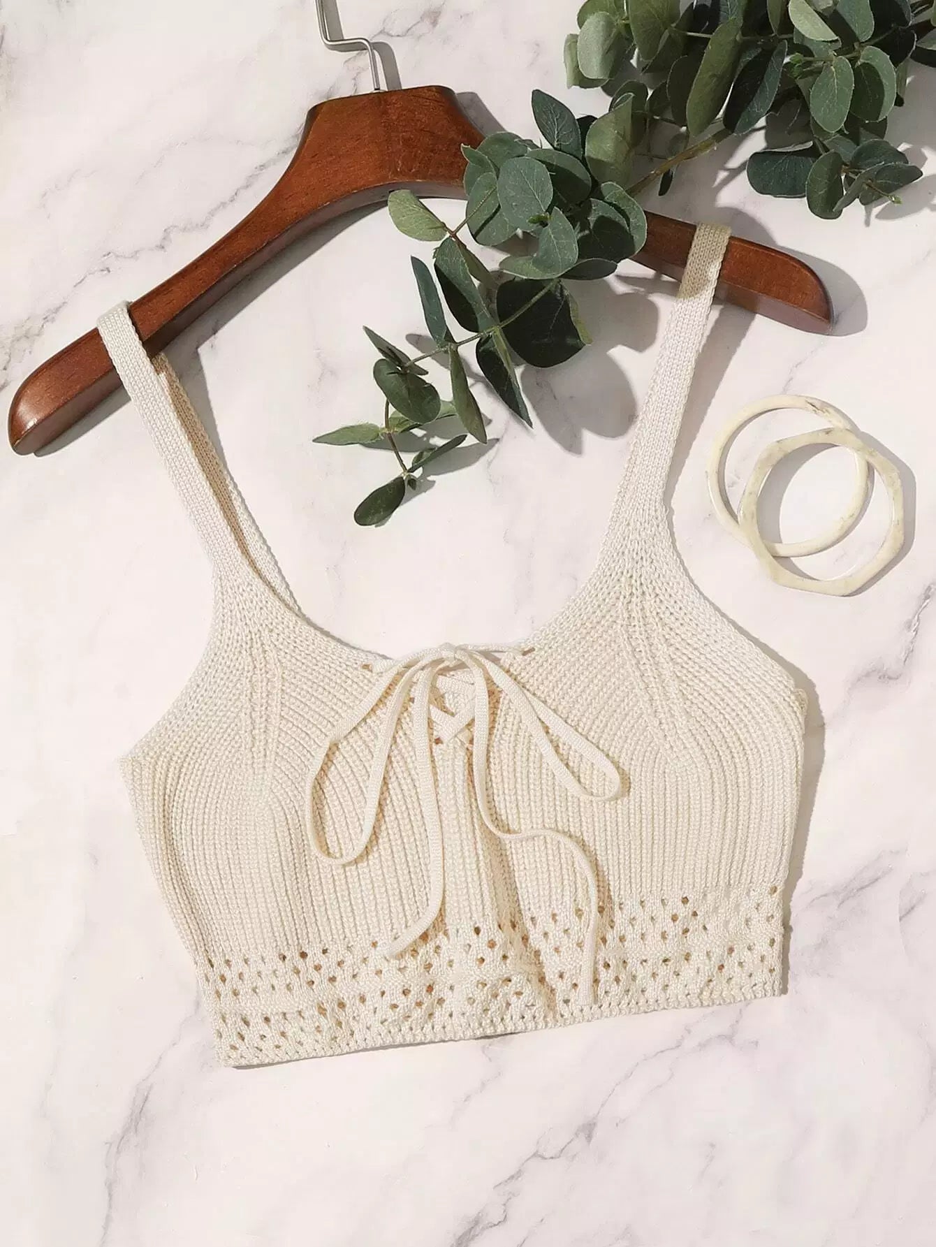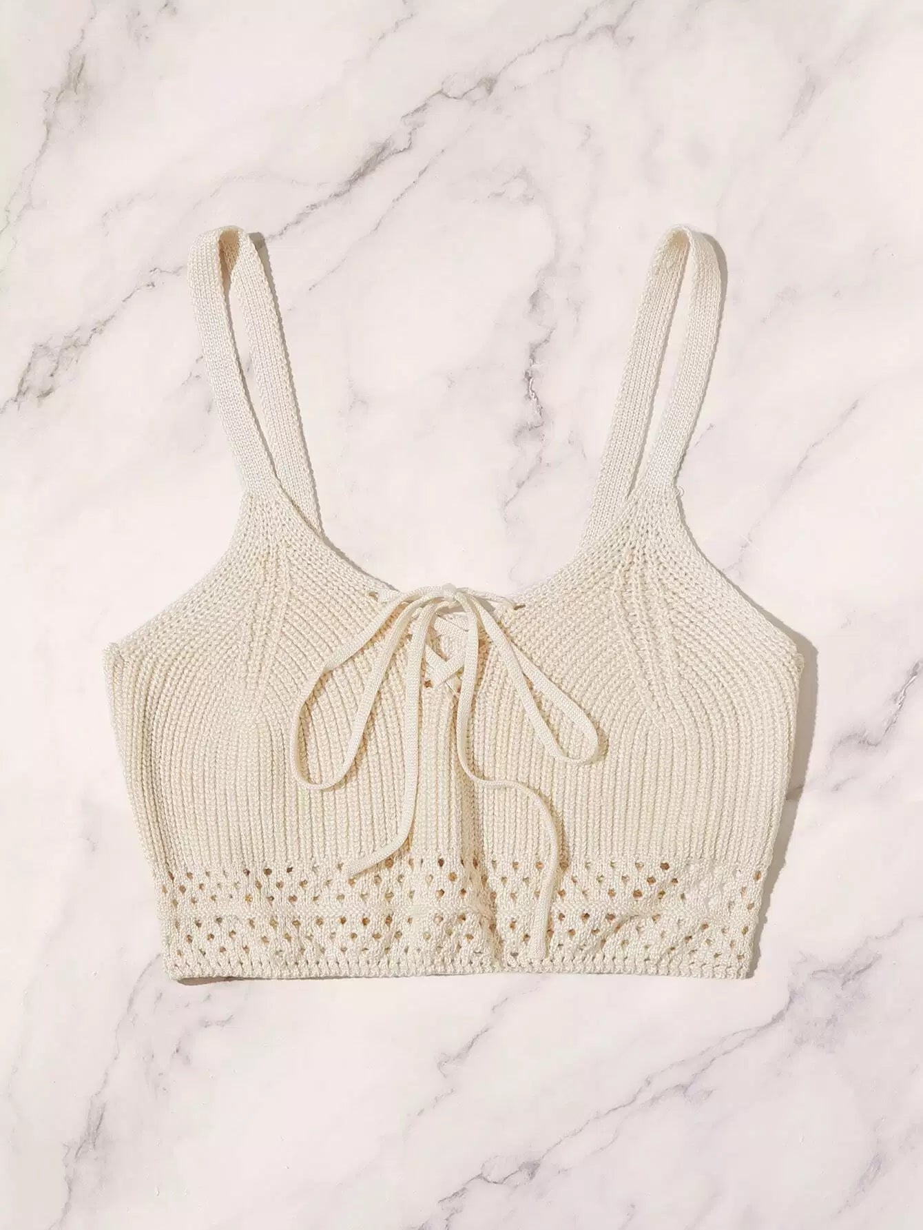 بلوزة قصيرة مفتوحة من الأمام بأربطة مفتوحة من الأمام ومحبوكة
