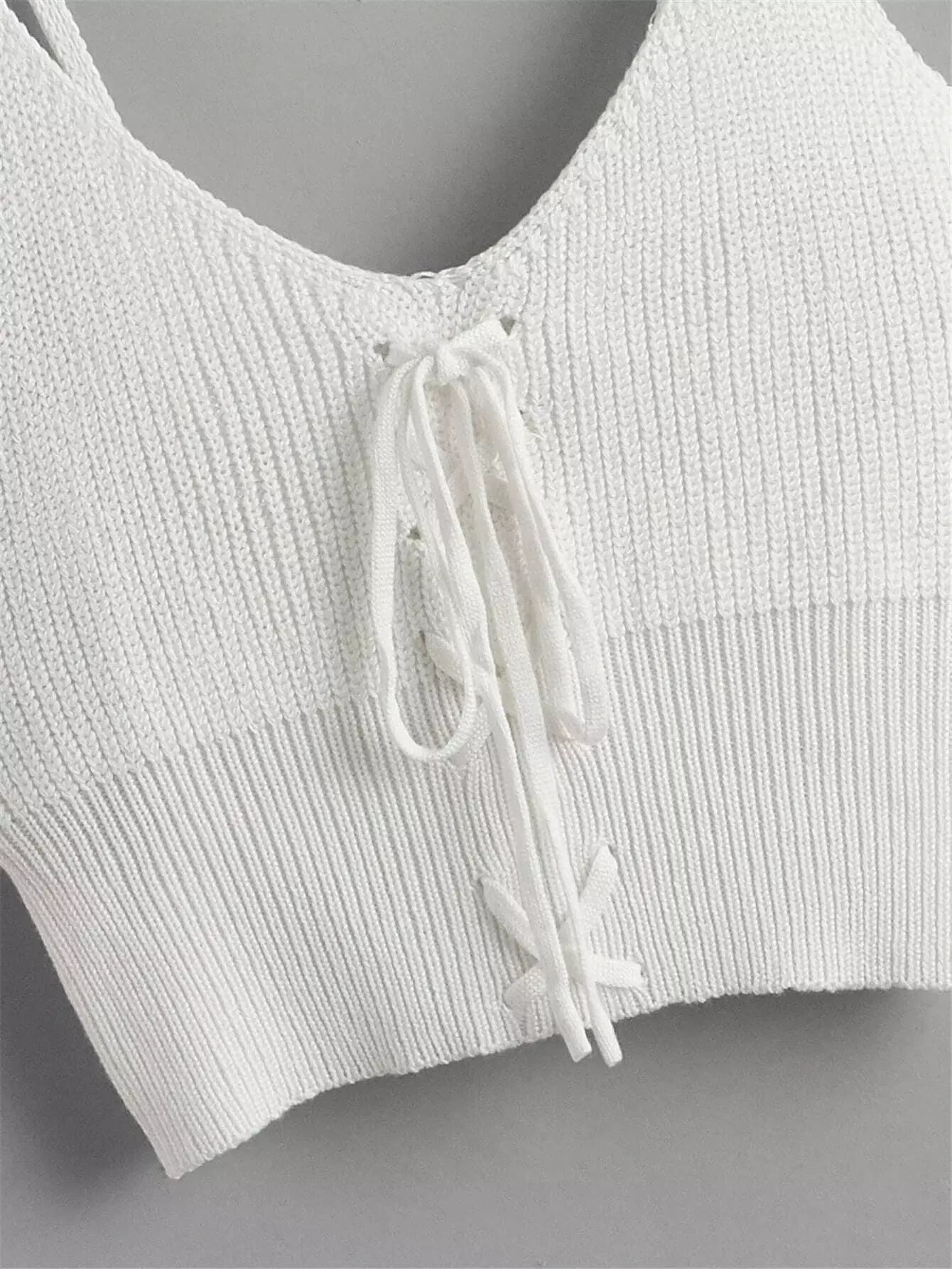 بلوزة محبوكة مضلعة بأربطة مضلعة