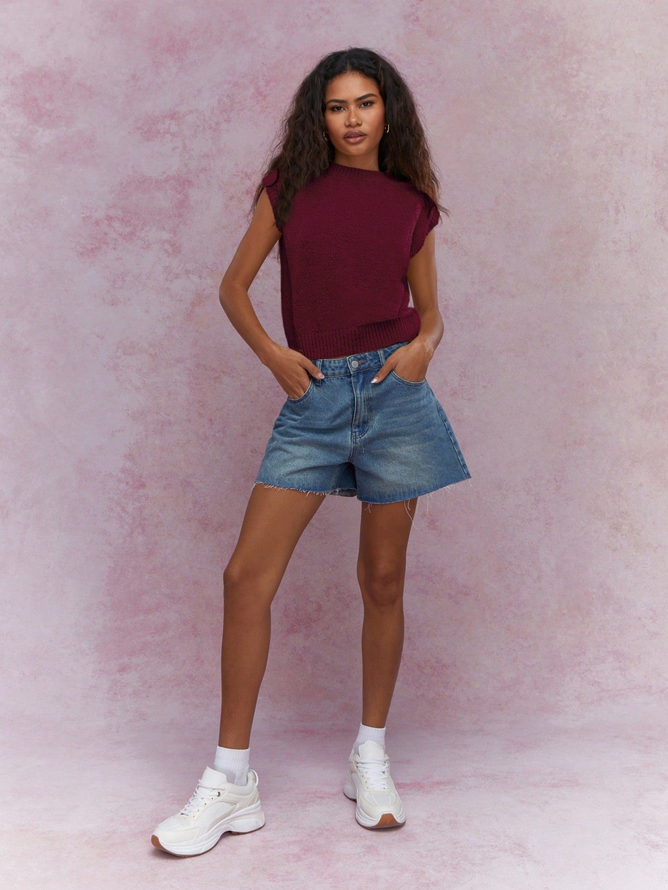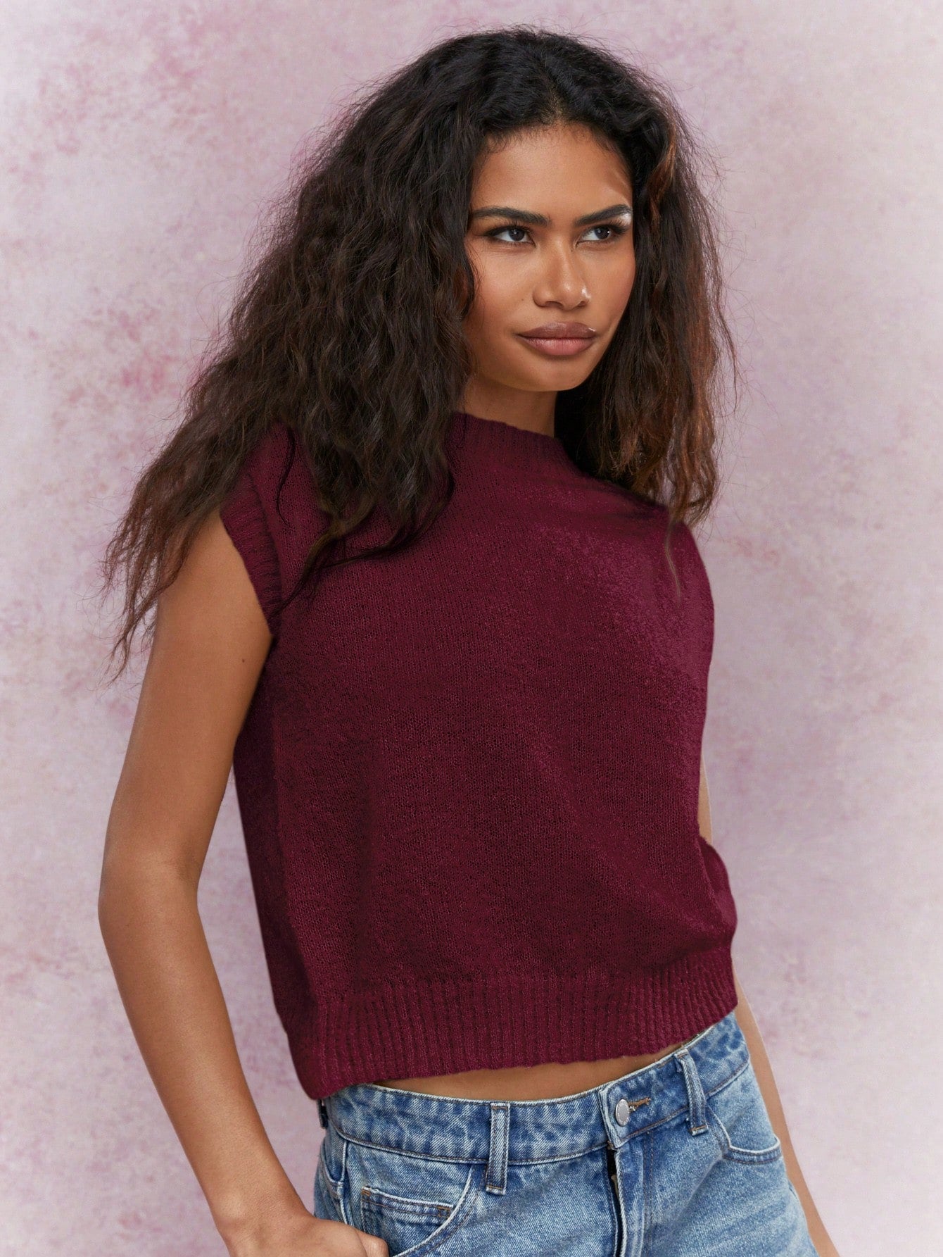 MISSGUIDED Sleeveless Knit Sweater Vest Mock Neck Ribbed Tank Crop Top For Fall Winter Layering And Spring
