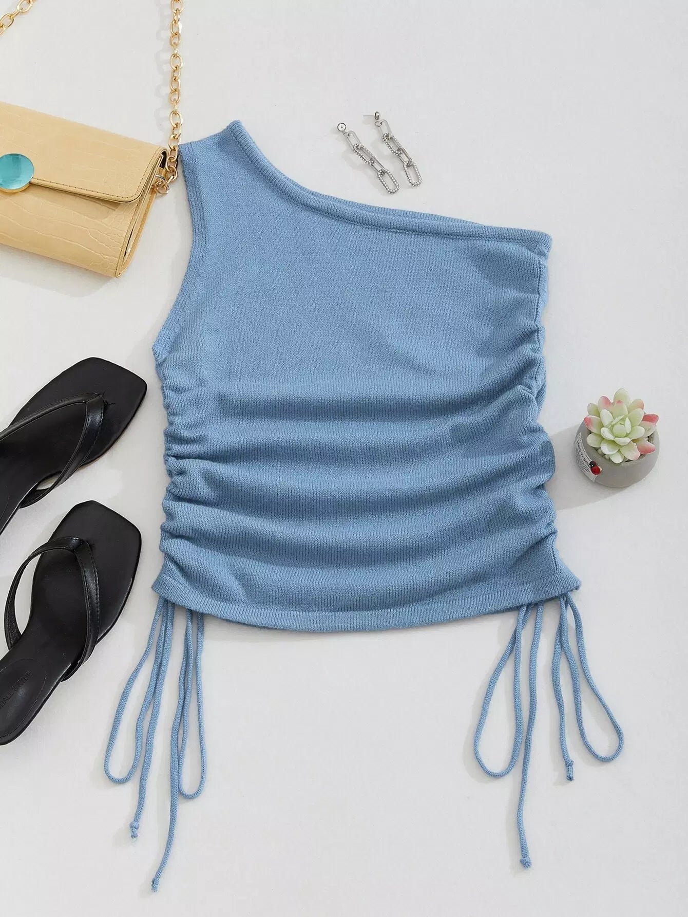 بلوزة محبوكة جانبية برباط على كتف واحد محبوكة