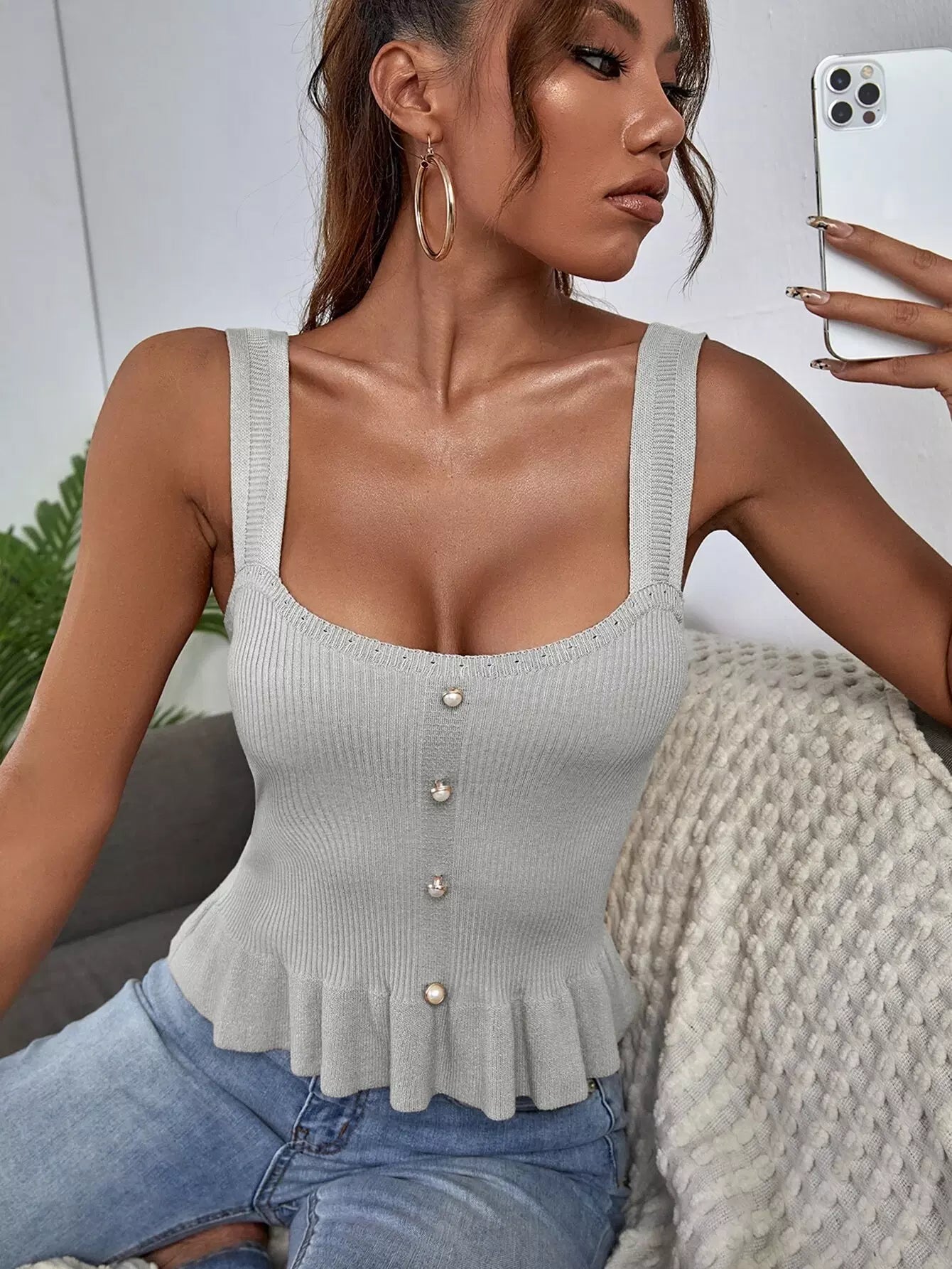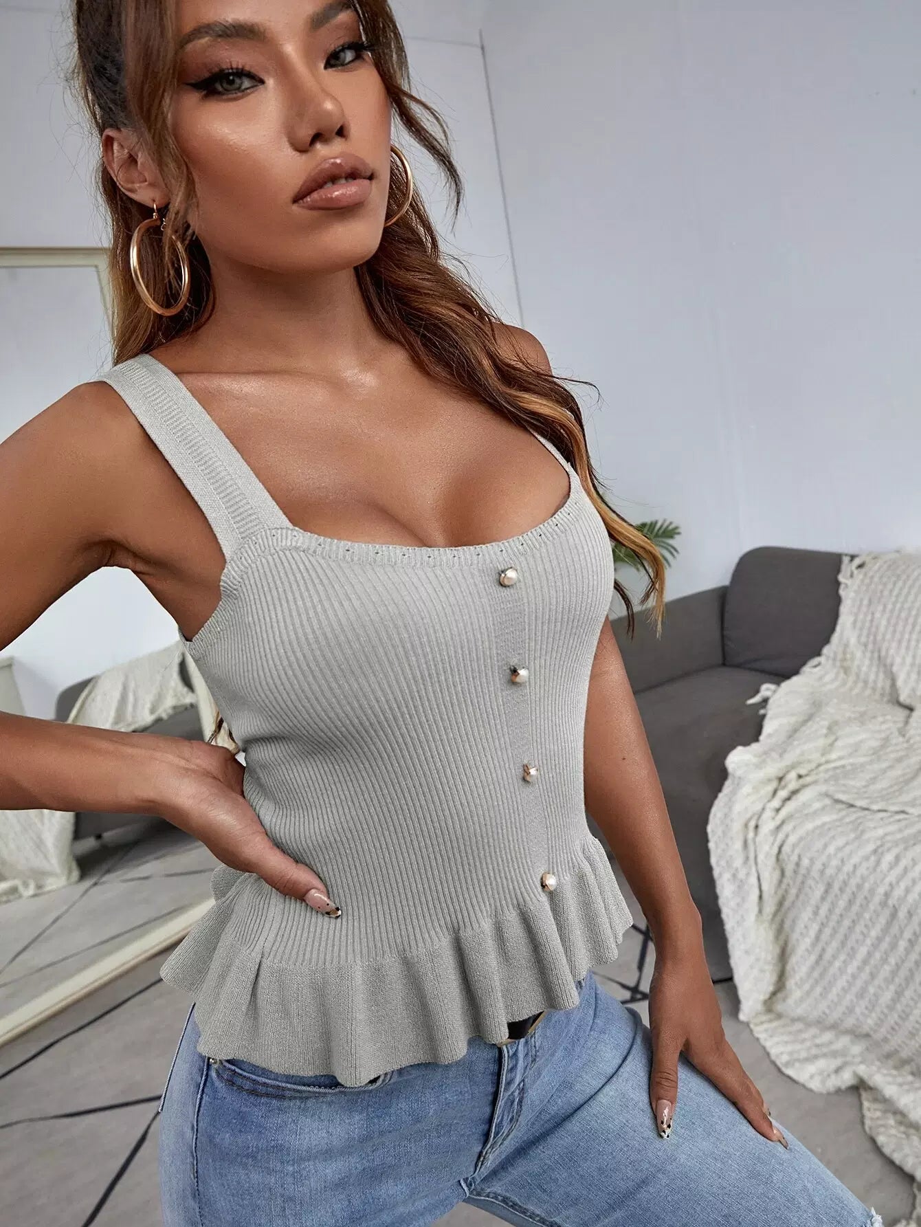 بلوزة مكشكشة بحاشية كشكش ومزينة بأزرار متماسكة