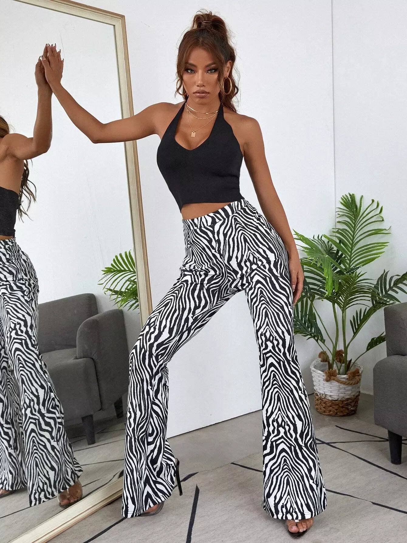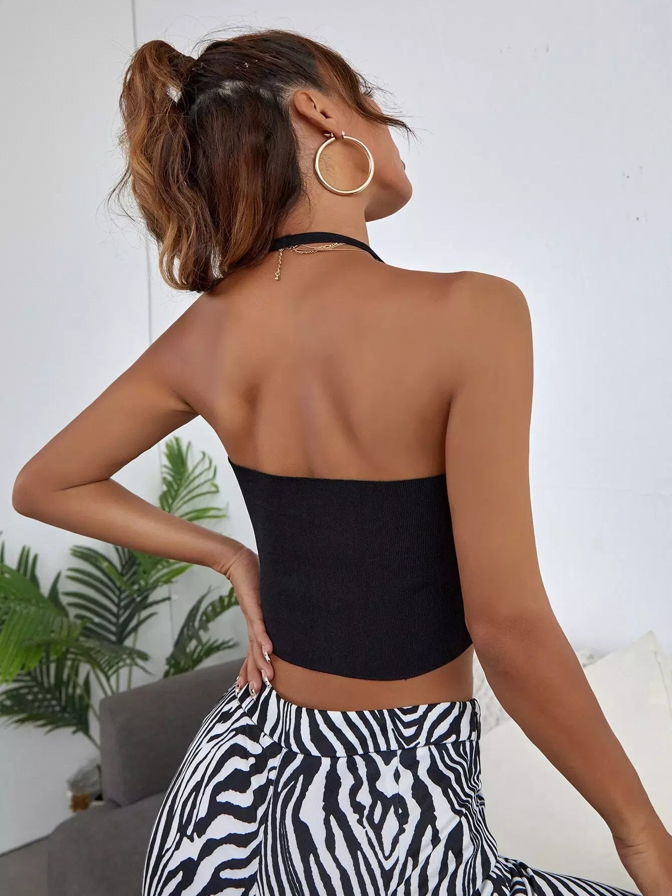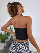 بلوزة سادة مكشوفة الظهر متماسكة مضلعة مضلعة الرسن