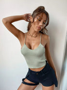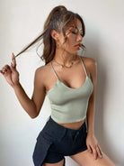 بلوزة سادة كريس كروس متقاطعة بدون أكمام محبوكة من الخلف