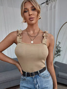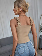 بلوزة سادة بحزام كشكش محبوكة سادة