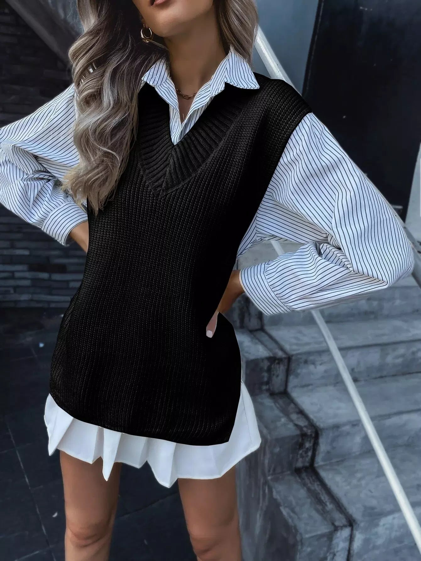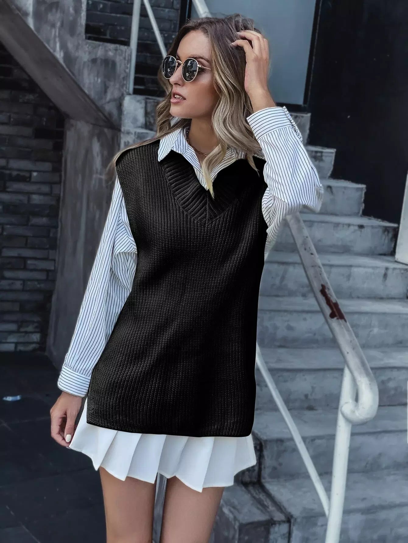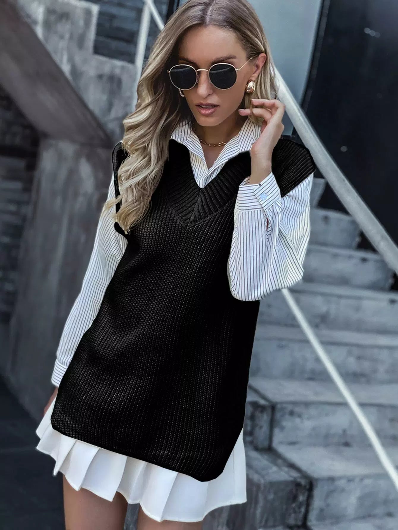 سترة سترة سادة منقسمة الحواف بدون بلوزة