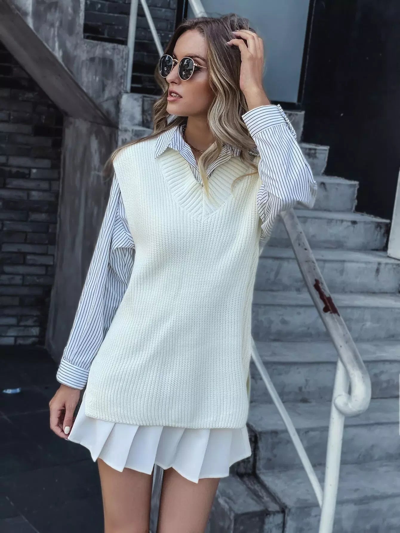 سترة سترة سادة منقسمة الحواف بدون بلوزة