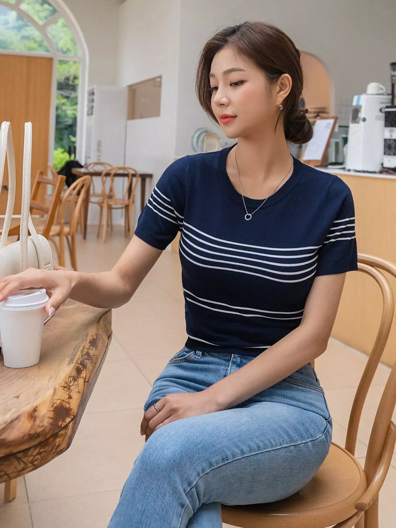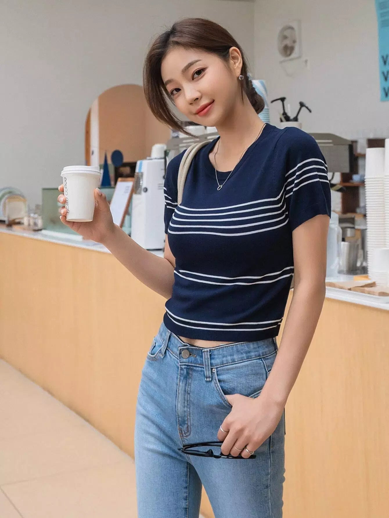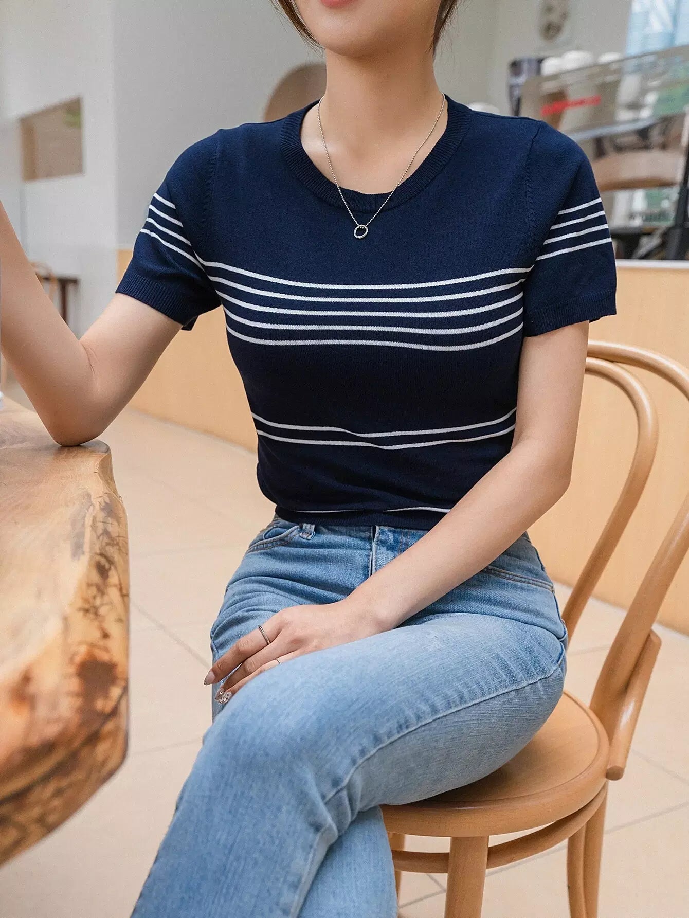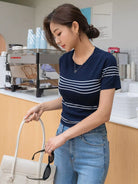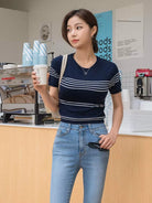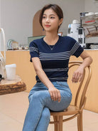 بلوزة قصيرة محبوكة بنمط مخطط