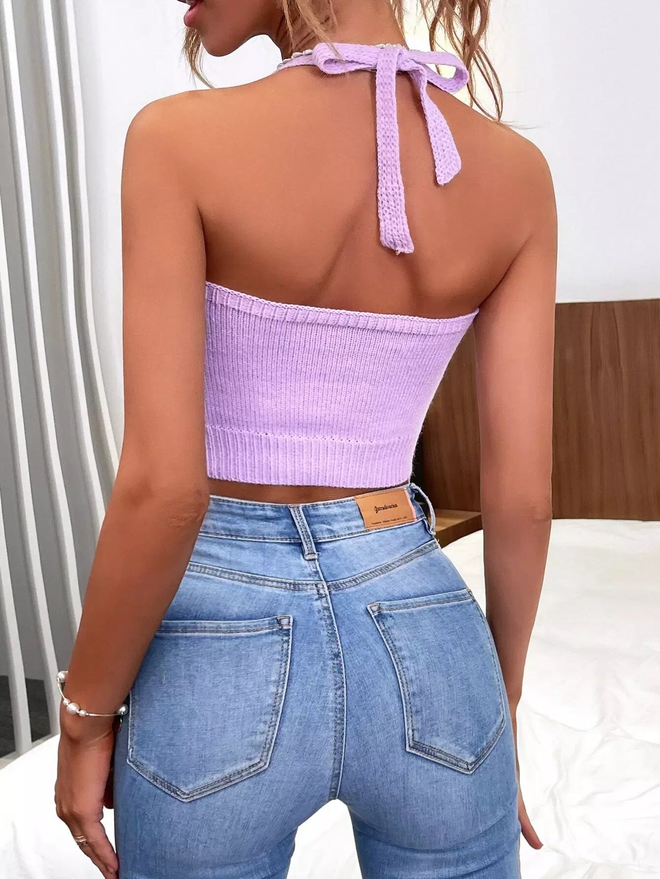 بلوزة محبوكة بربطة عنق على الظهر محبوكة