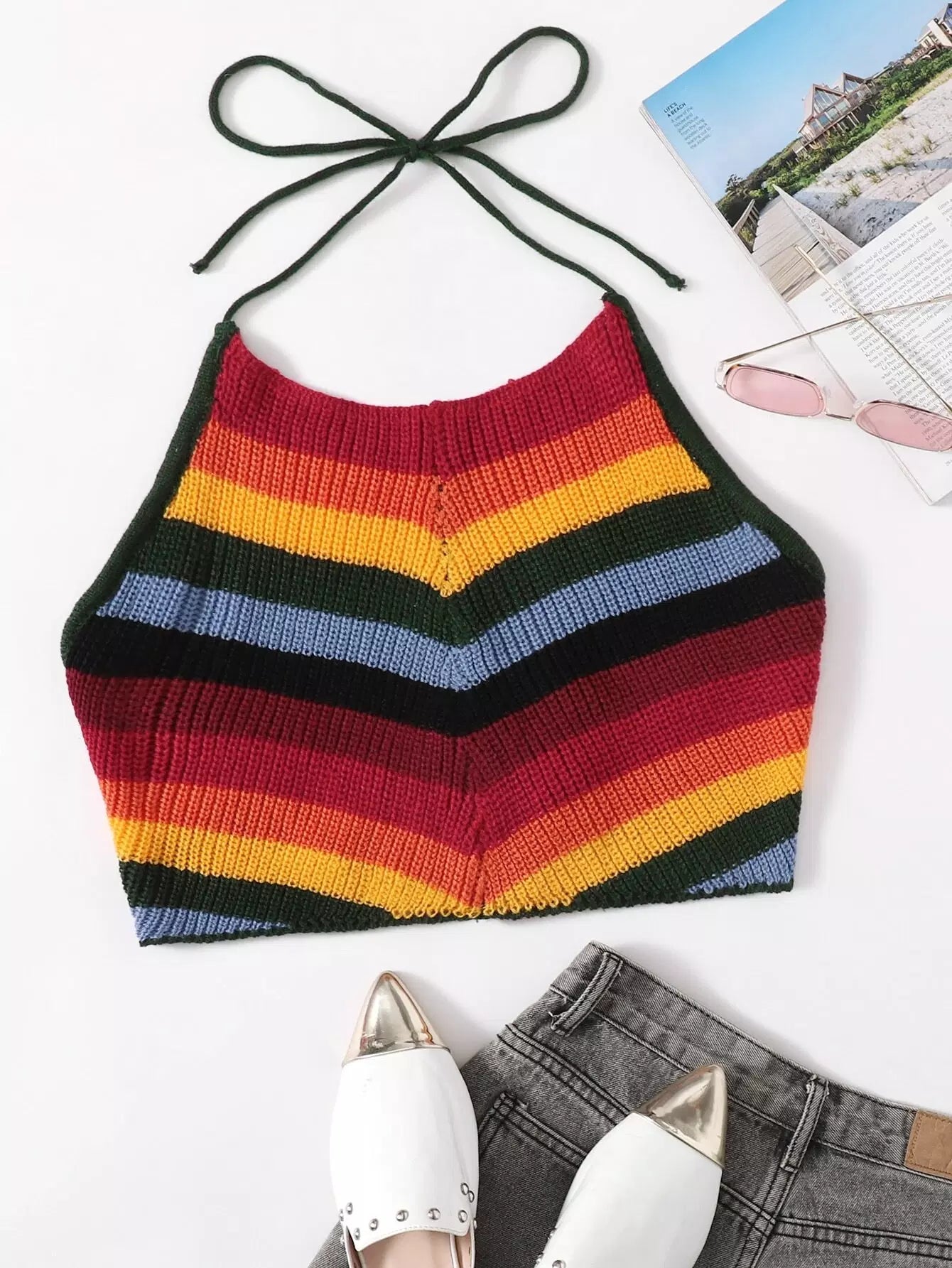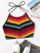 بلوزة مخططة مخططة بلا أربطة على الظهر مربوطة من الخلف