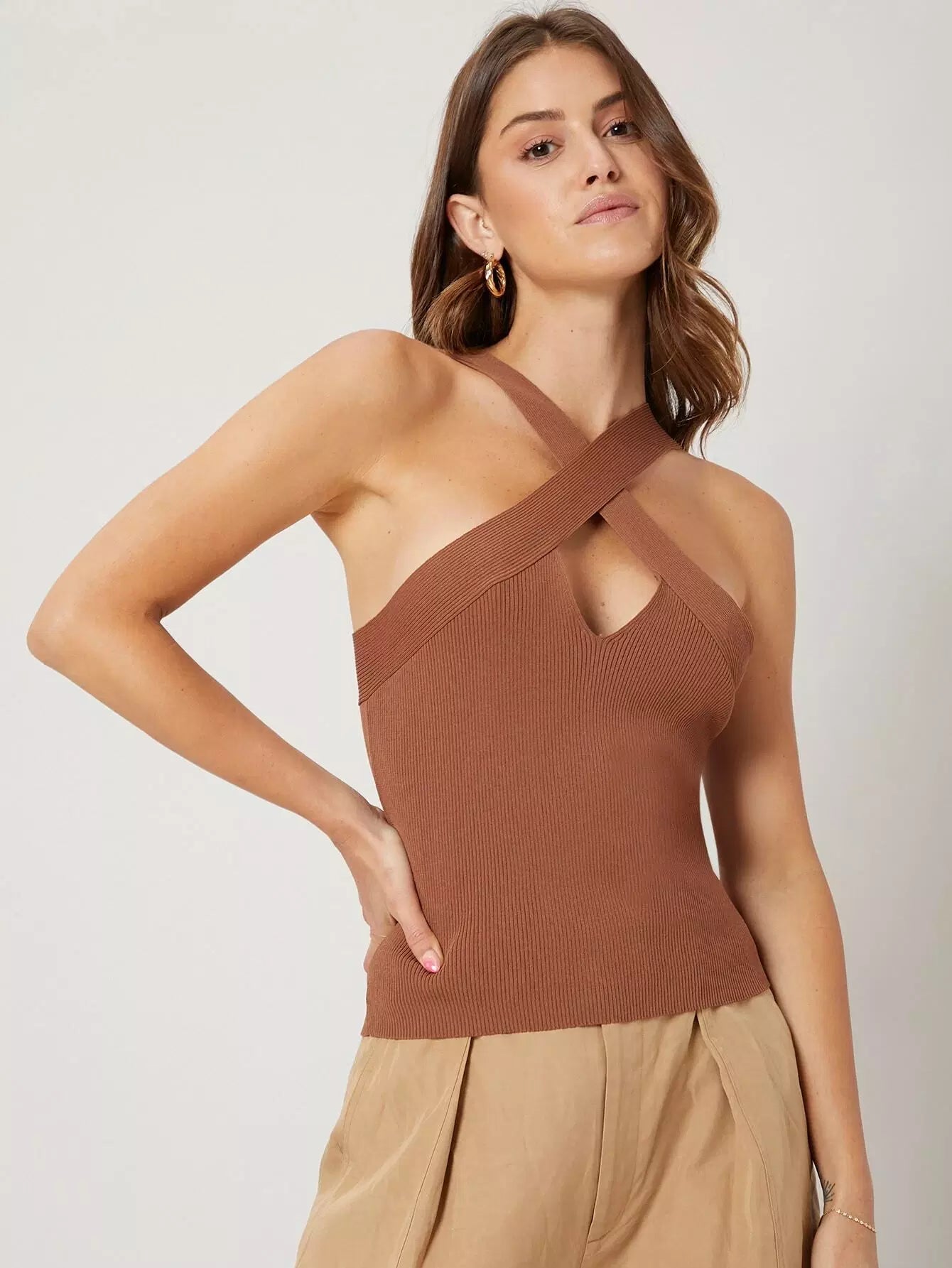 بلوزة محبوكة من الفسكوز يمكن ارتداؤها من الأمام والخلف