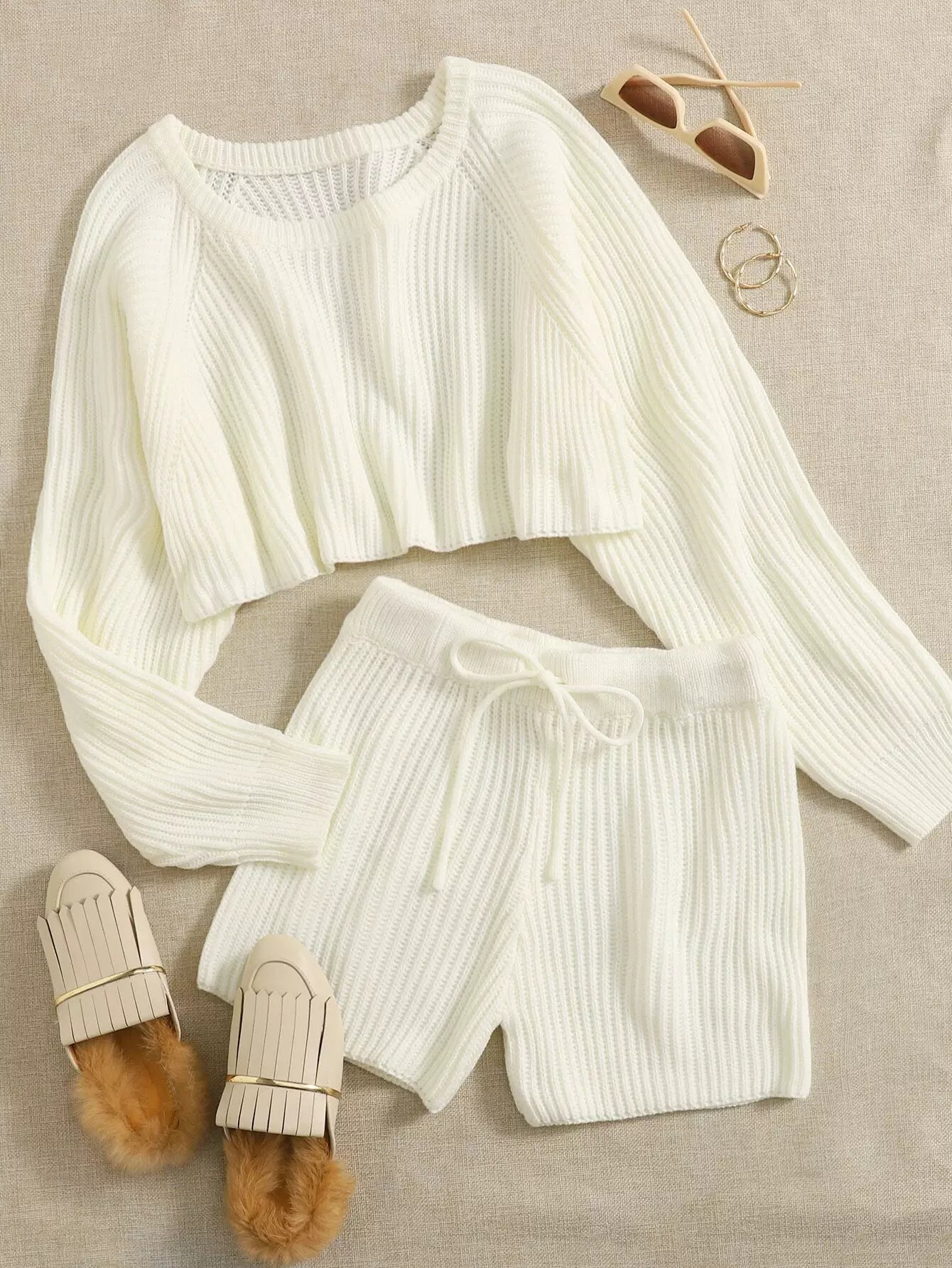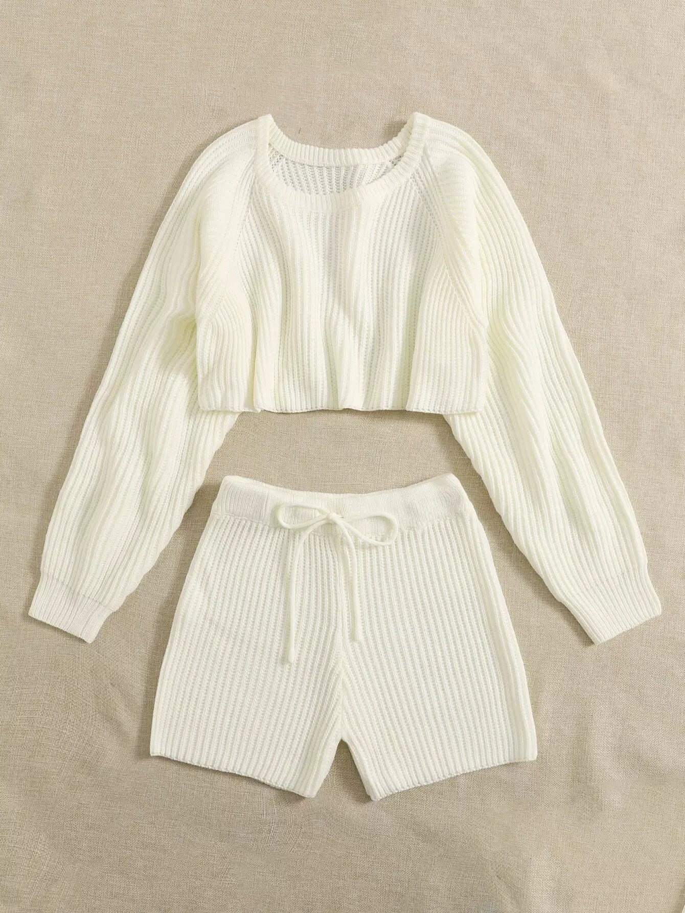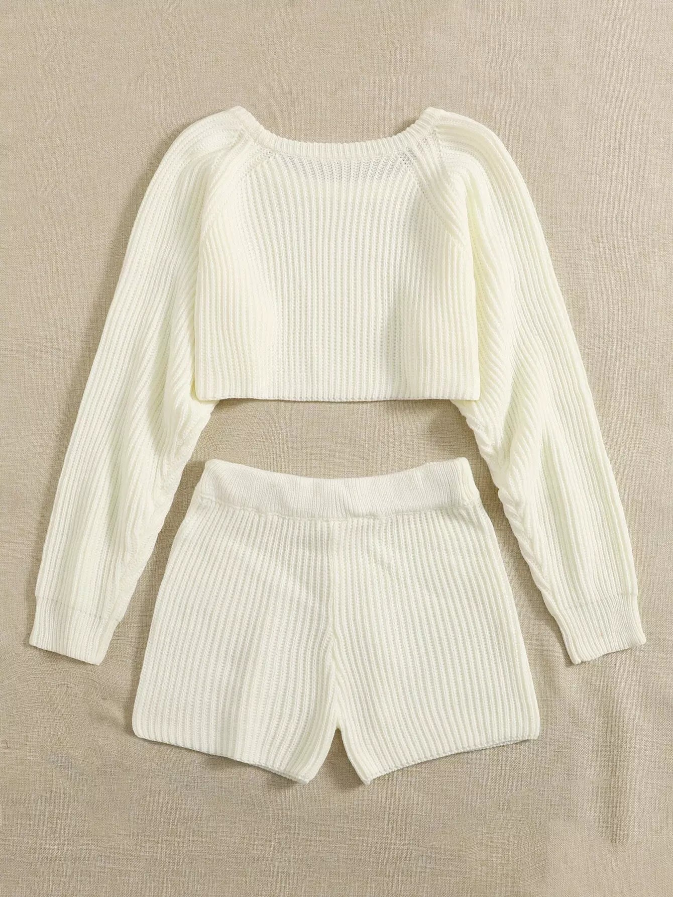 طقم كنزة بأكمام راجلان وشورت بأربطة