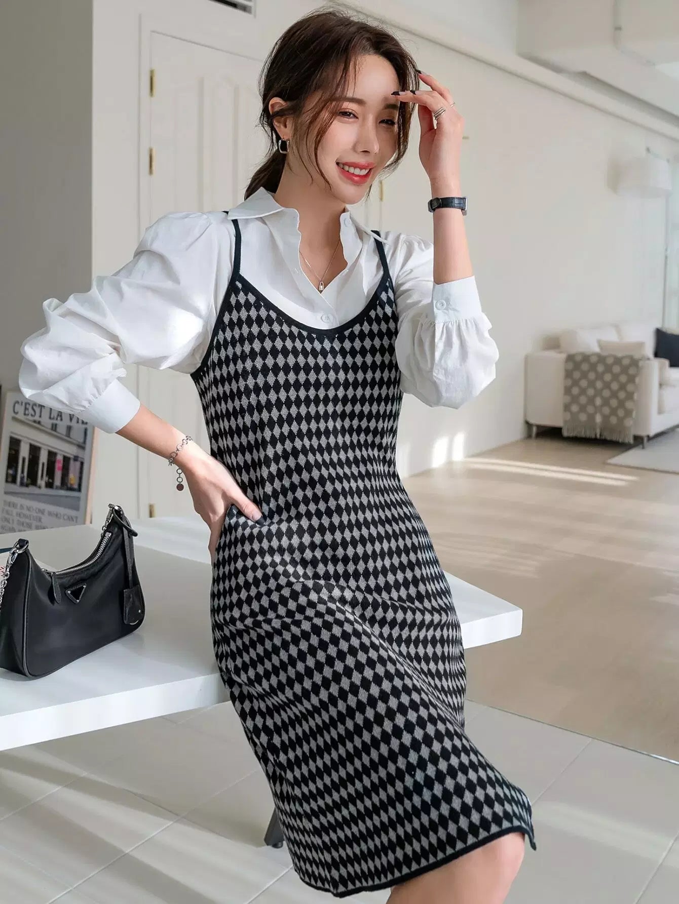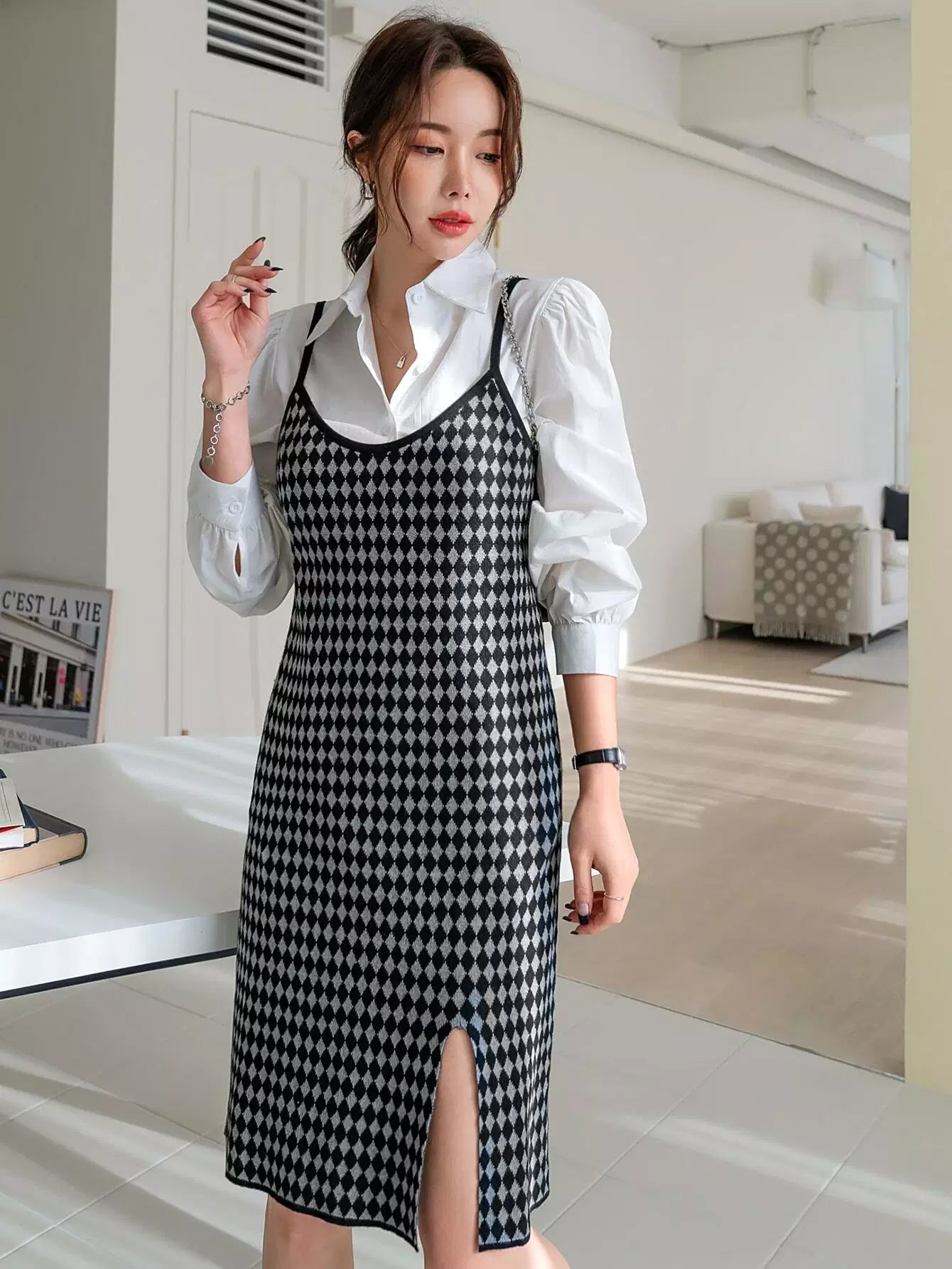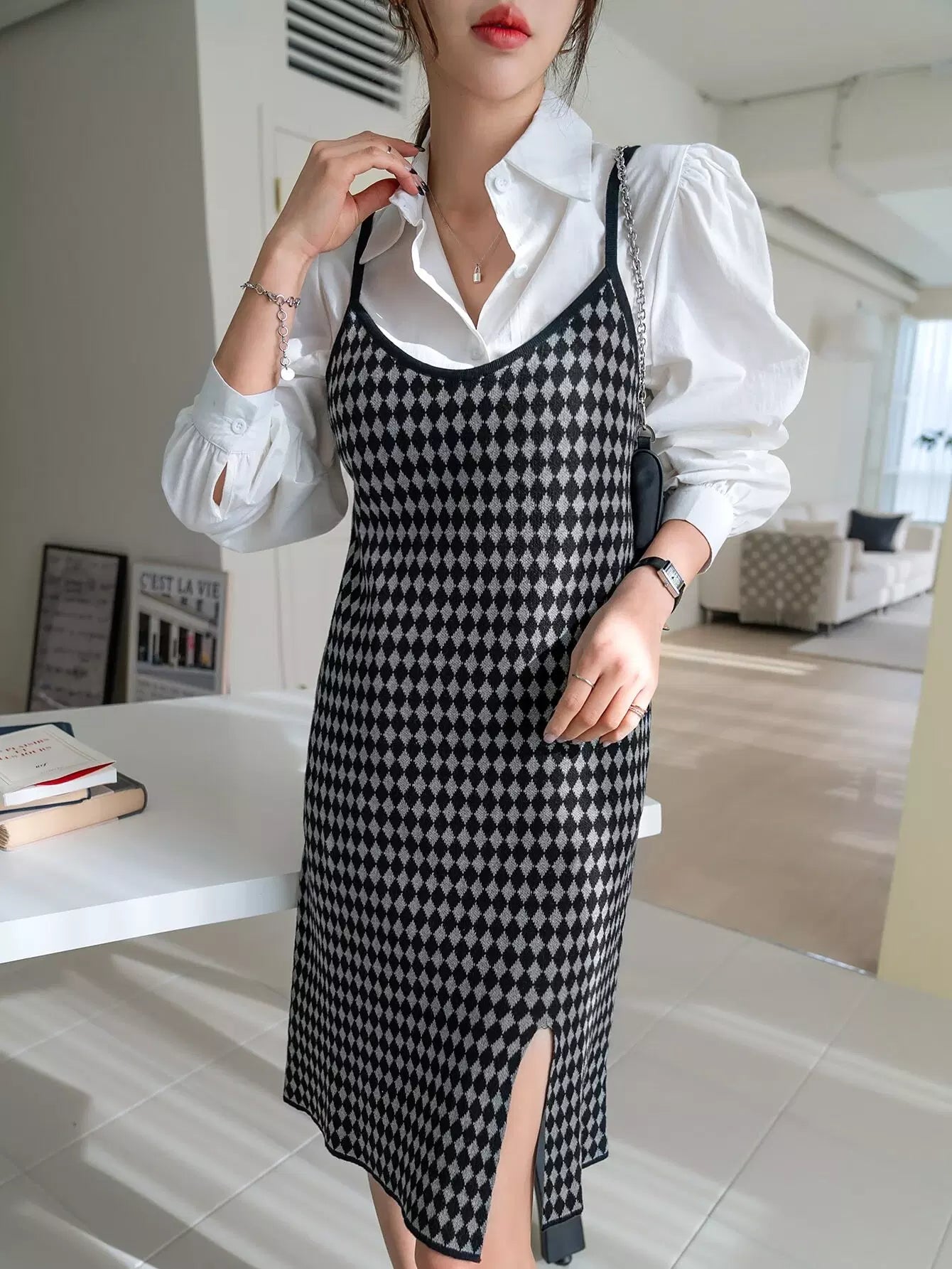 فستان بنقشة أرجيل بنقشة منقسمة الحواف من دون بلوزة