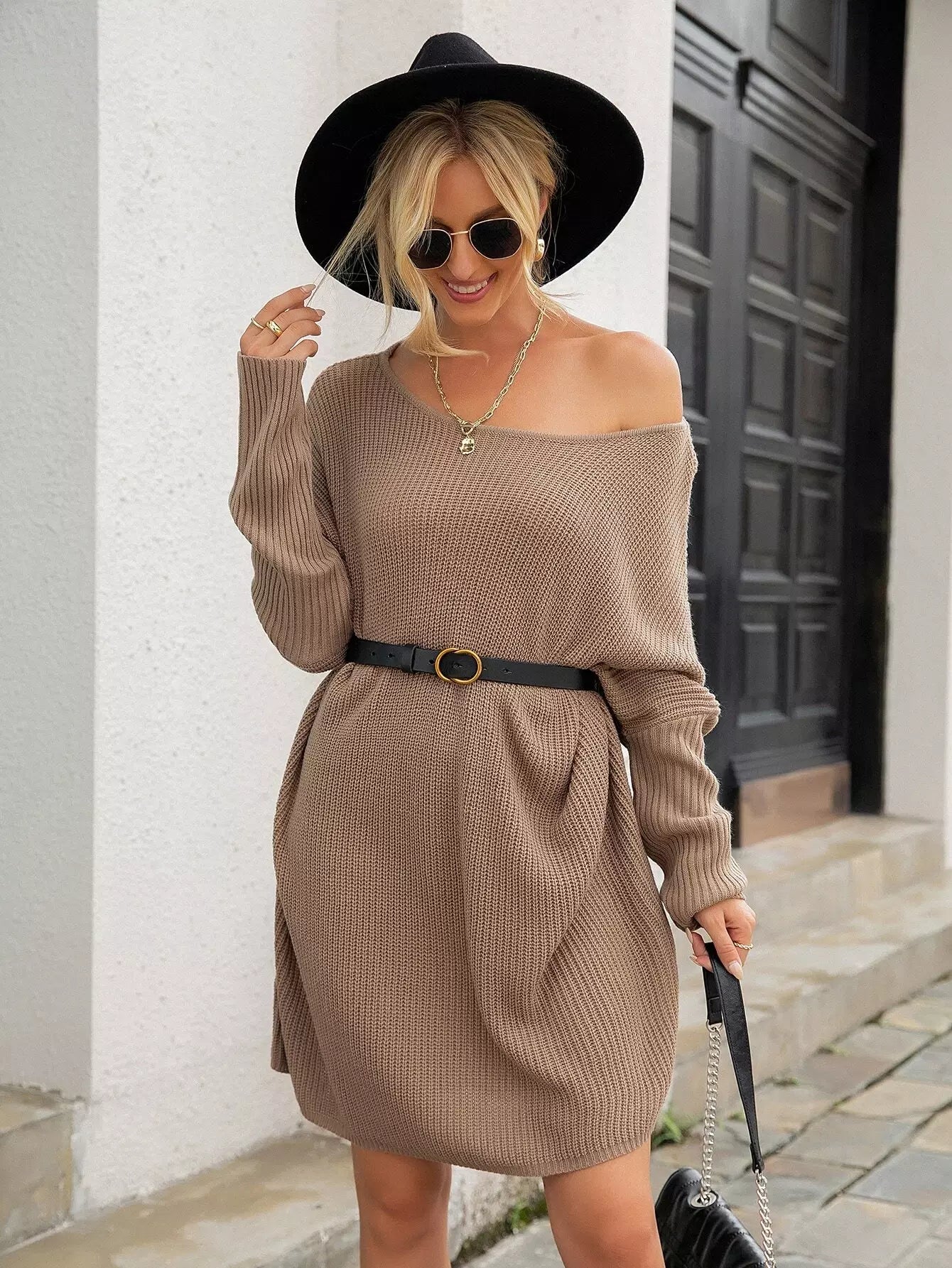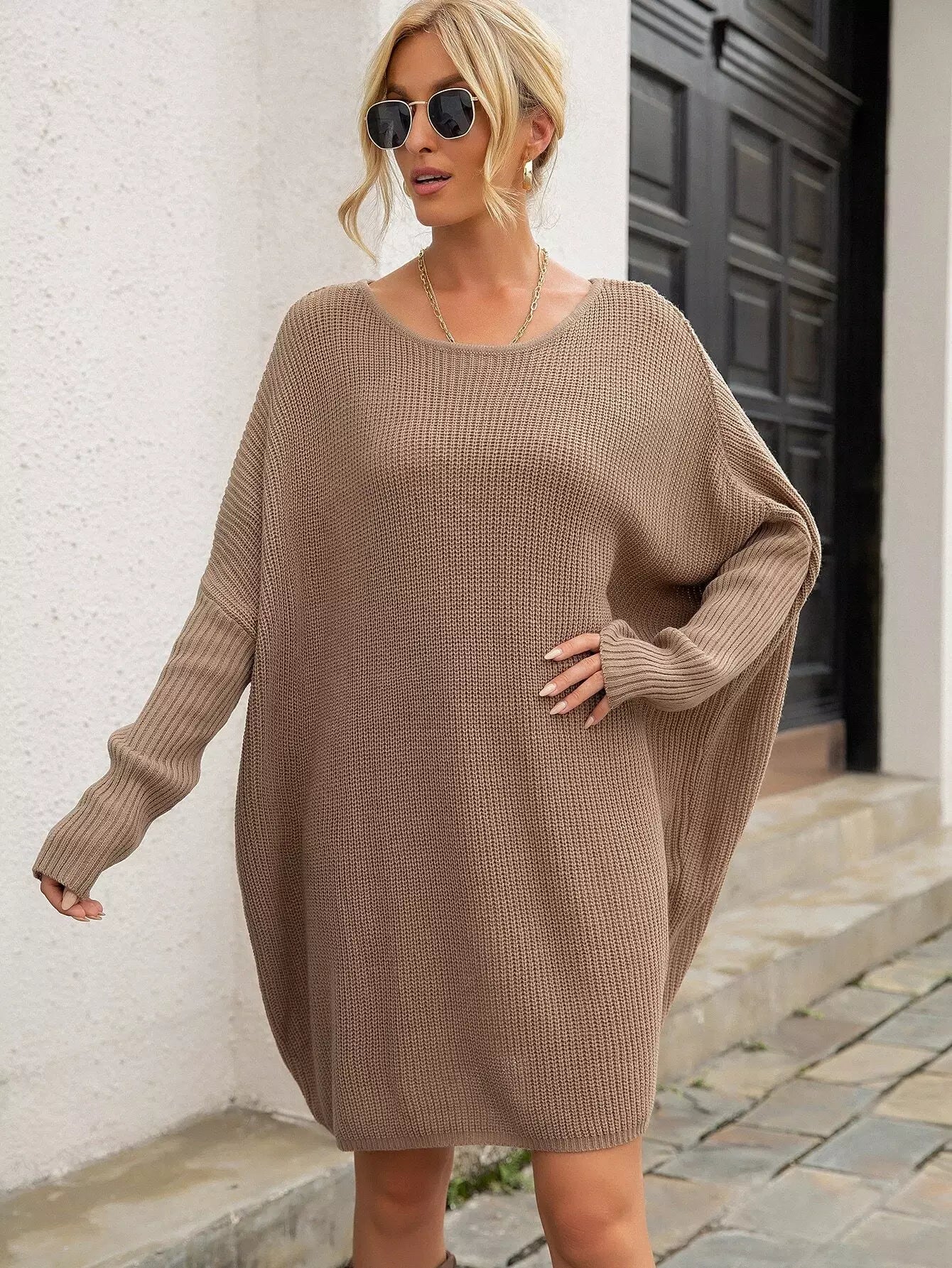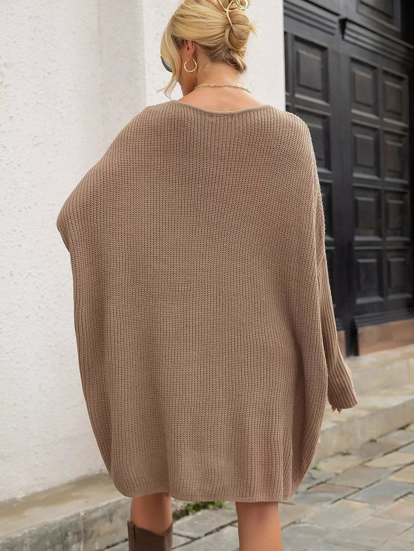 فستان سترة مضلع بأكمام جناح الخفاش بدون حزام