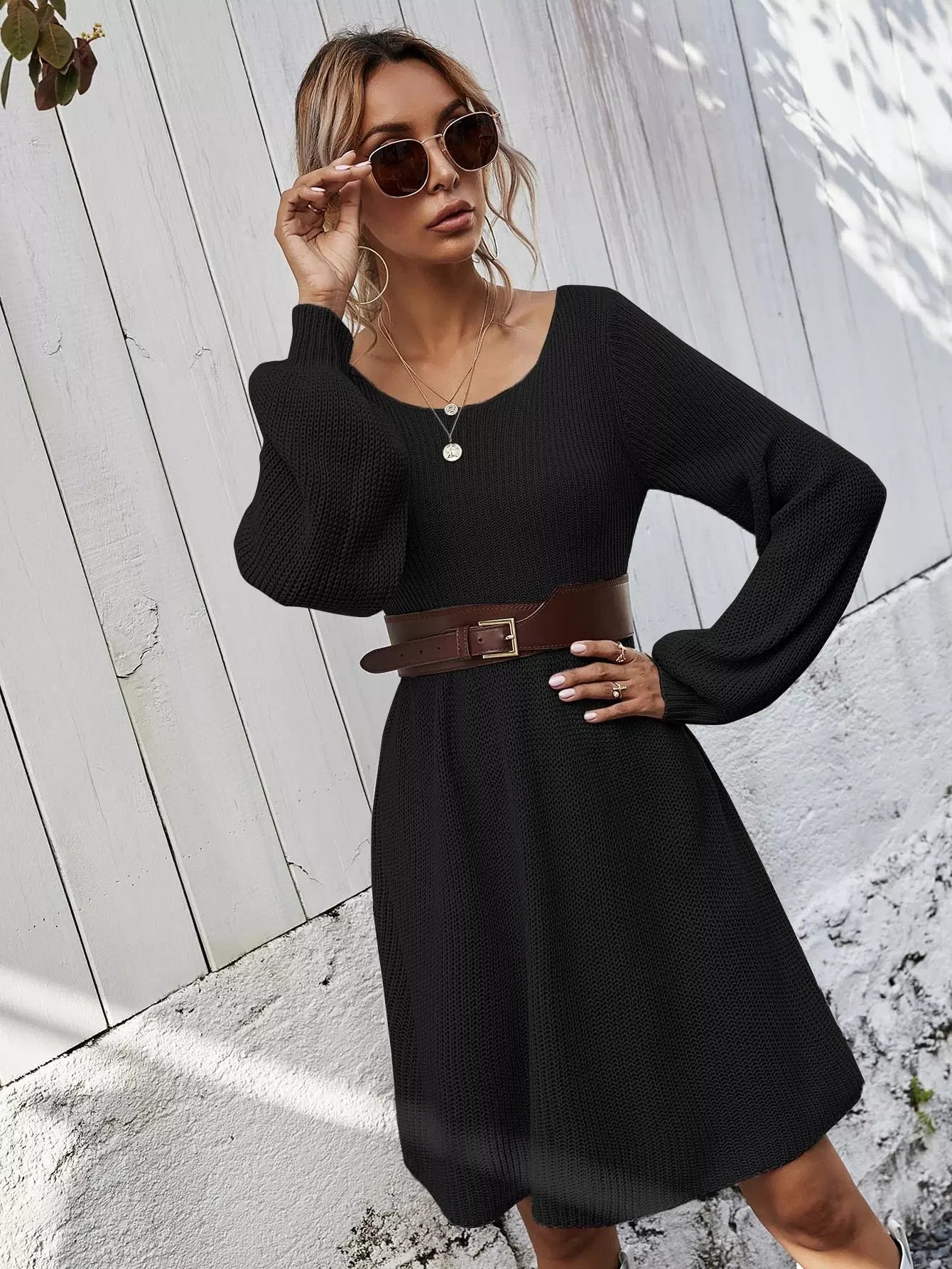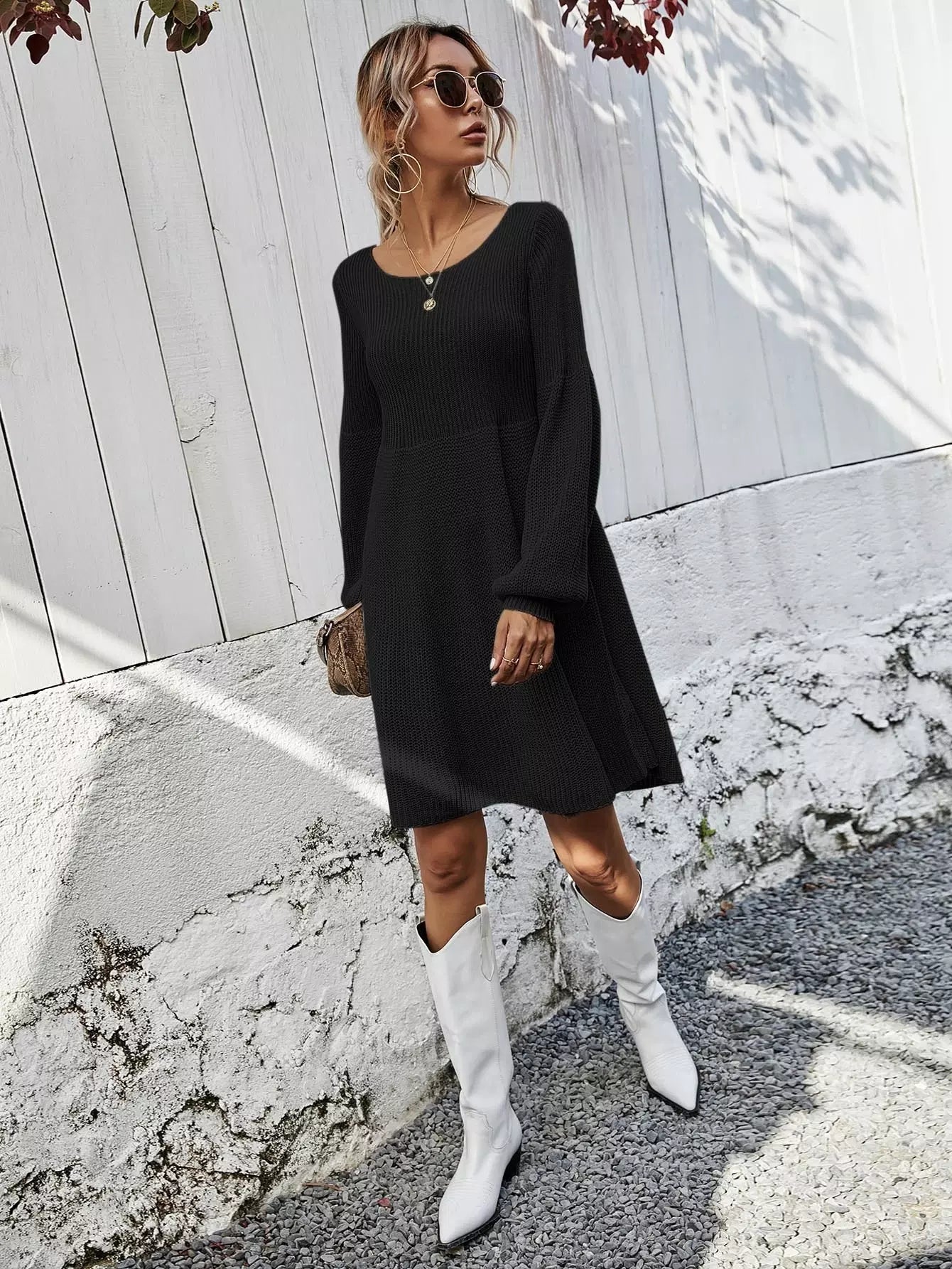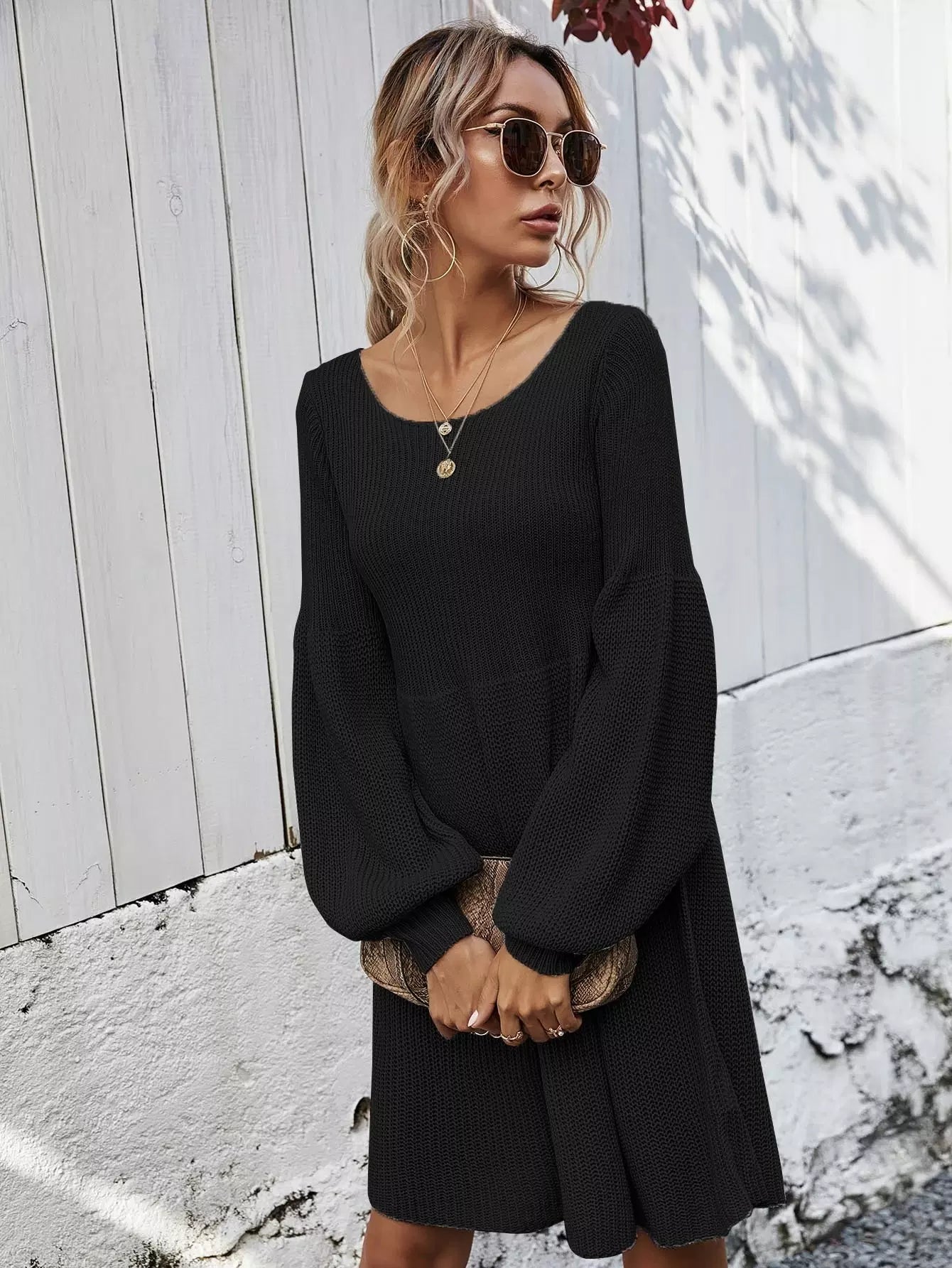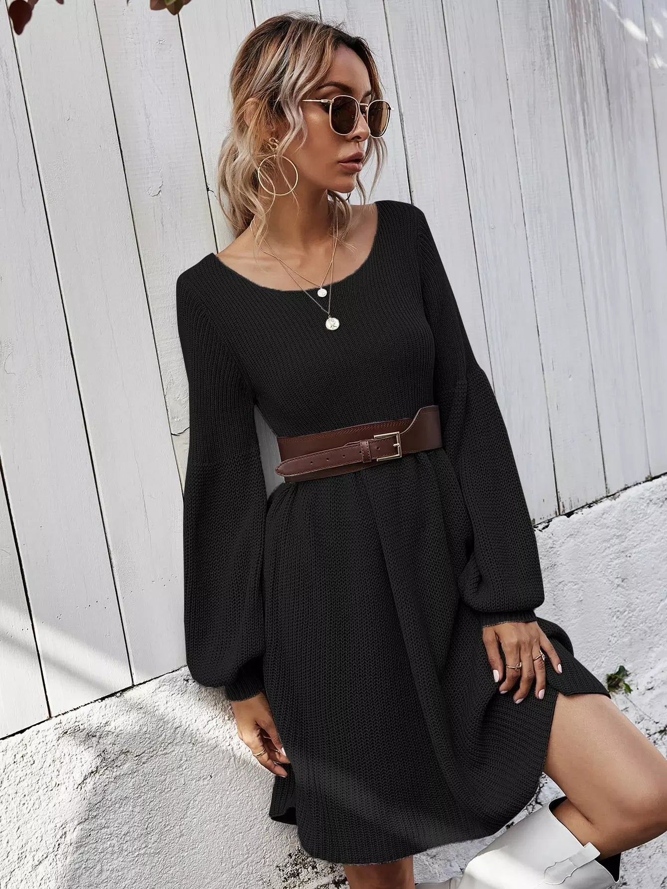 للنساء - فستان منسوج بأكمام بيشوب بدون حزام