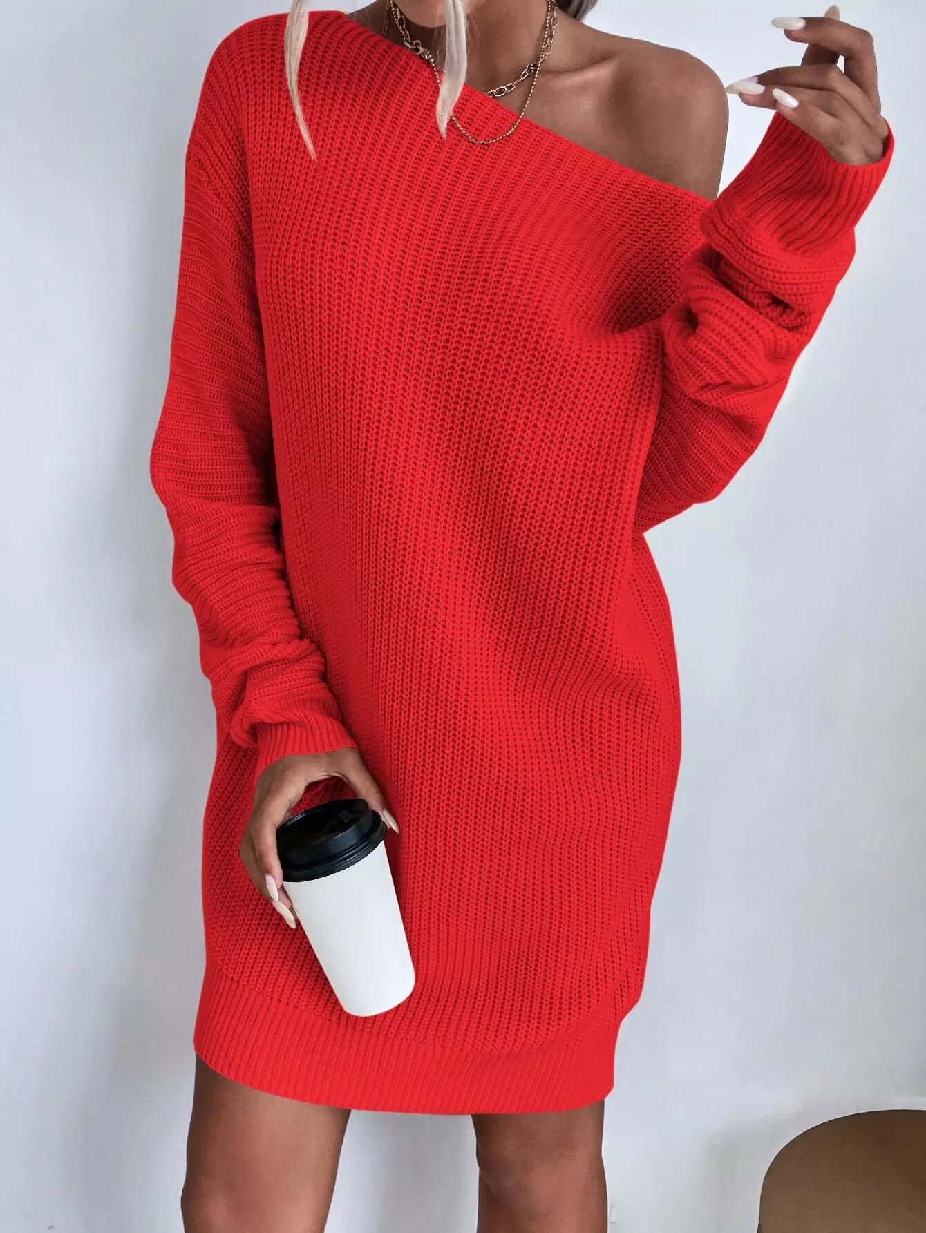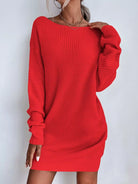 فستان برقبة قارب بياقة منسدلة الكتفين بدون حزام