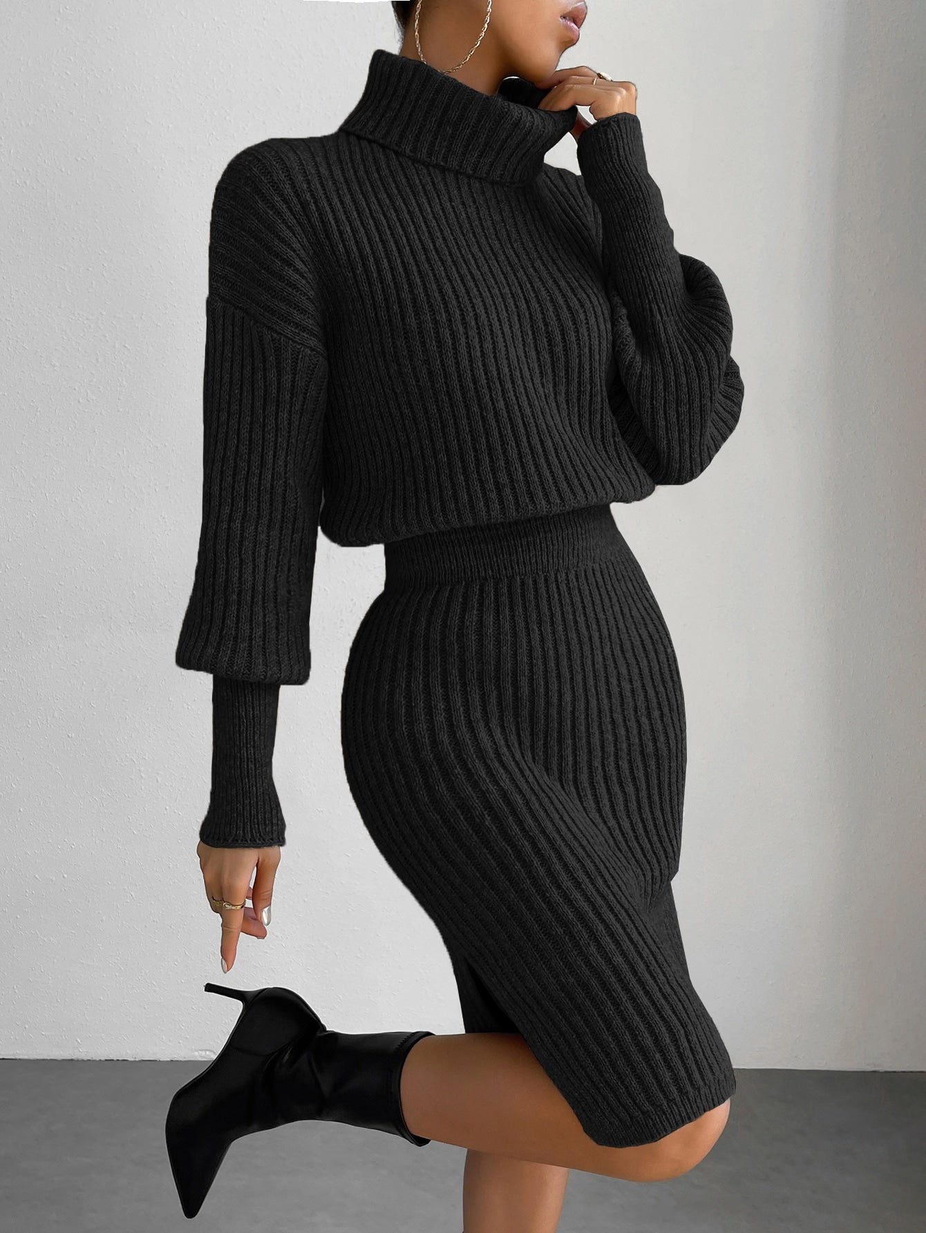 Chiquease Turtleneck Lantern Sleeve Sweater Dress Without Belt