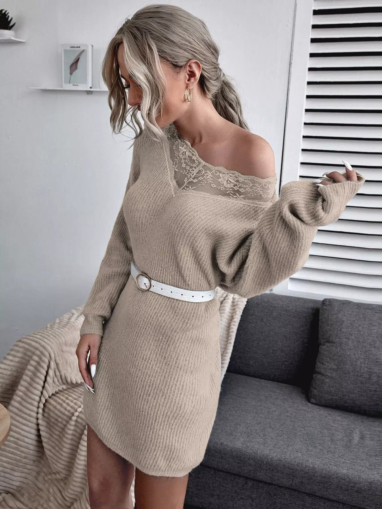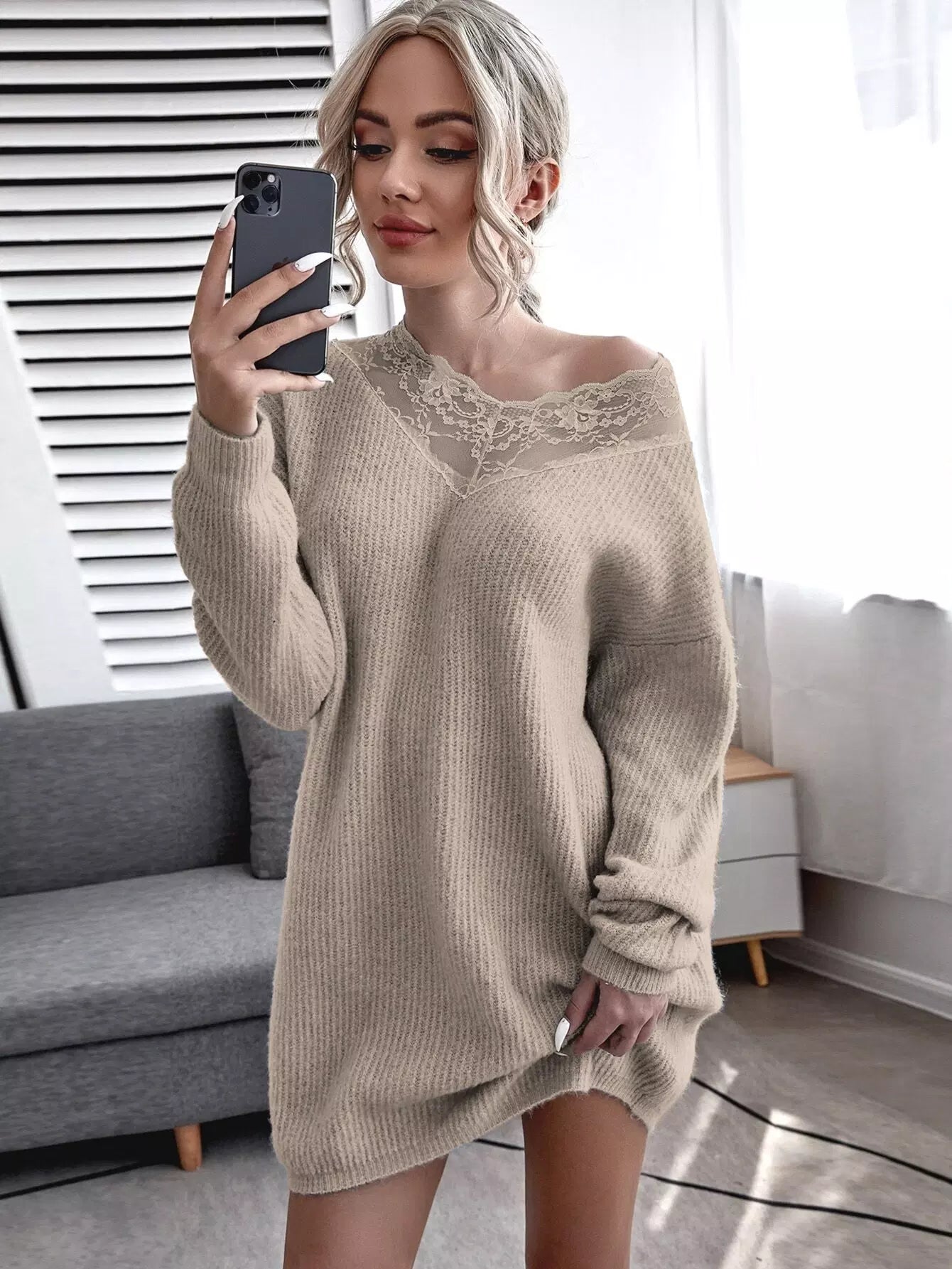 فستان من الدانتيل على شكل حرف V بياقة على شكل حرف V
