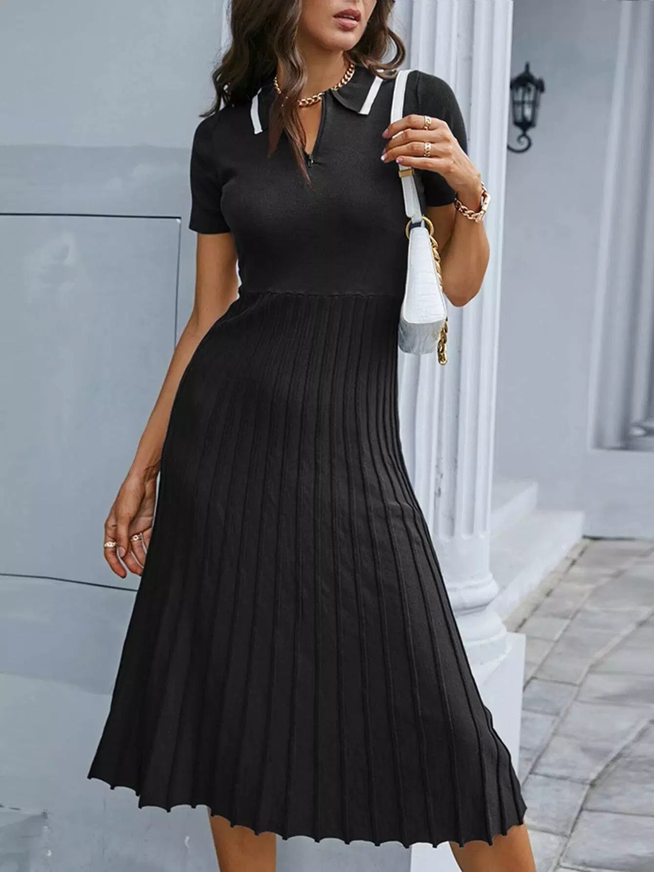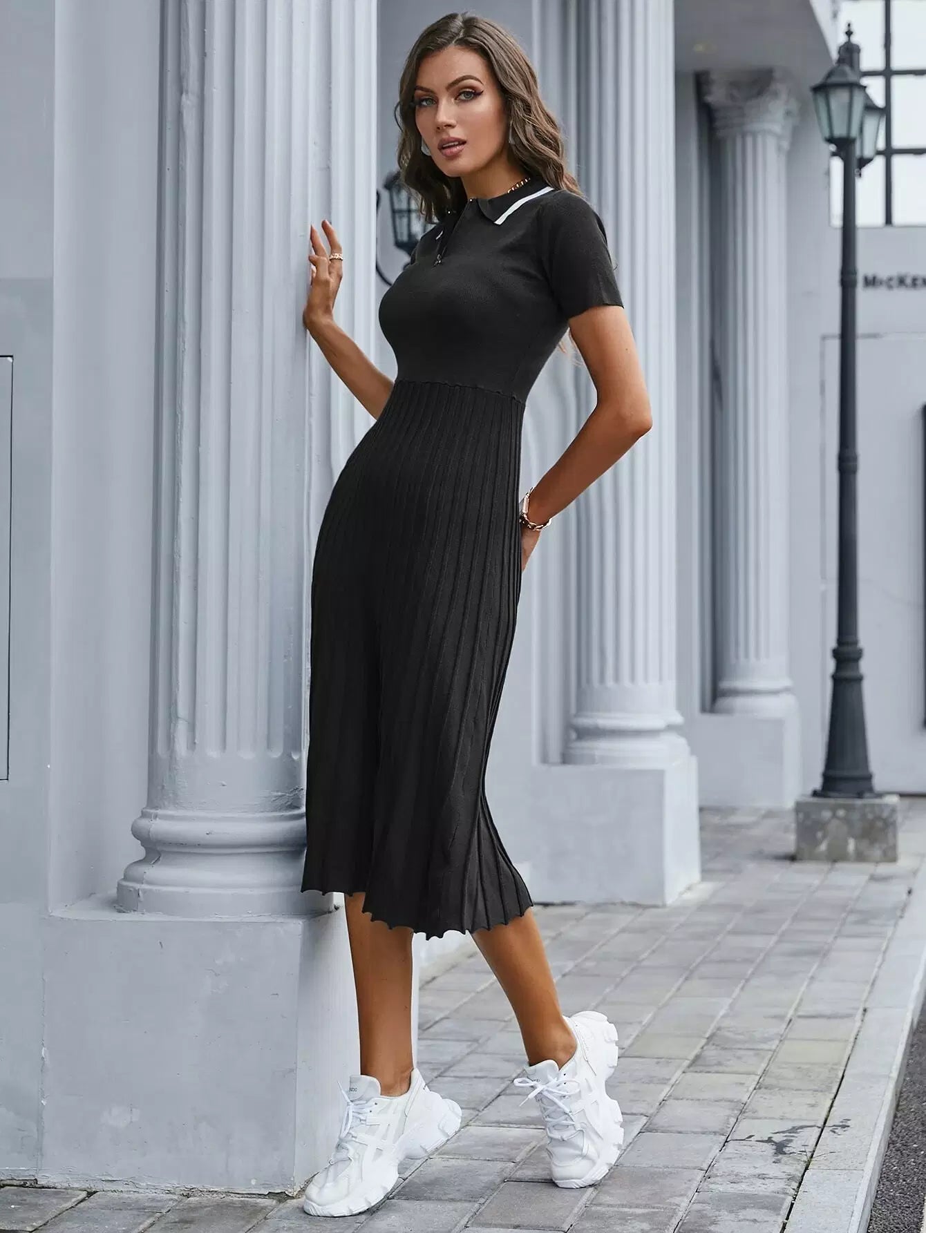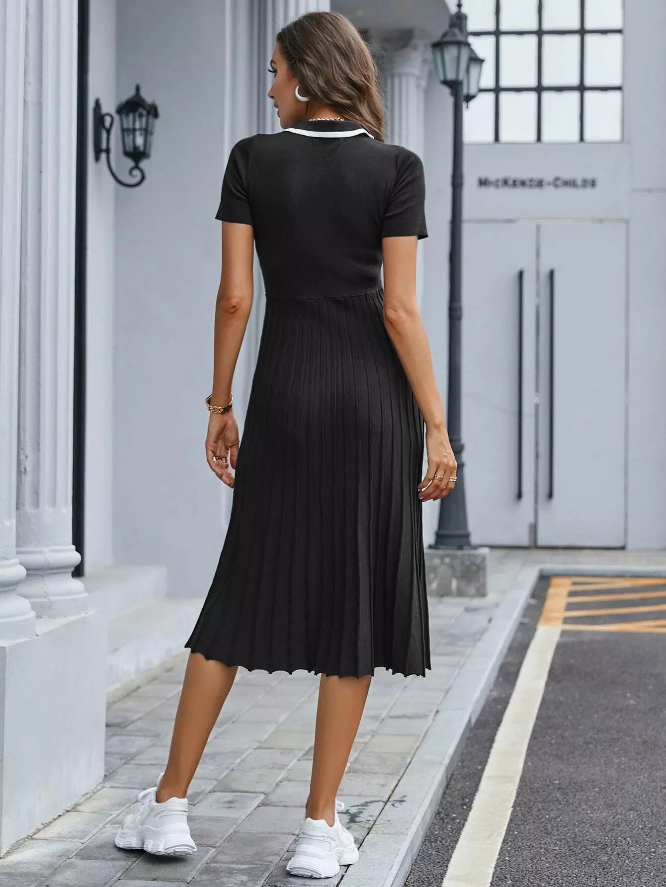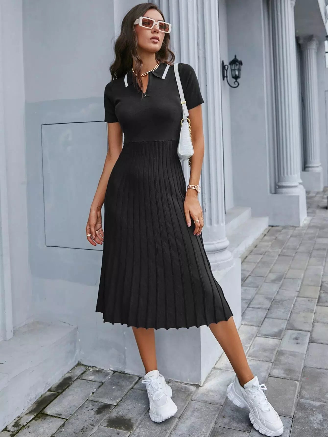 فستان كنزة بحافة مطوية بحواف بلون مغاير