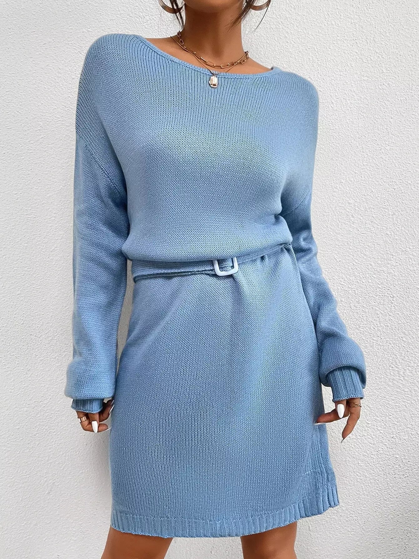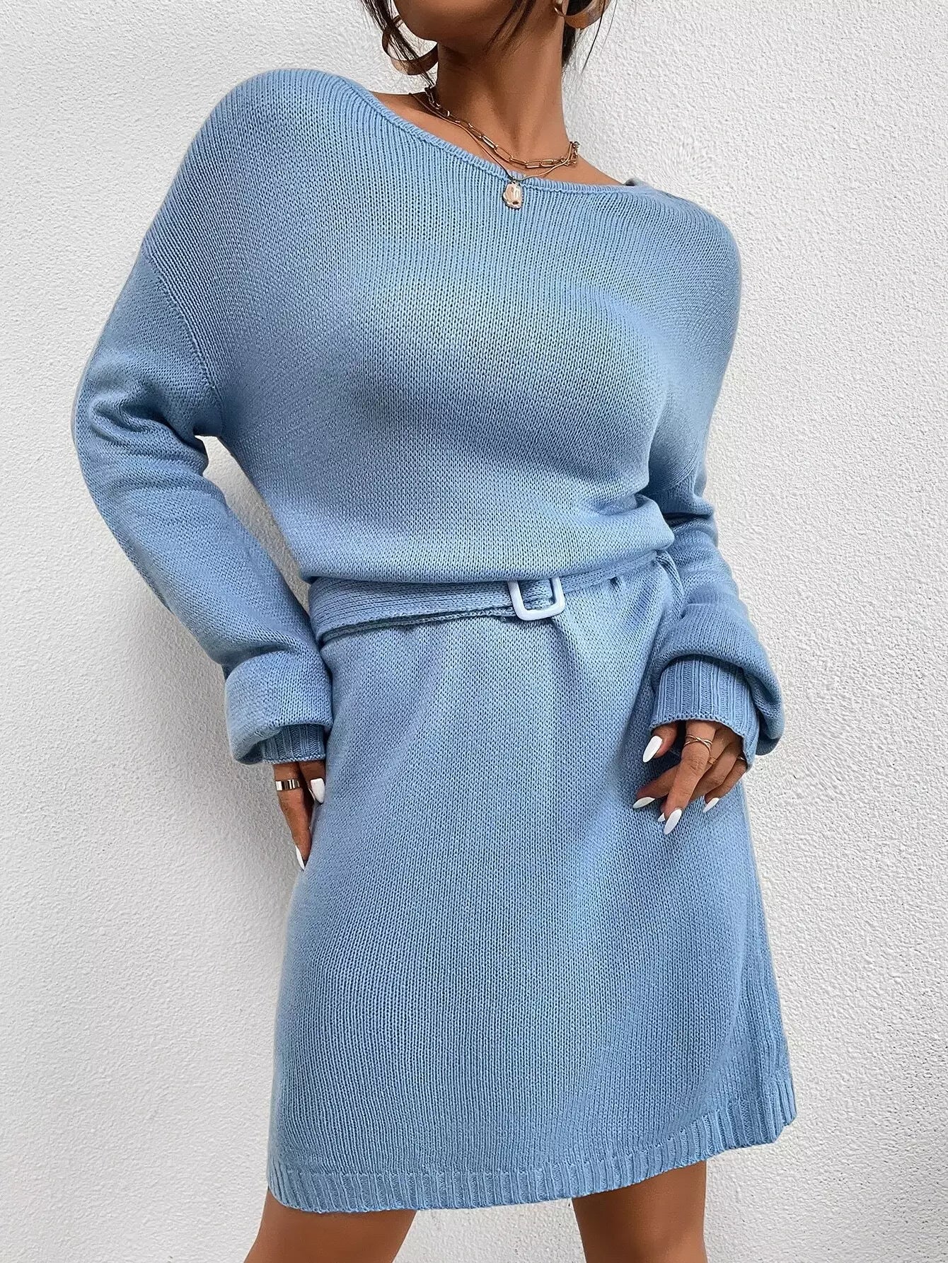 فستان سترة بكتف منسدل بدون حزام