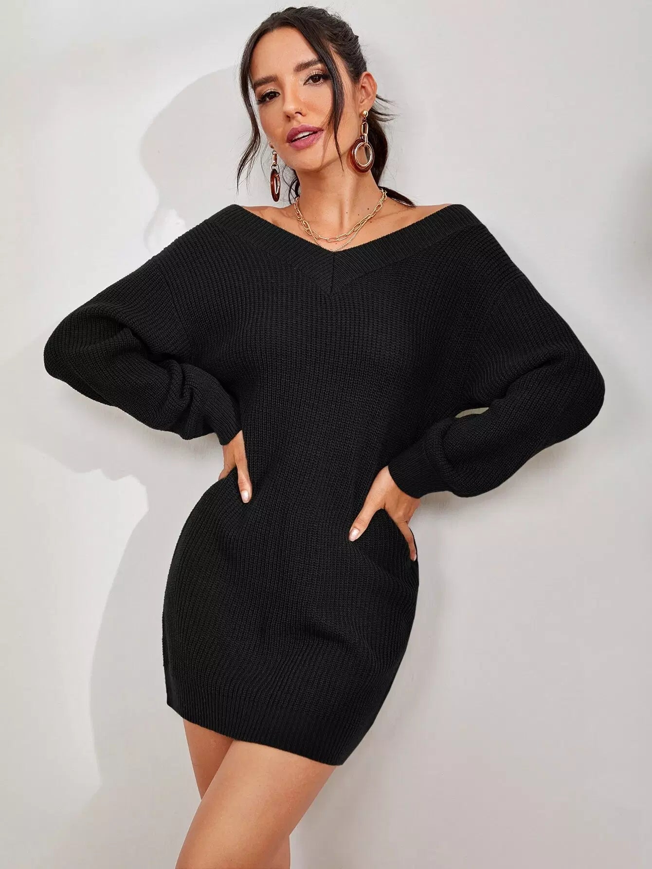فستان سادة منسدل الكتفين سادة