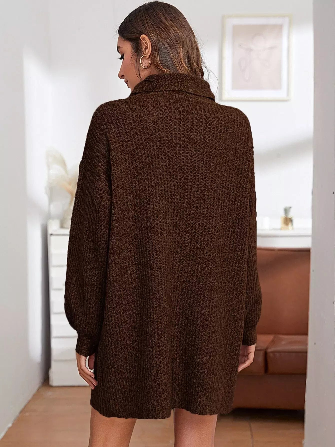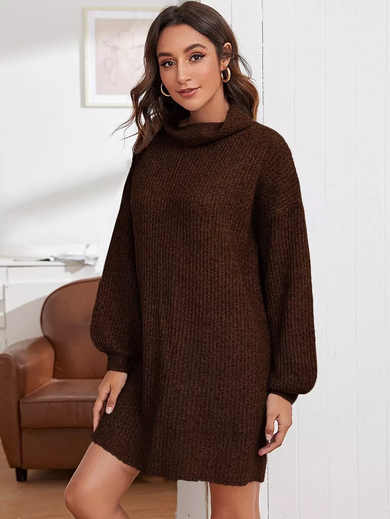 للنساء - فستان سترة بكتف منسدل ورقبة دائرية بدون حزام