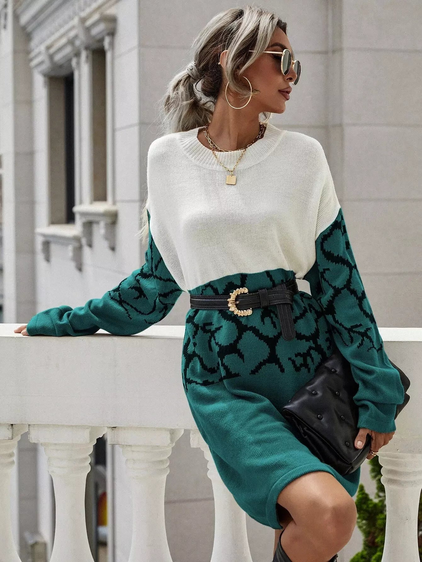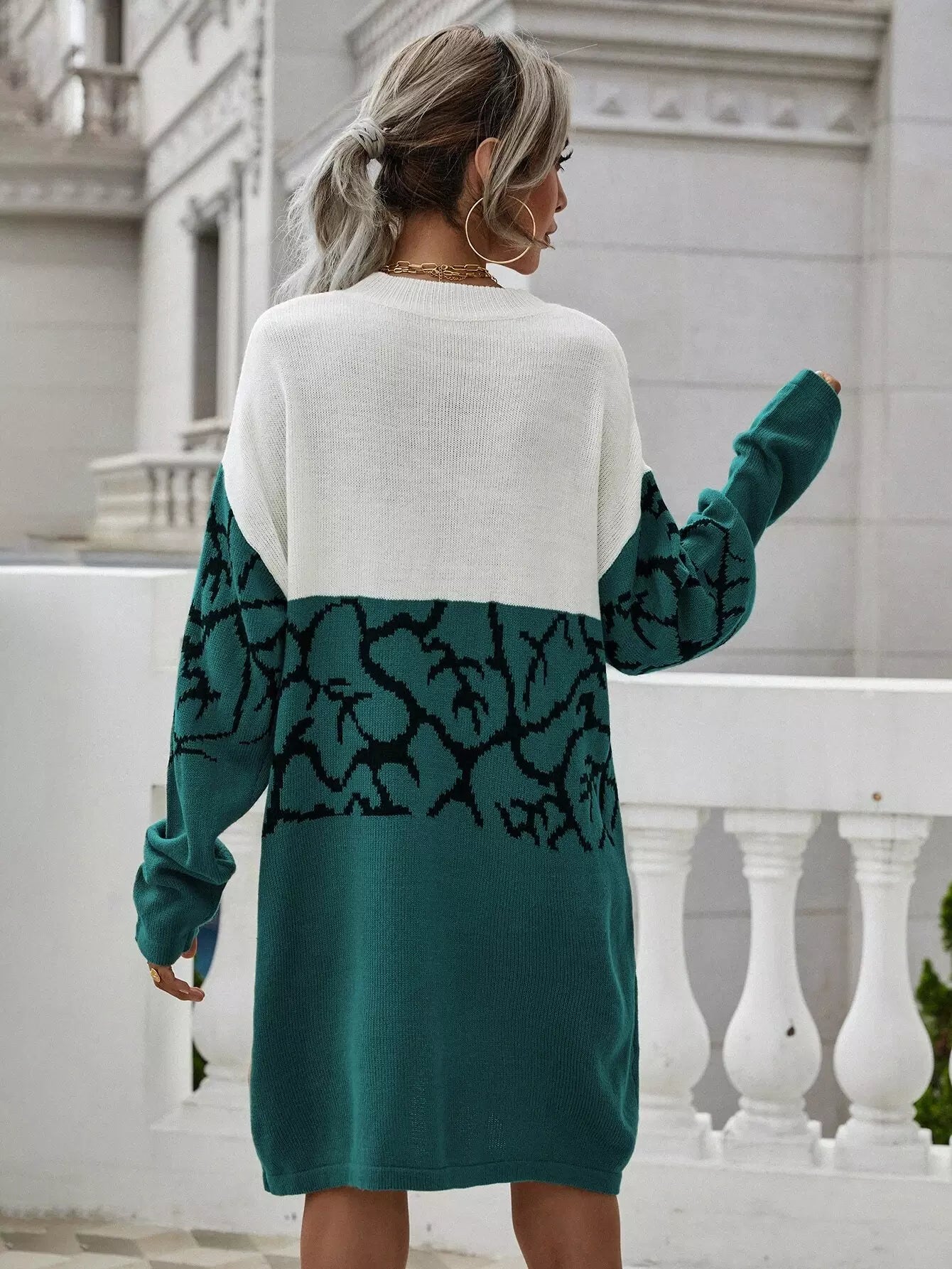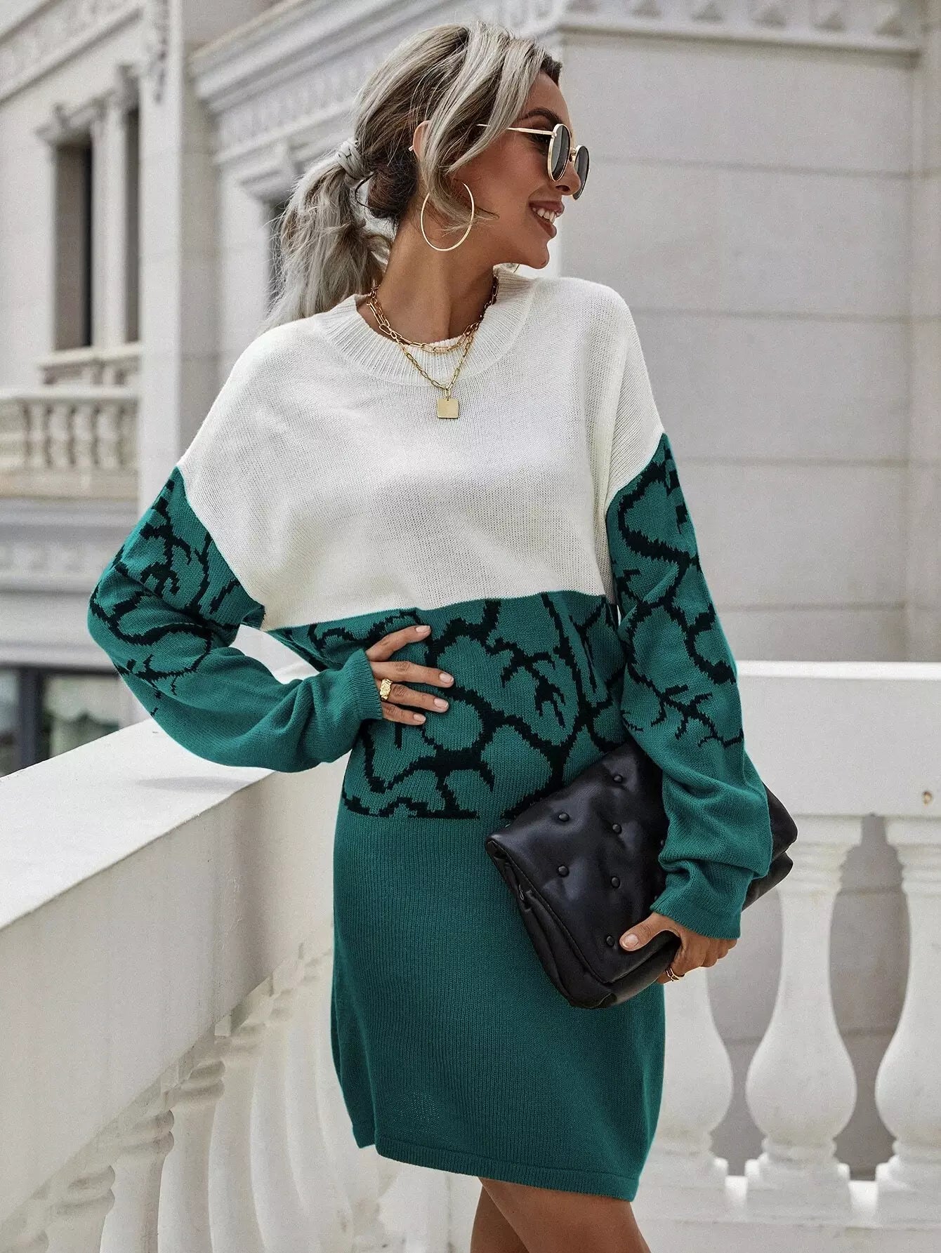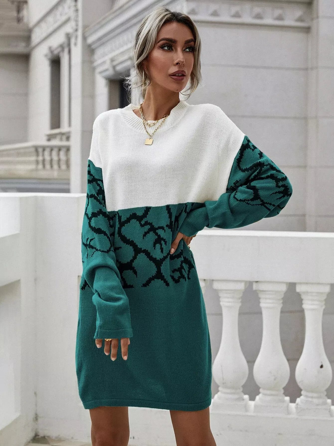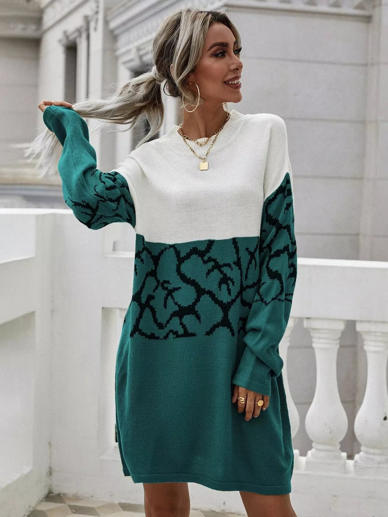 فستان منسدل الكتفين بنقشة جرافيك بدون حزام