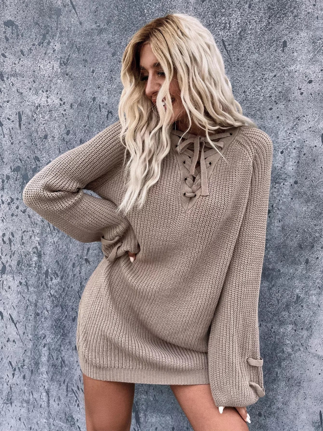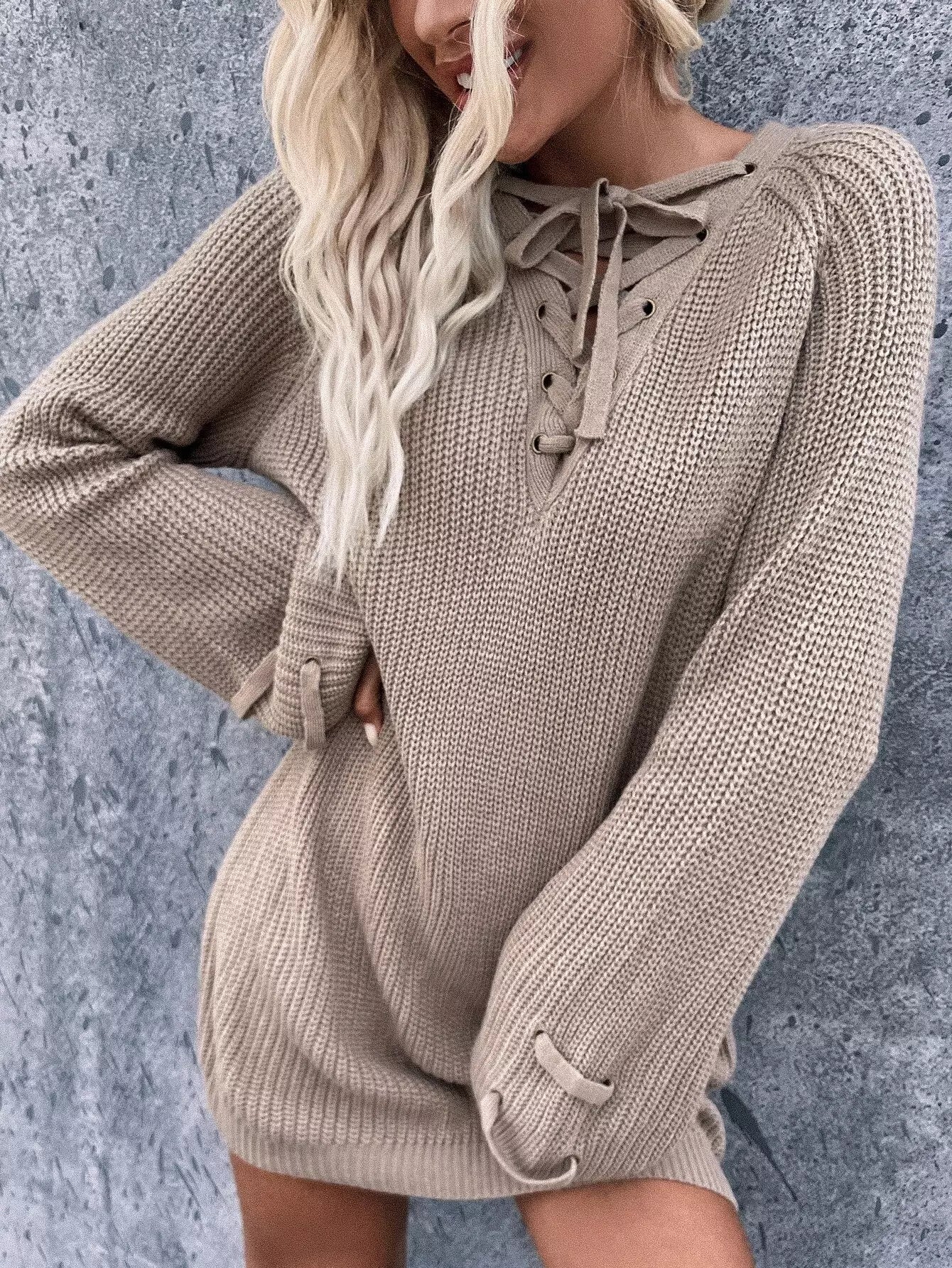 فستان بأكمام من الدانتيل بأربطة بأربطة بأكمام رالان