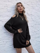 فستان محبوك برقبة عالية بفتحة عنق عالية بفتحة كتف عالية