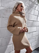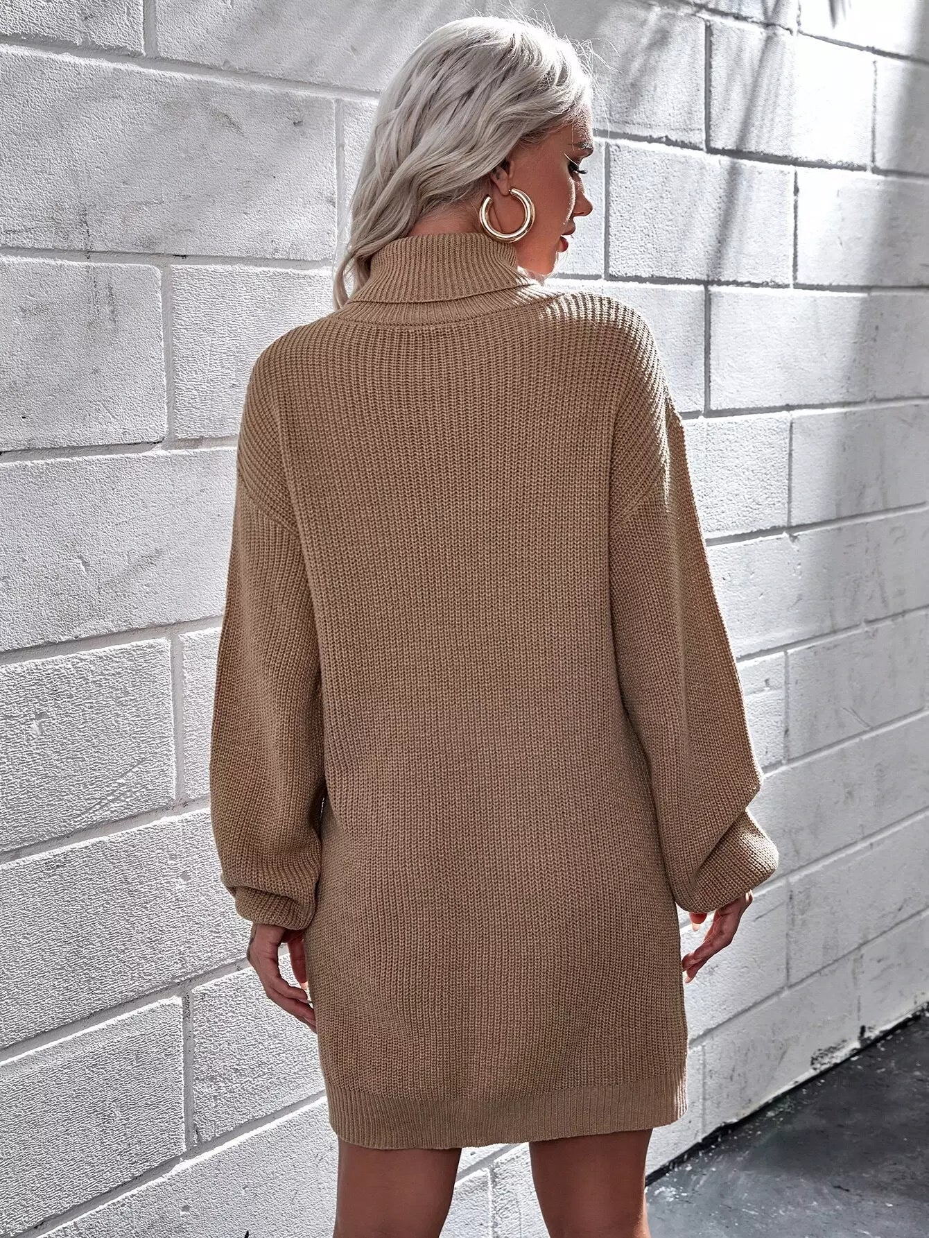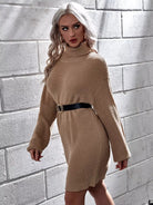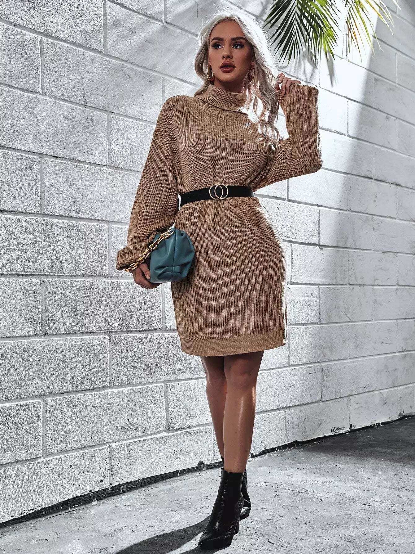 فستان برقبة عالية منسدلة الكتفين بدون حزام