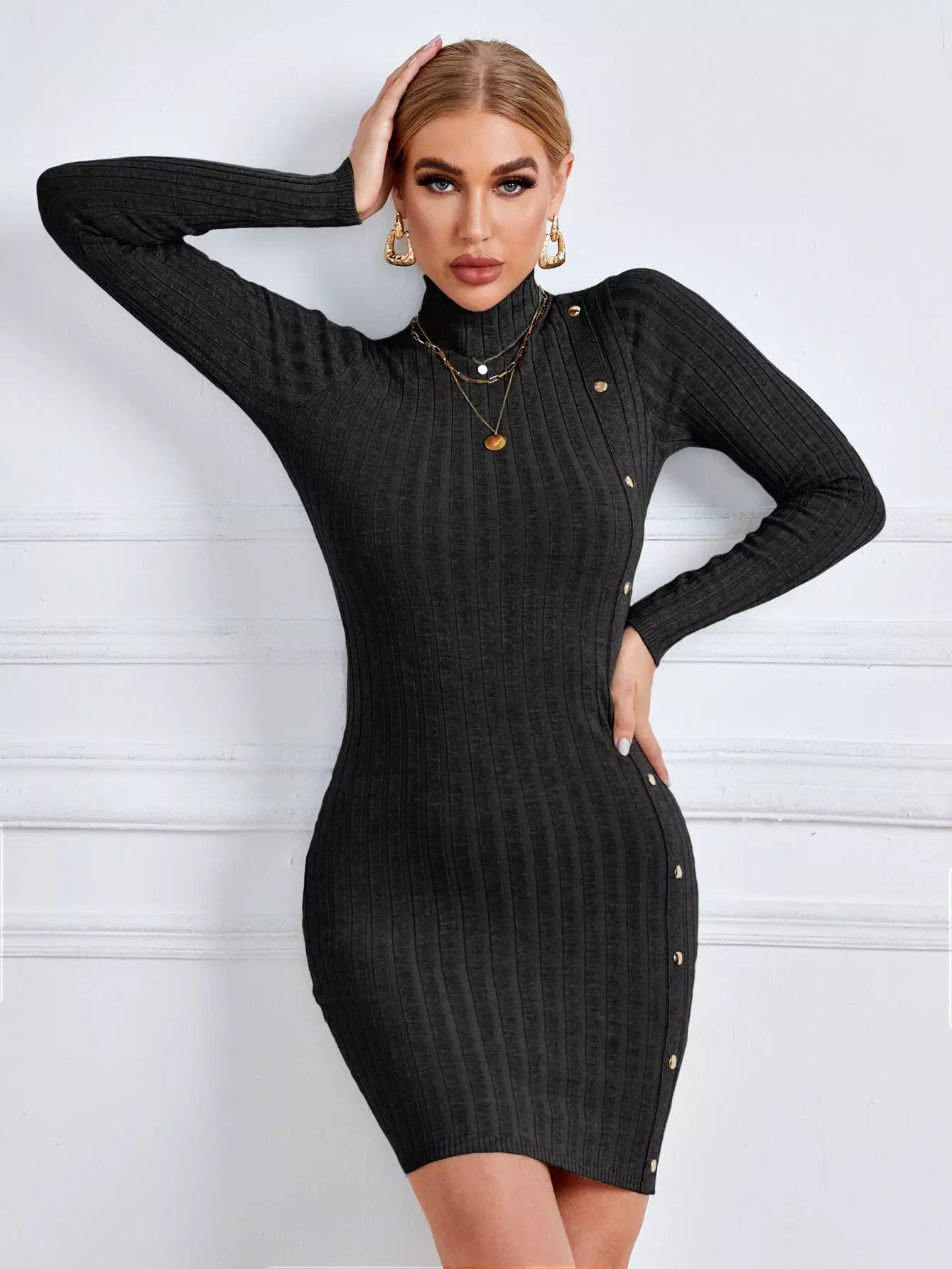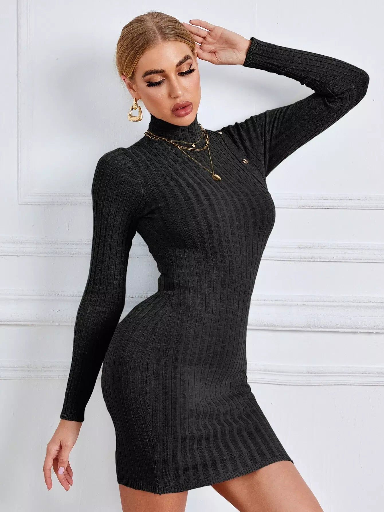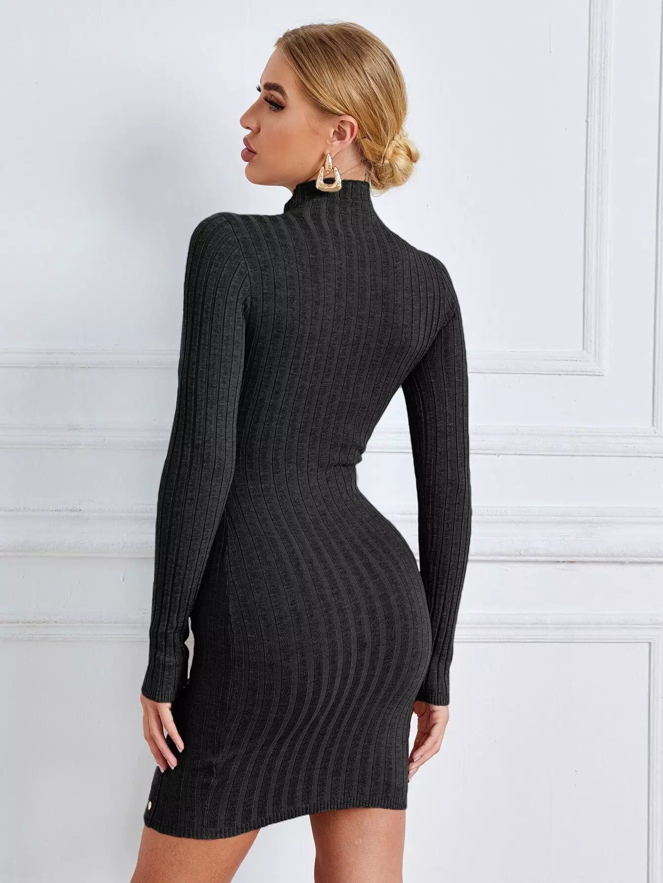 فستان كنزة برقبة عالية مضلعة ومحبوكة ذات صدر واحد