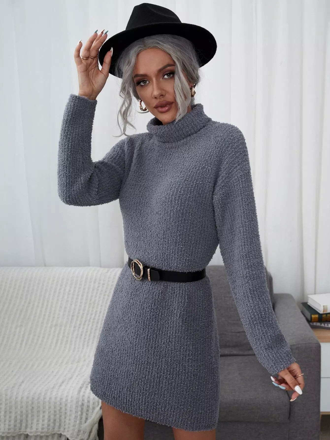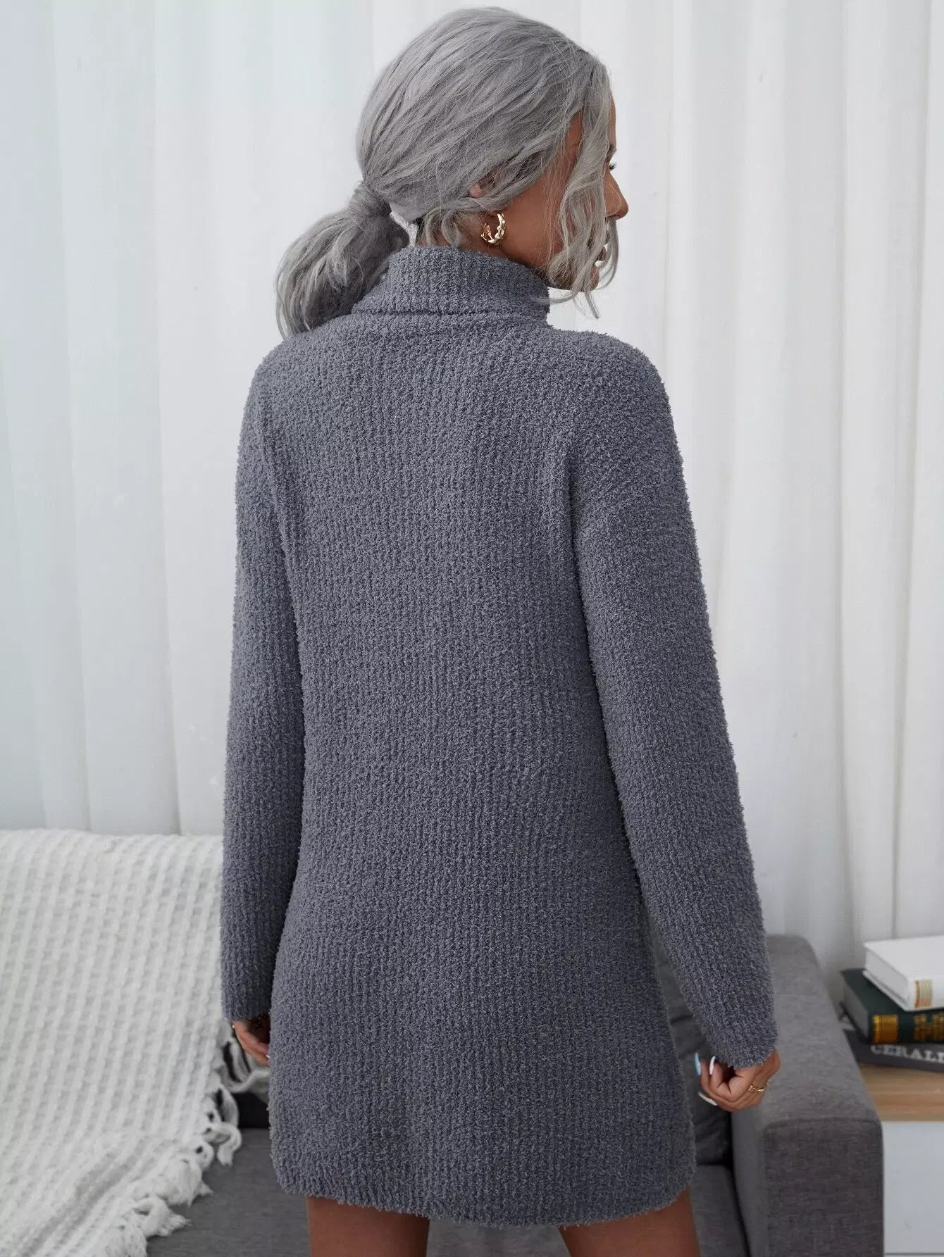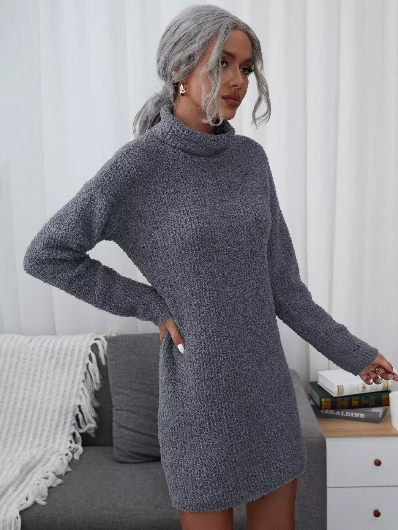 فستان بسترة سادة برقبة عالية السادة