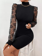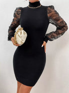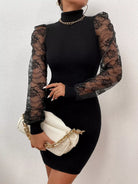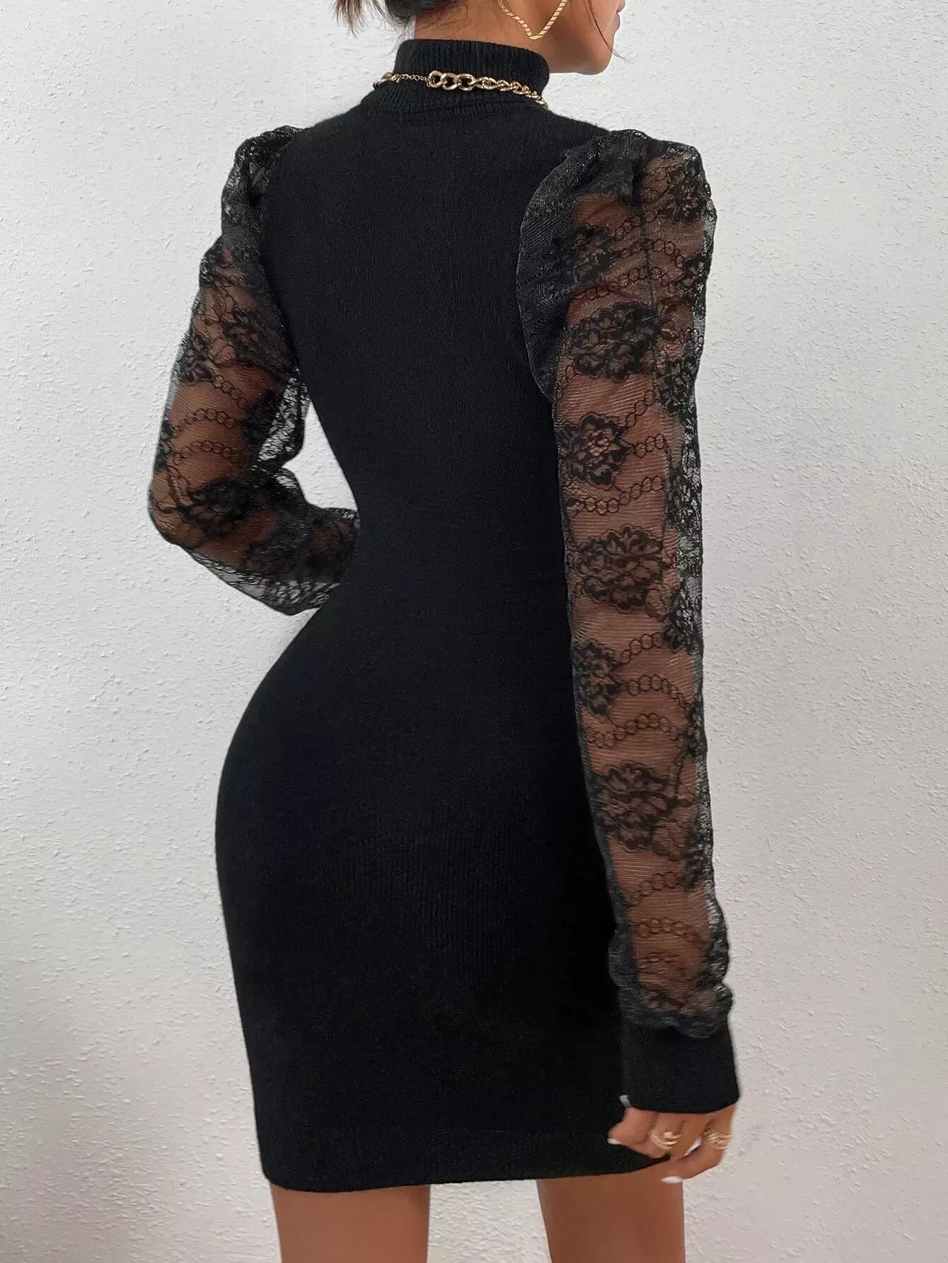 فستان من الدانتيل بأكمام منفوشة بأكمام منفوشة بياقة عالية