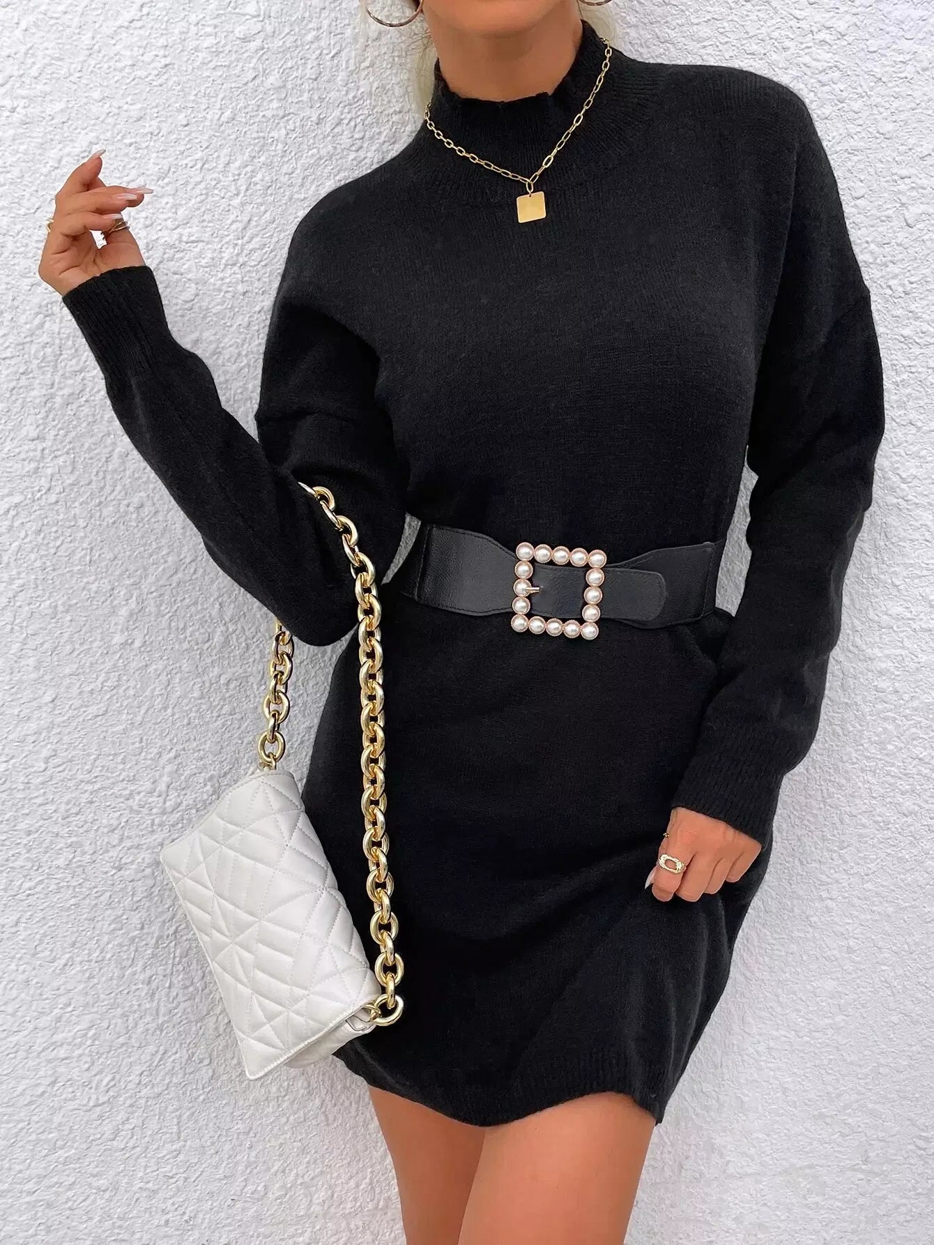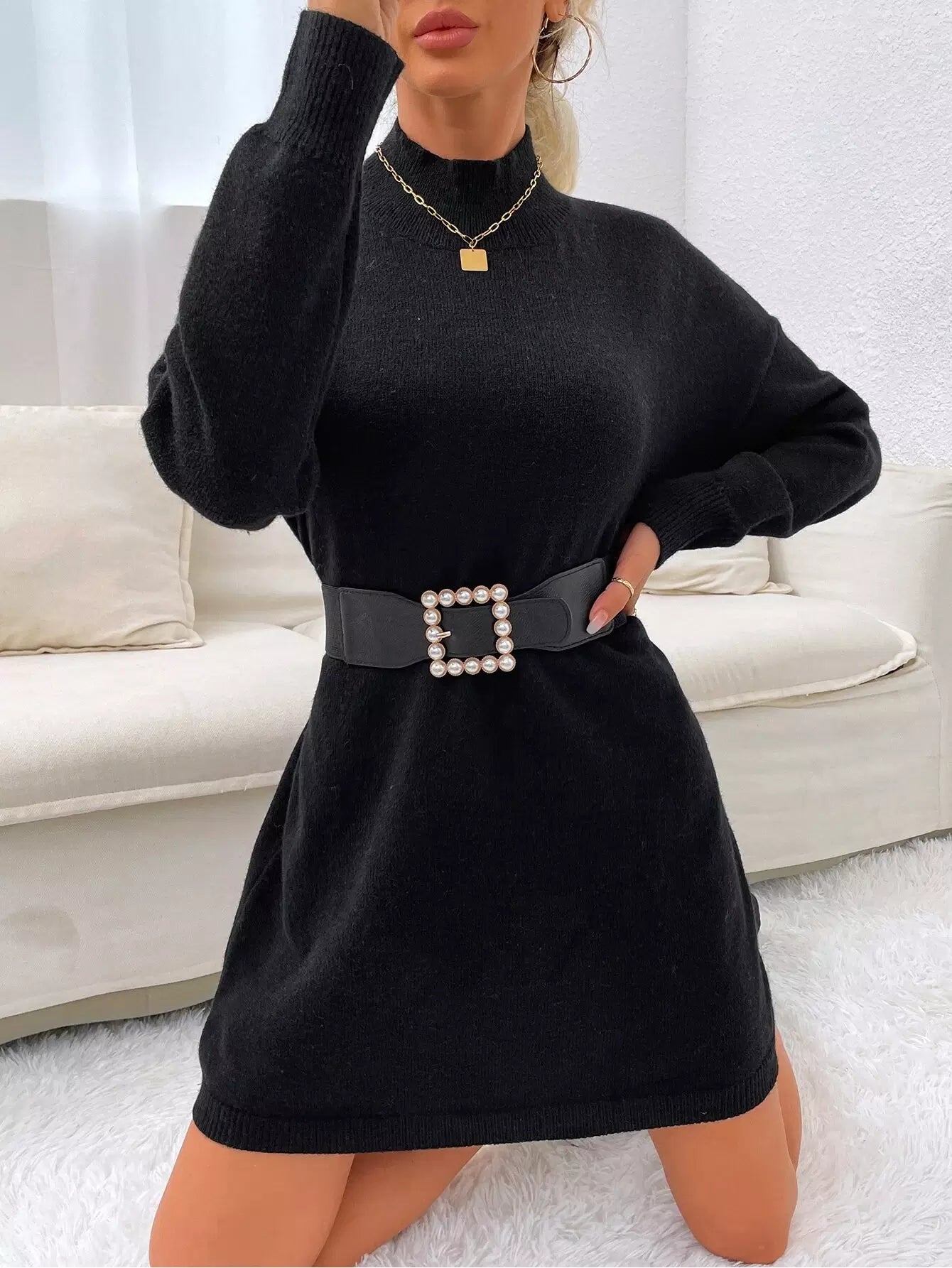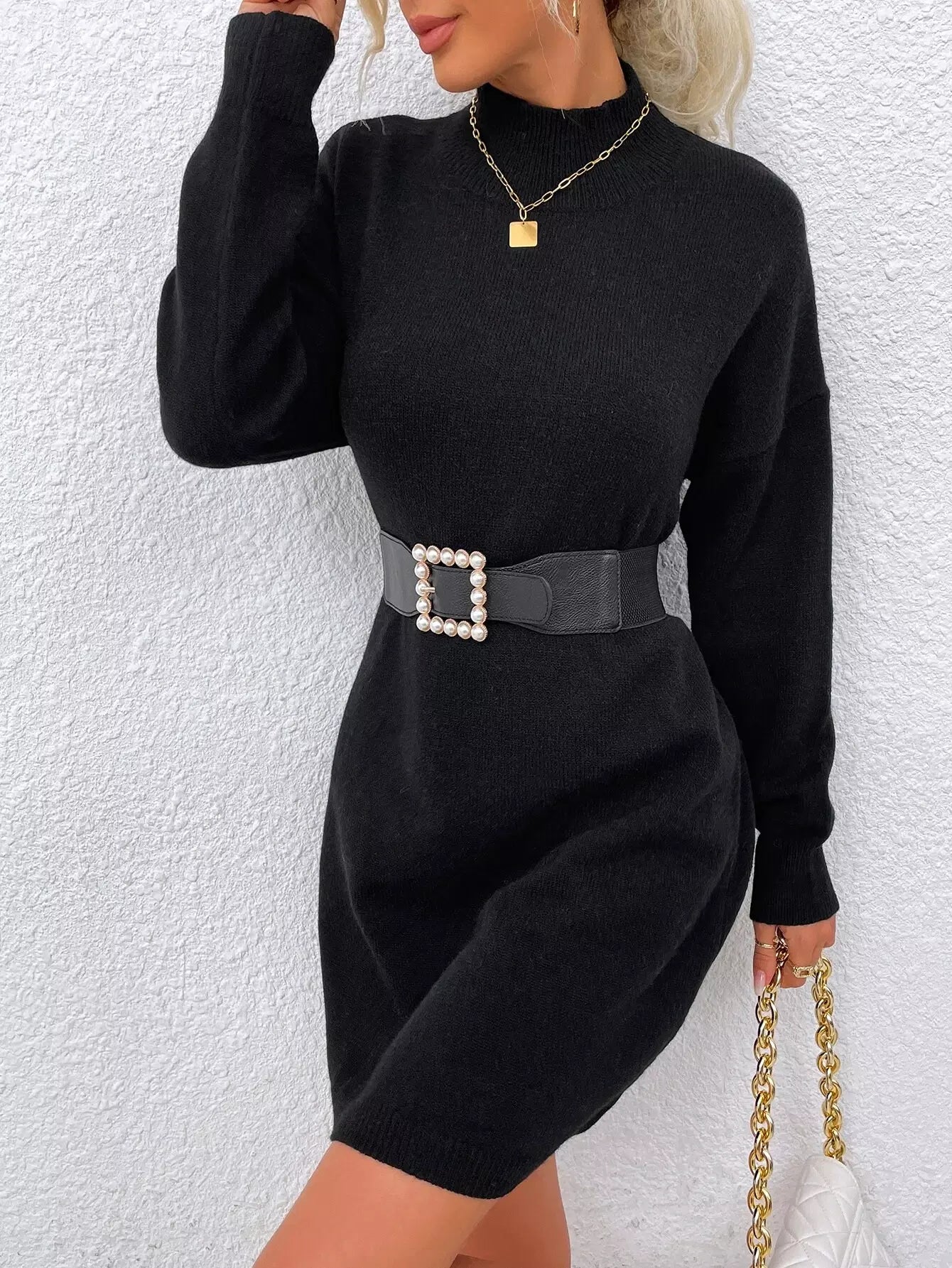 فستان بياقة منسدلة الكتفين برقبة منسدلة بدون حزام