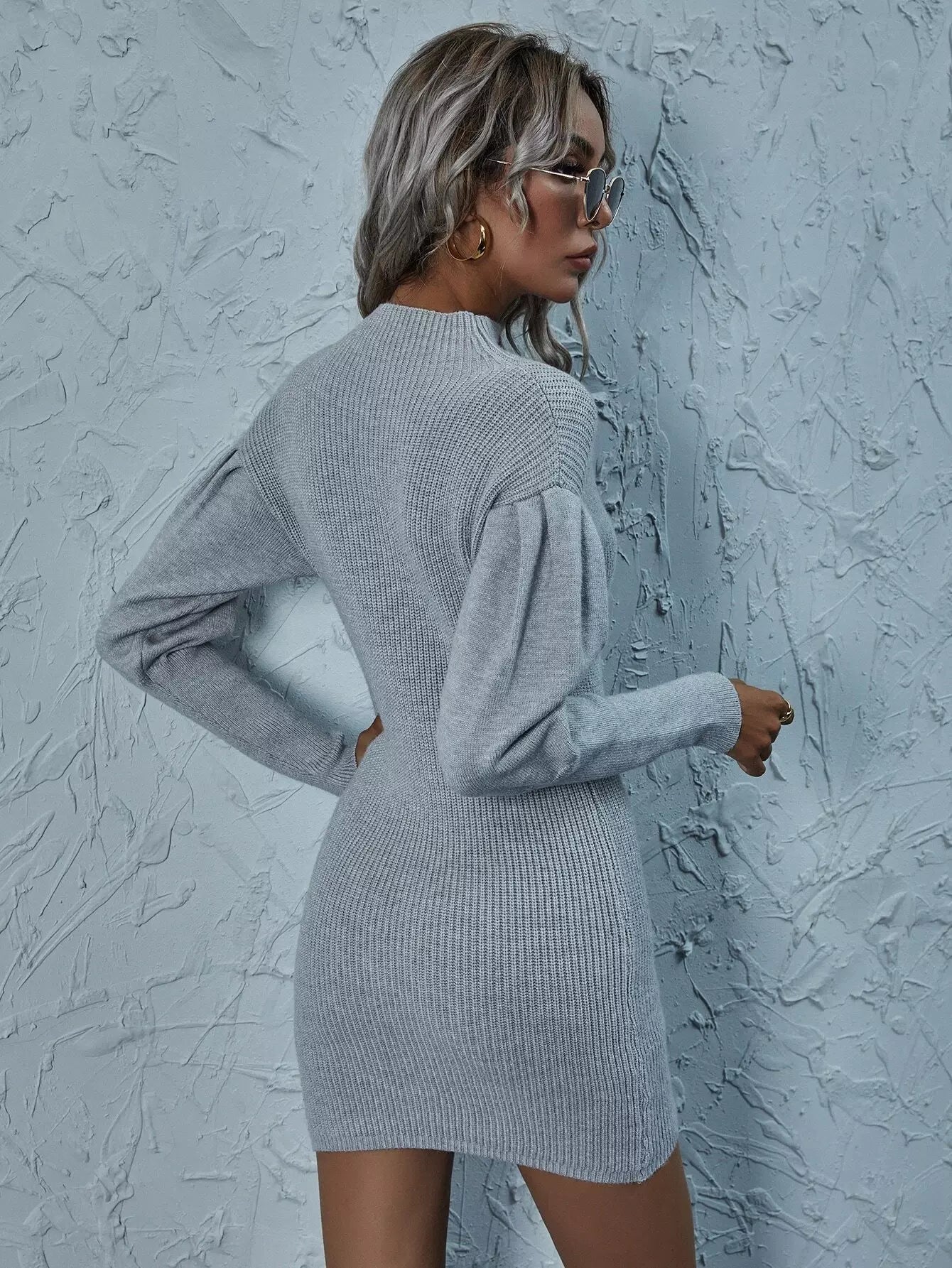 للنساء - فستان سترة بأكمام كبيرة ورقبة وهمية بدون حزام
