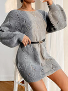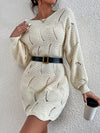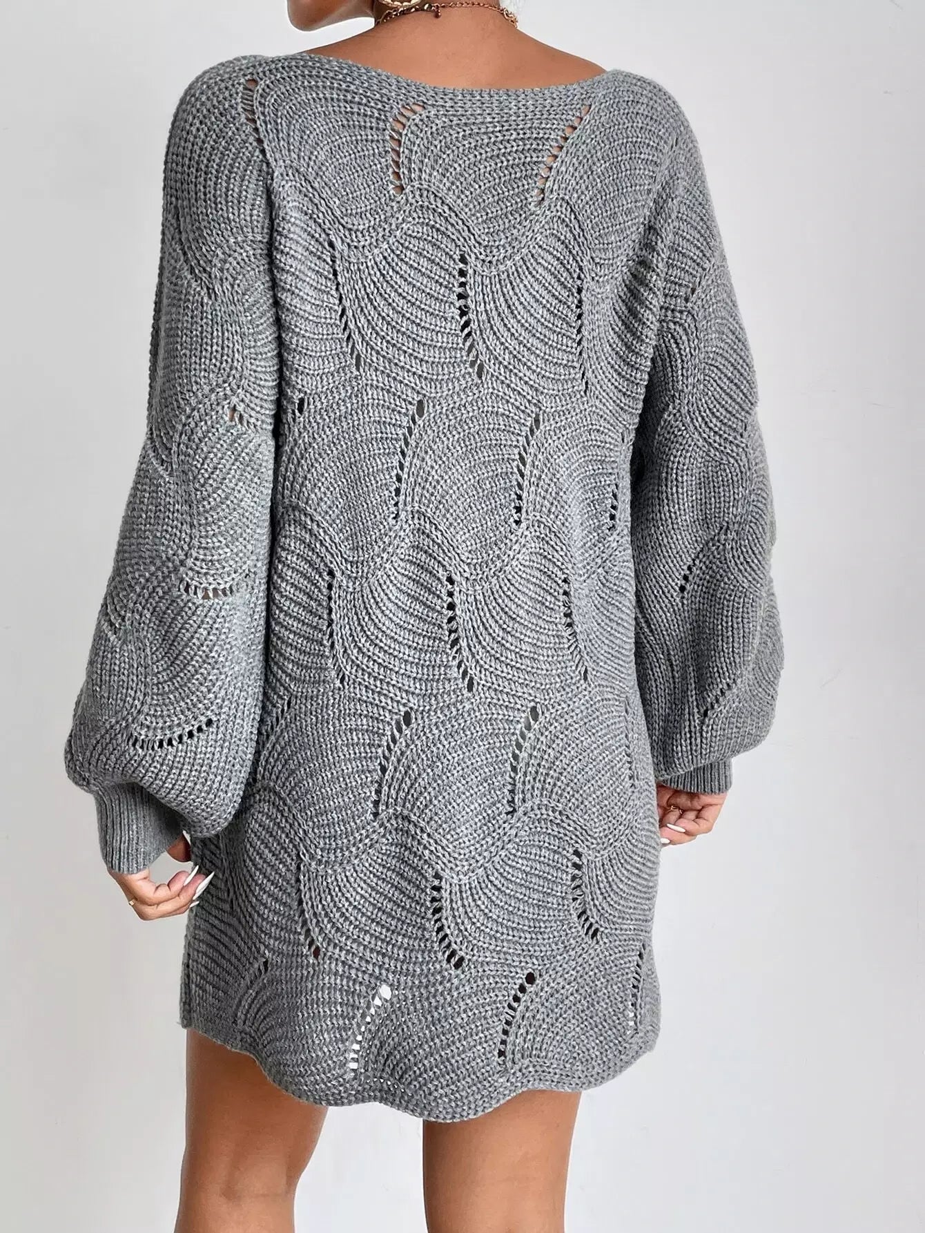 فستان سترة منسوج بأكمام واسعة من Pointelle بدون حزام