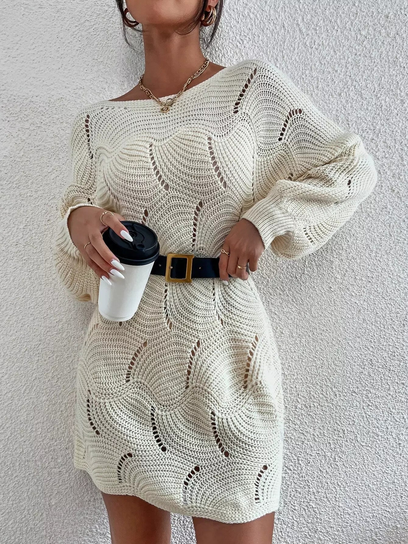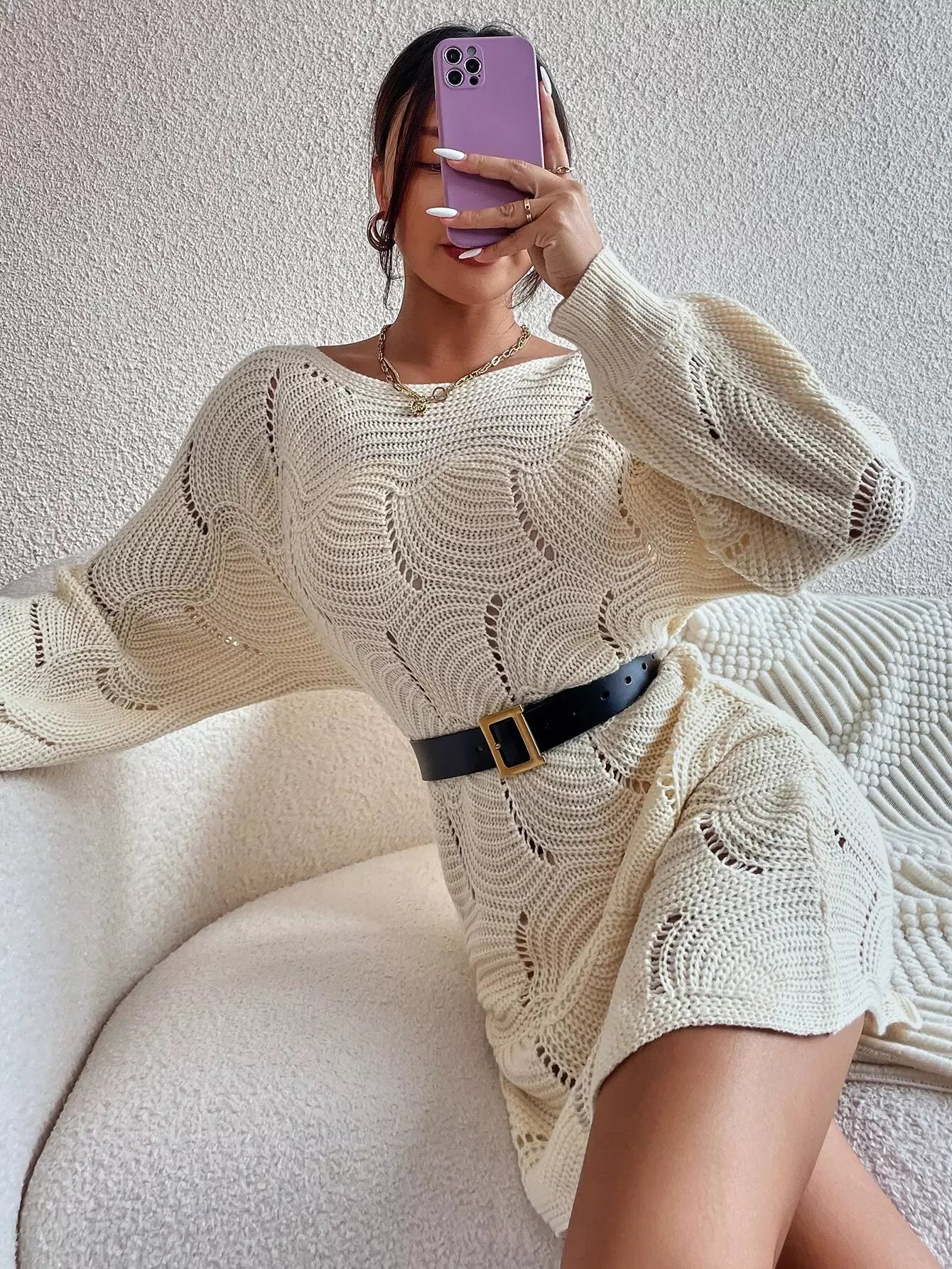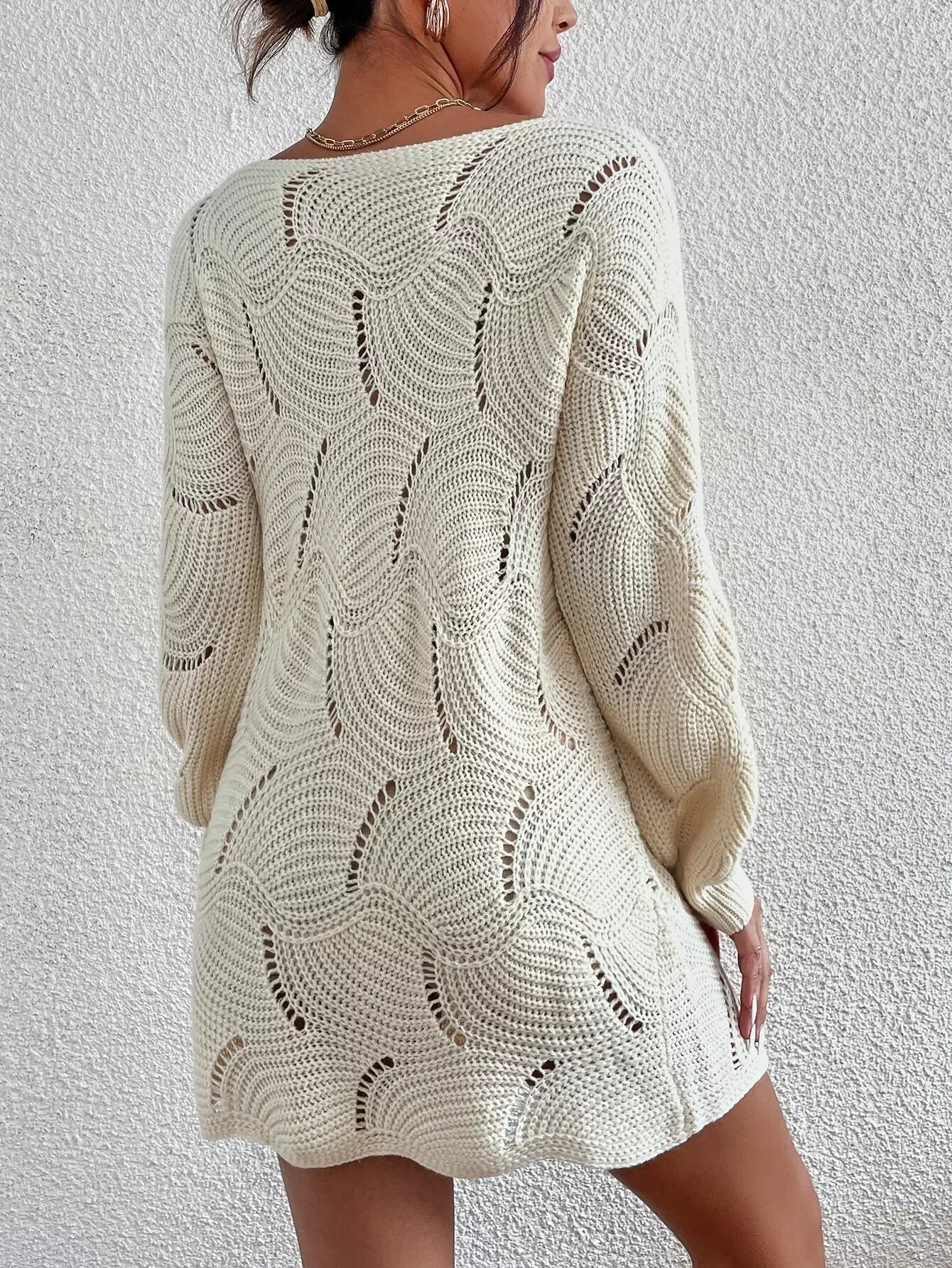 فستان بأكمام بوانتيل متماسكة بأكمام فانوسية بدون حزام