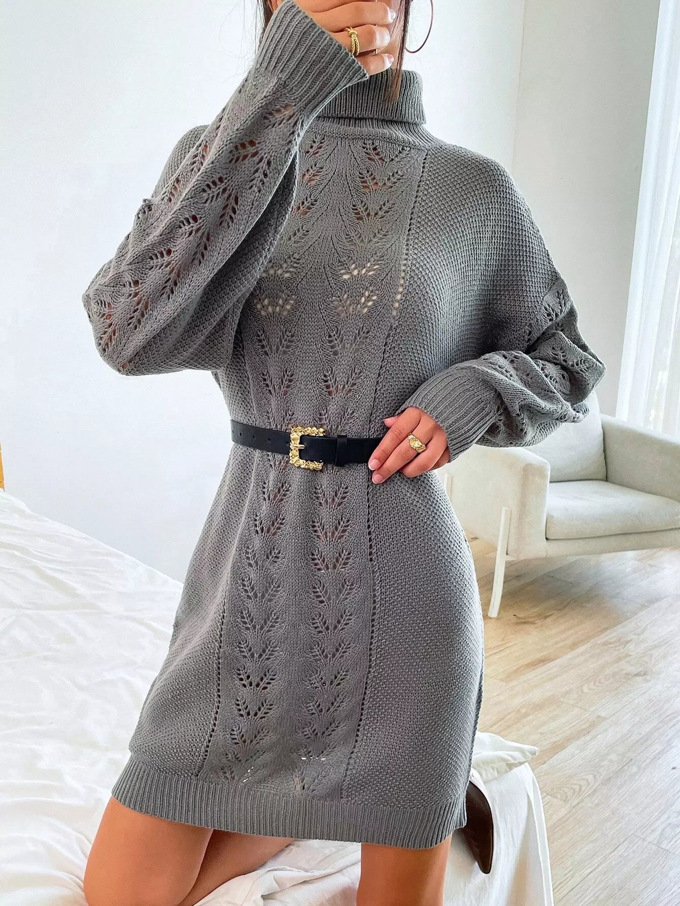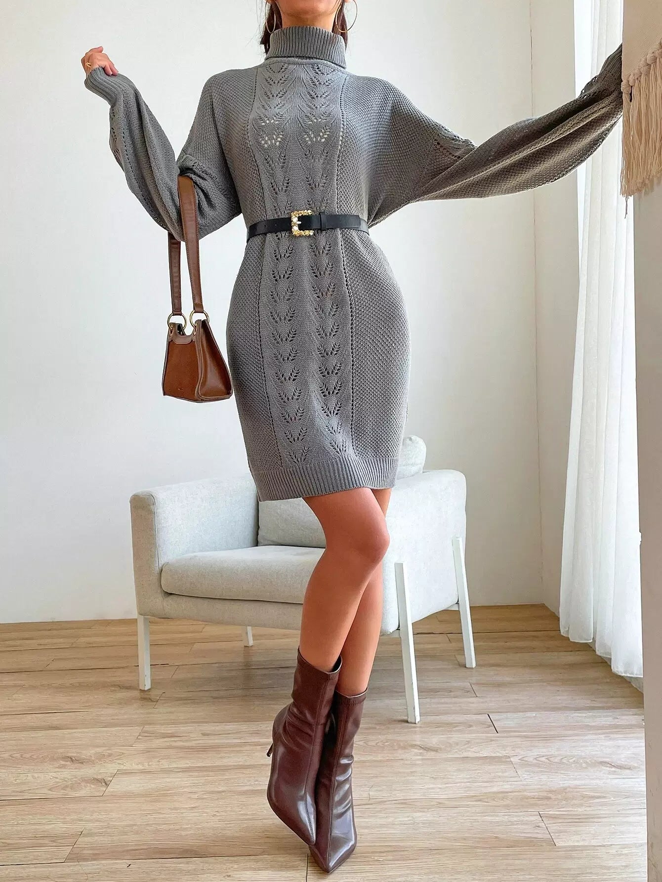 فستان منسدل الكتف بياقة متماسكة منسدلة منسدلة الكتف بدون حزام