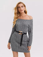 فستان بأكمام راجلان بأكمام كابل محبوكة بدون حزام