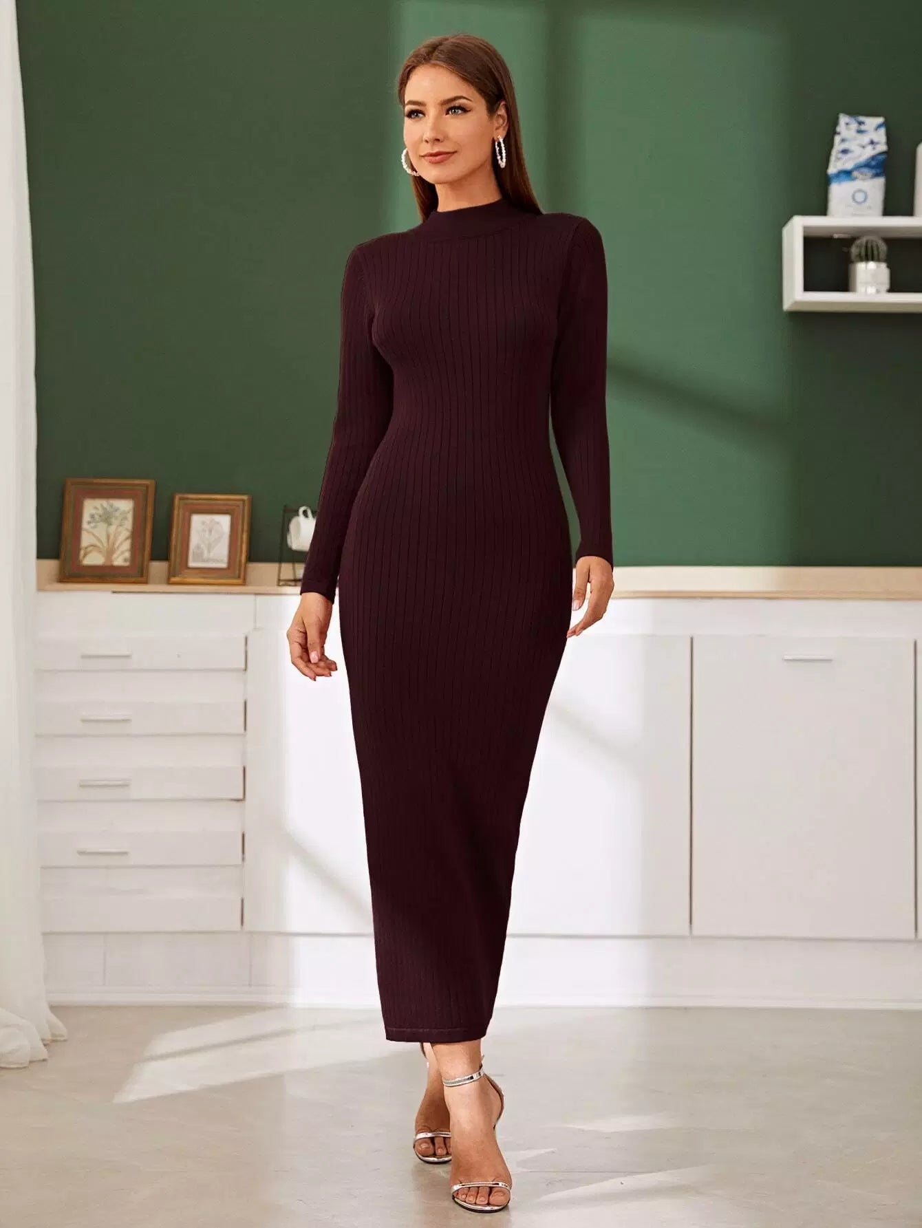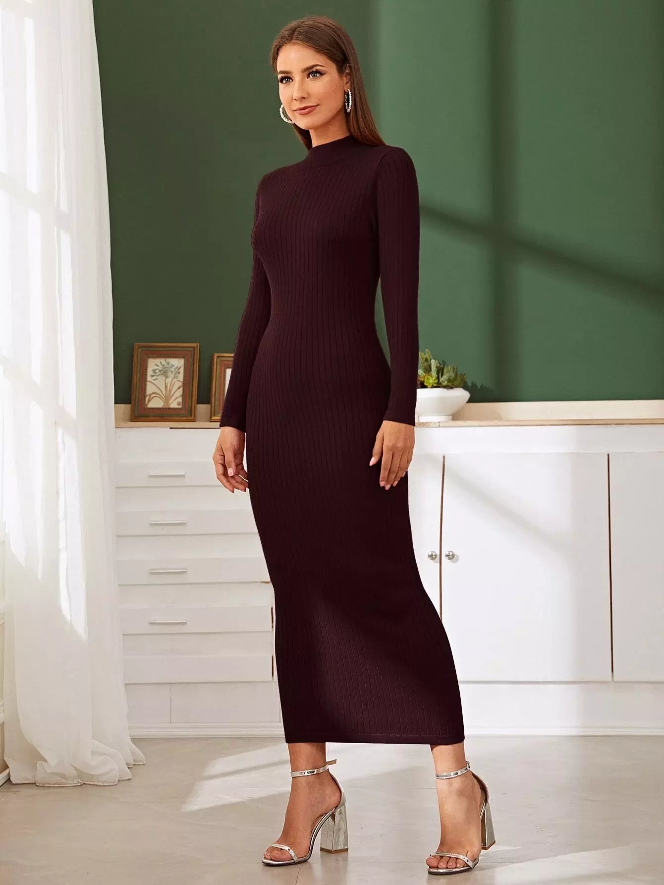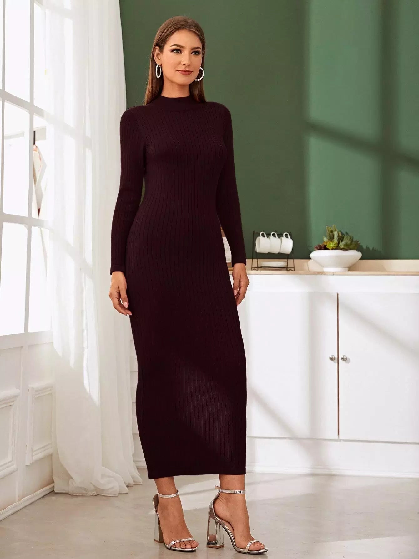 فستان كنزة صوفية محبوكة مضلعة مضلعة