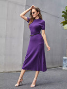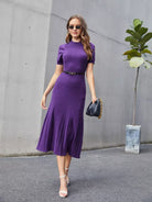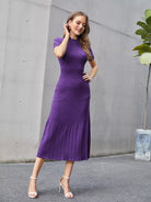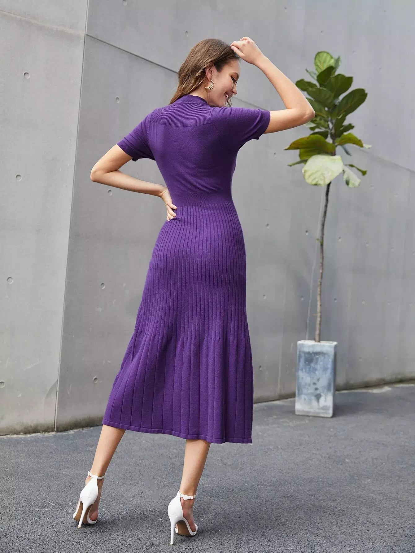 فستان بسترة برقبة مضلعة محبوكة برقبة مستقيمة بدون حزام