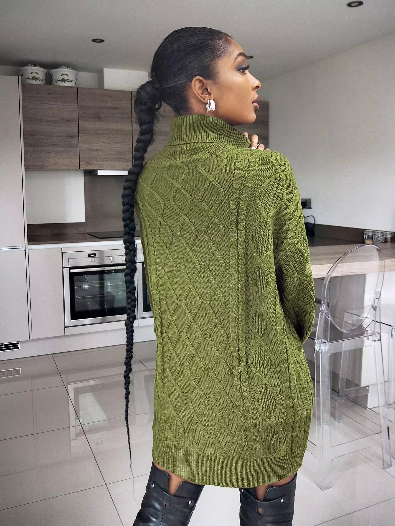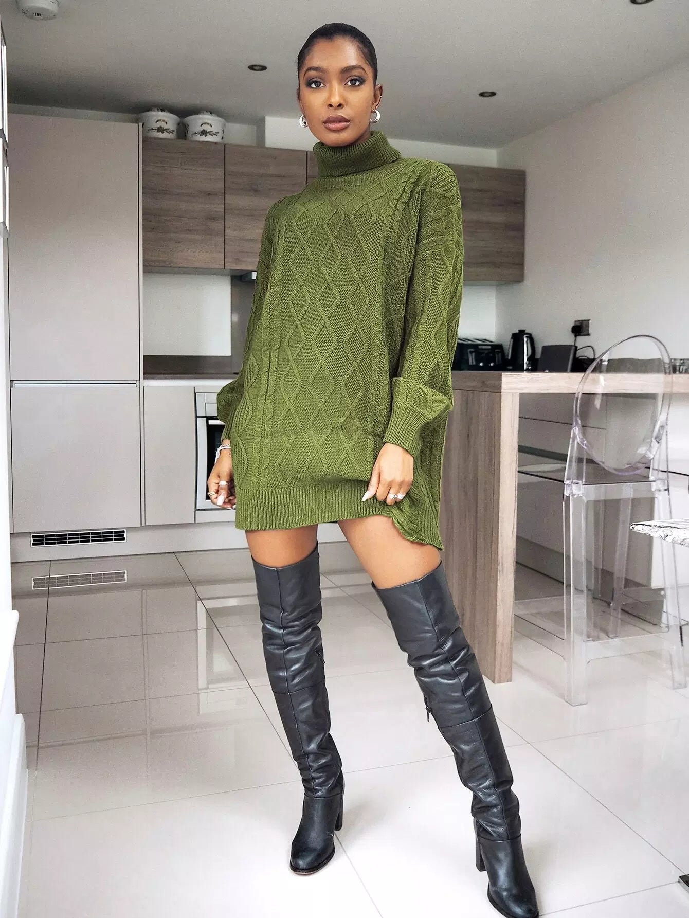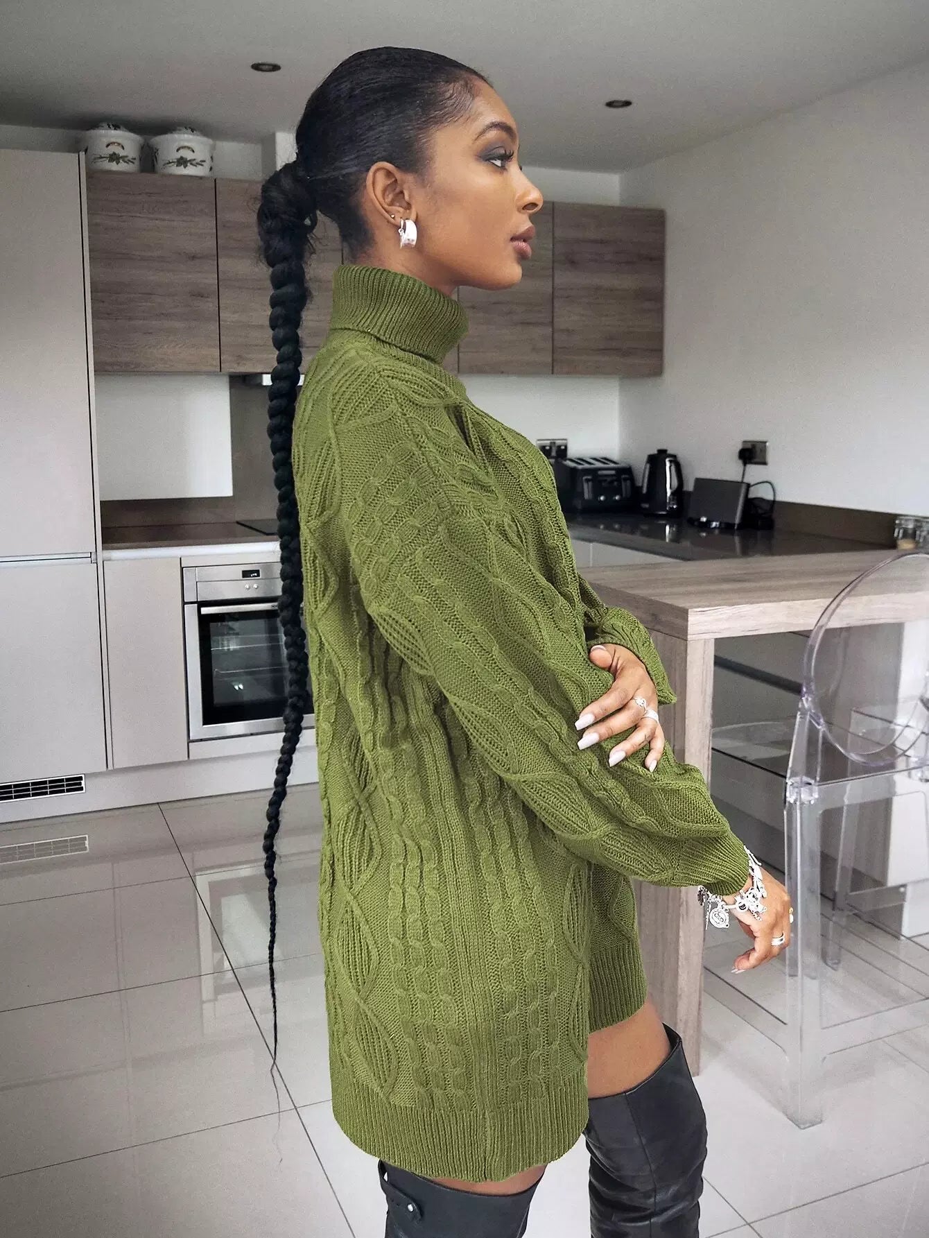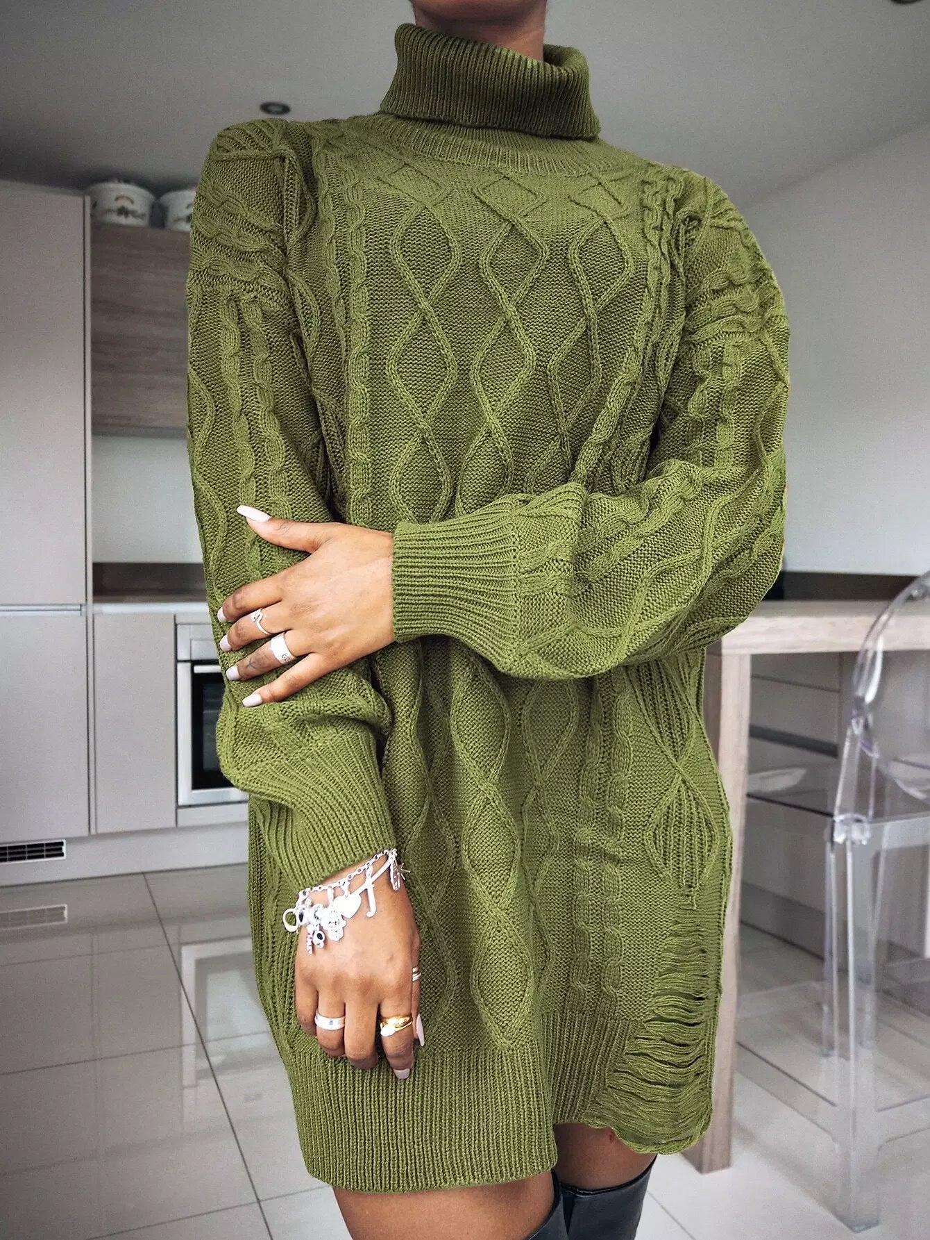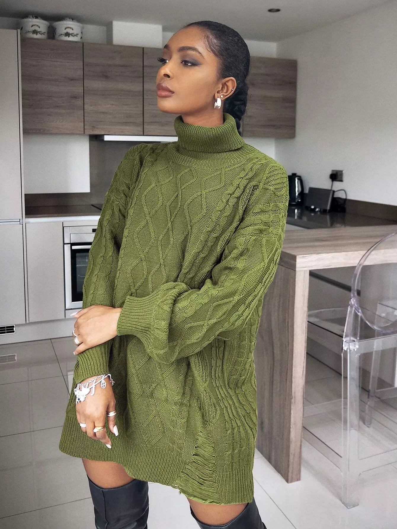 كنزة برقبة ملفوفة منسدلة الكتفين ذات أكتاف كبلات متماسكة طويلة