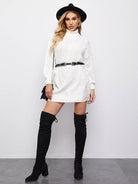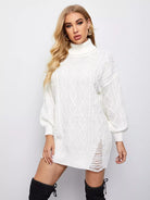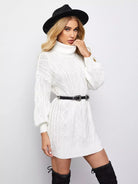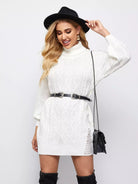 كنزة برقبة ملفوفة منسدلة الكتفين ذات أكتاف كبلات متماسكة طويلة