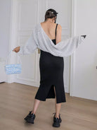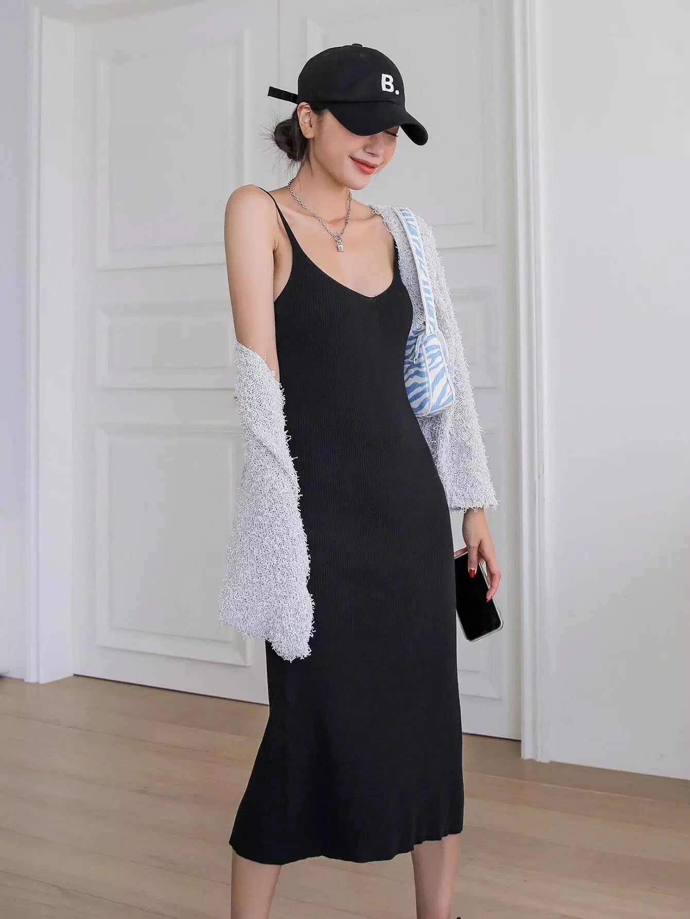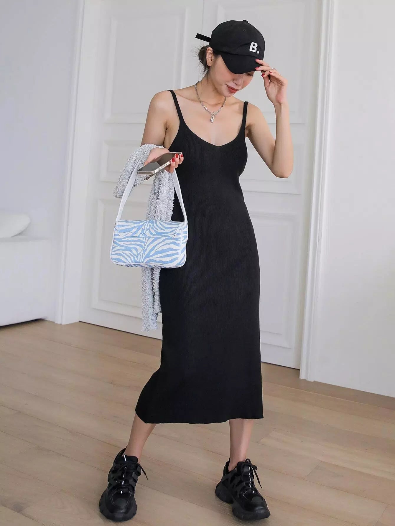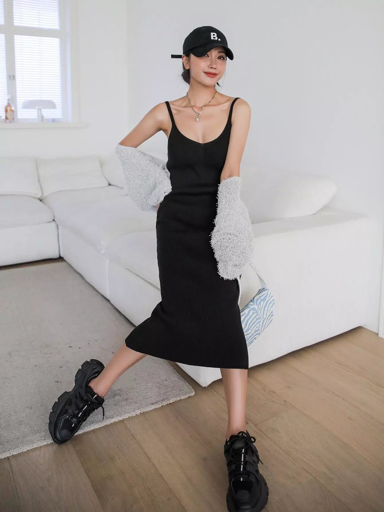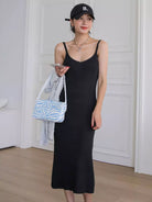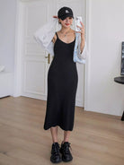 فستان سويت شيرت سادة بدون ظهر ومضلع