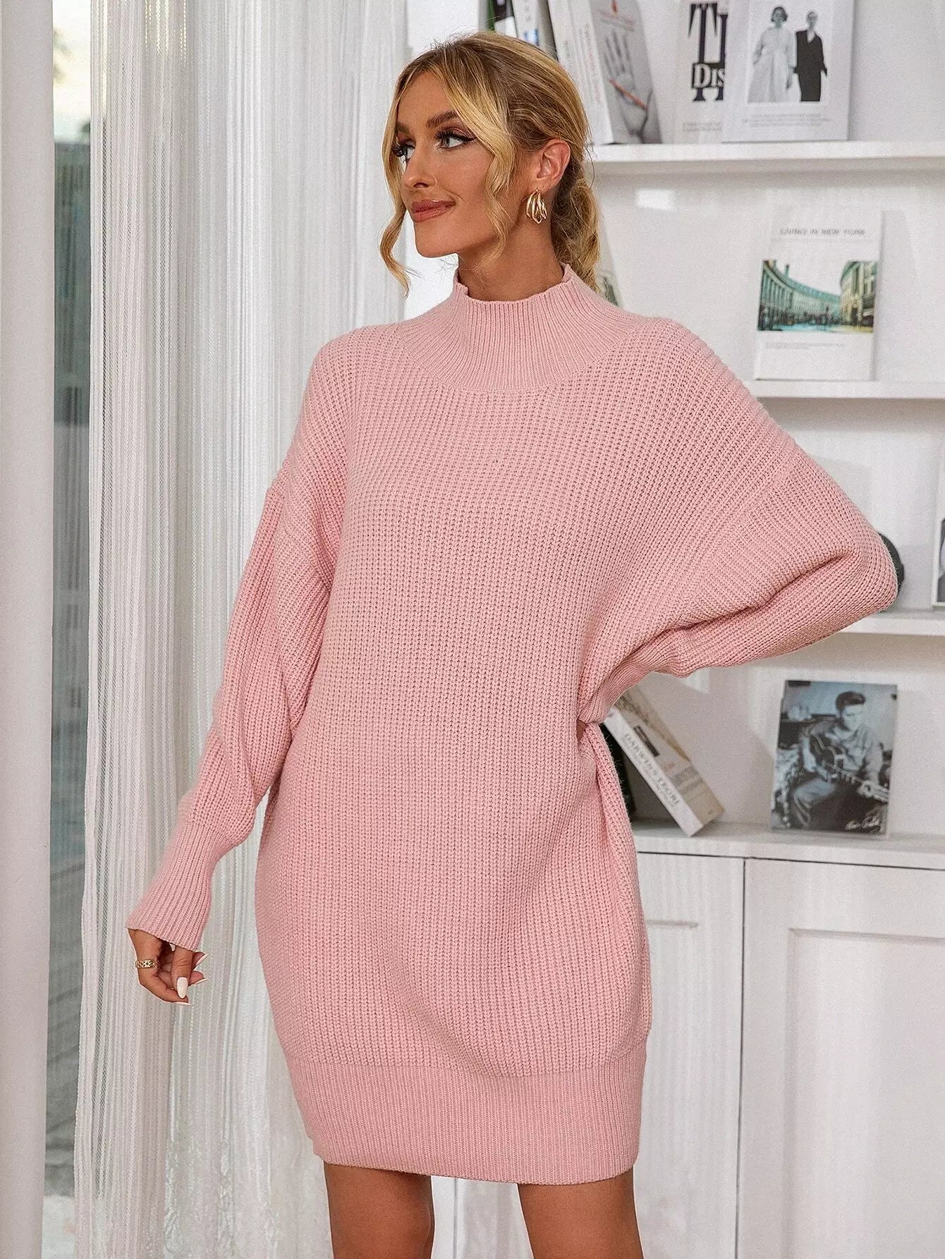 فستان سويت شيرت سادة بأكمام خفاش وياقة دائرية بدون حزام