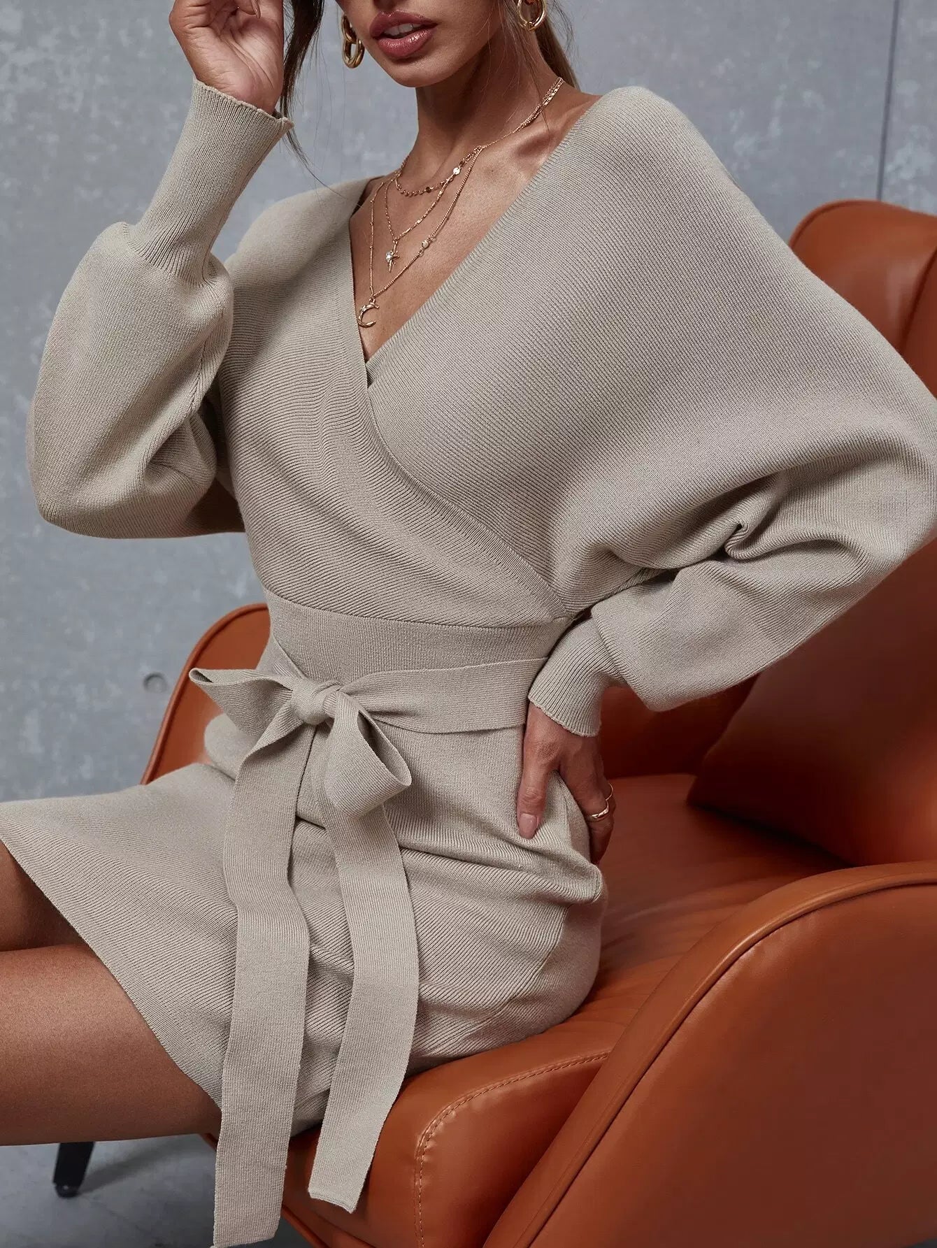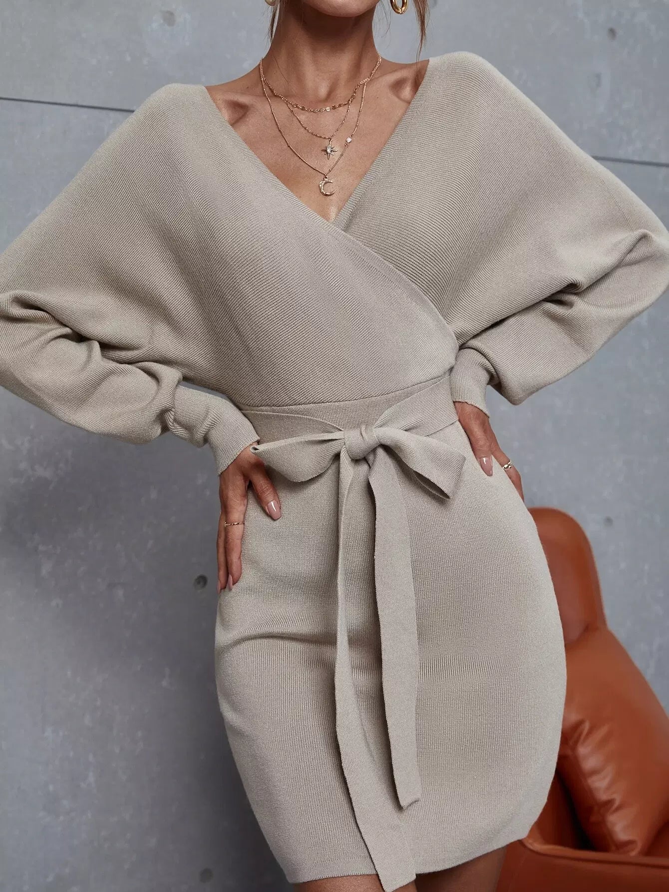 فستان بأكمام باتوينج سادة بأكمام باتوينج
