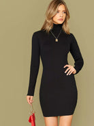 فستان سترة سادة ضيقة سادة بدون قلادة