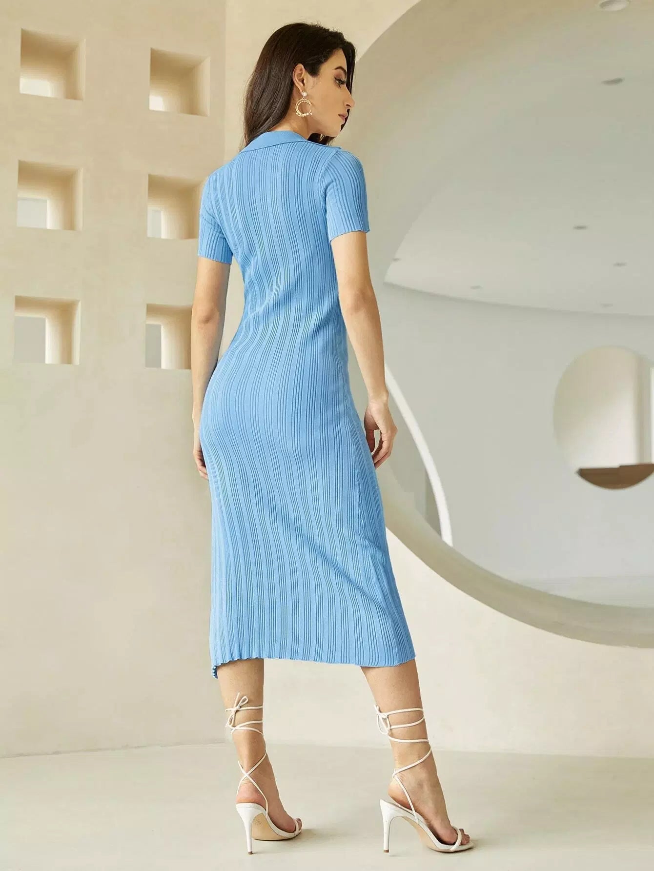 فستان سادة بفتحة منقسمة على الفخذين